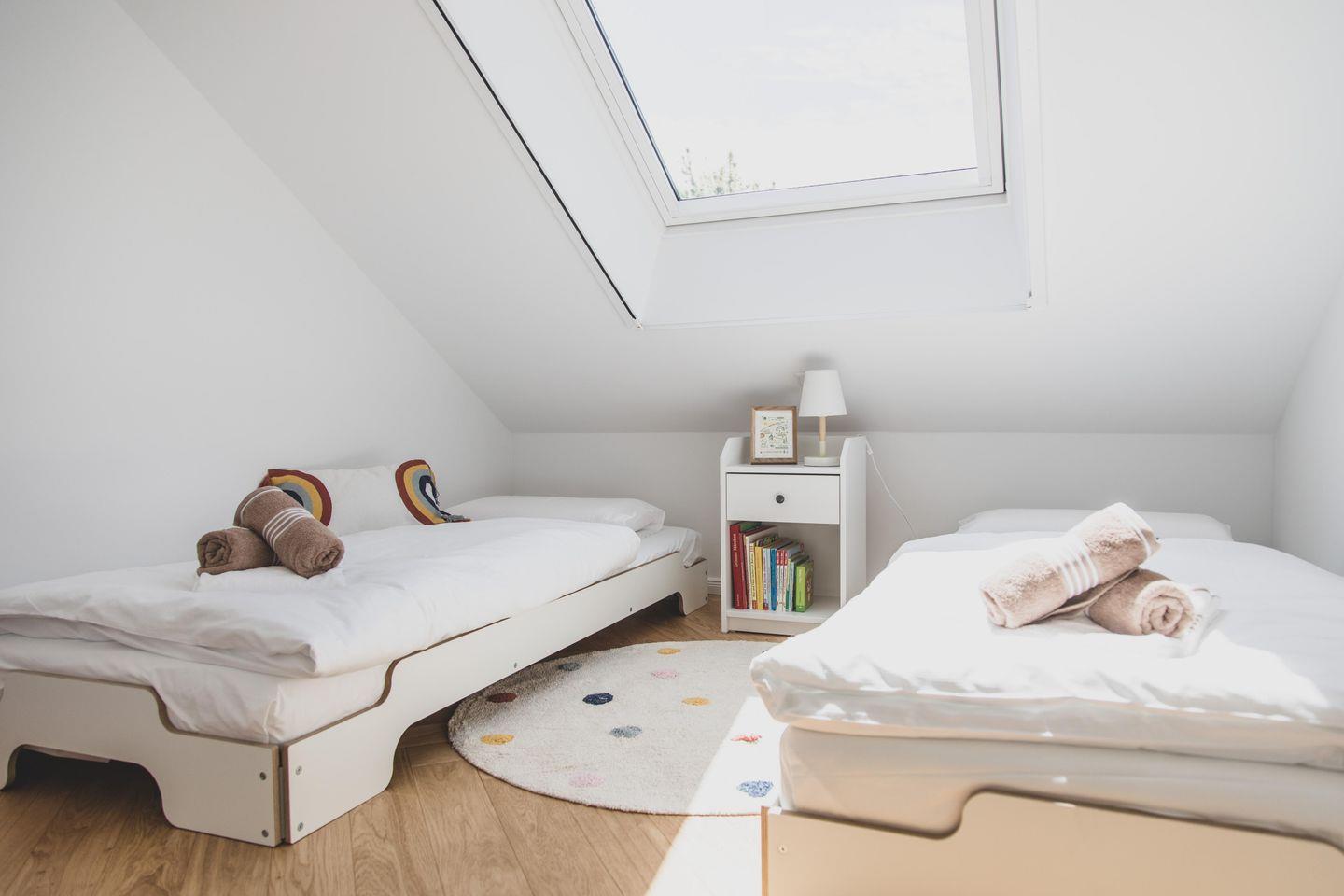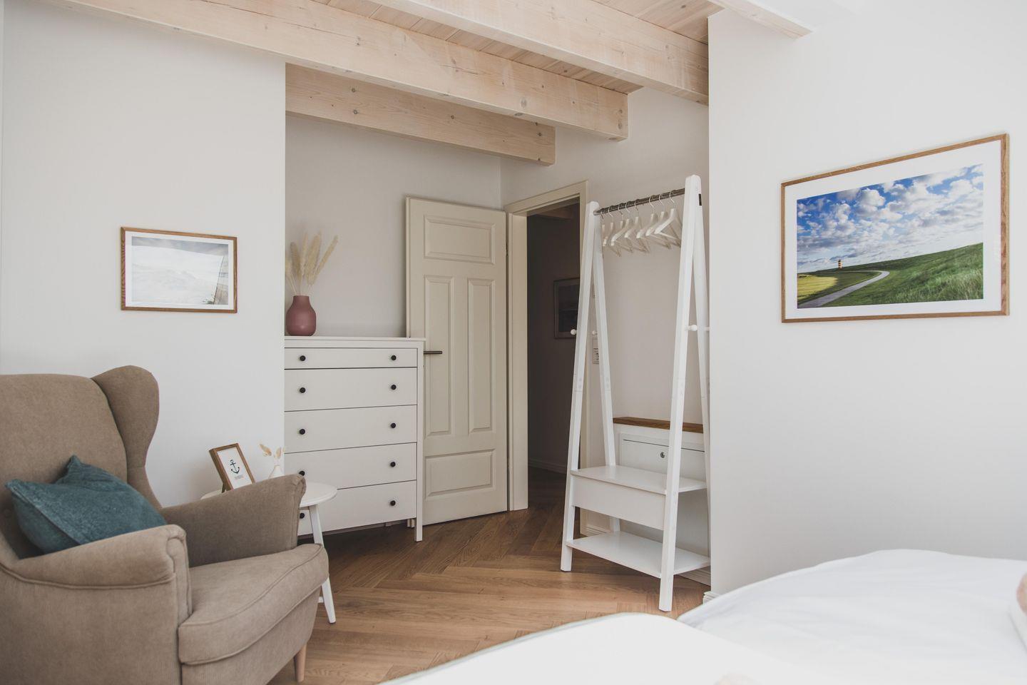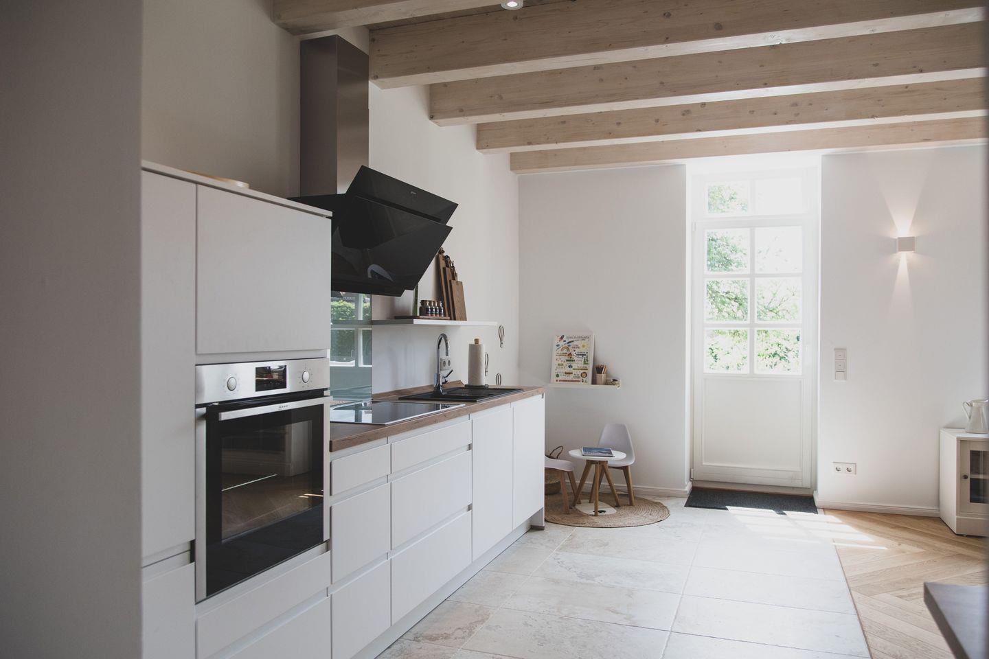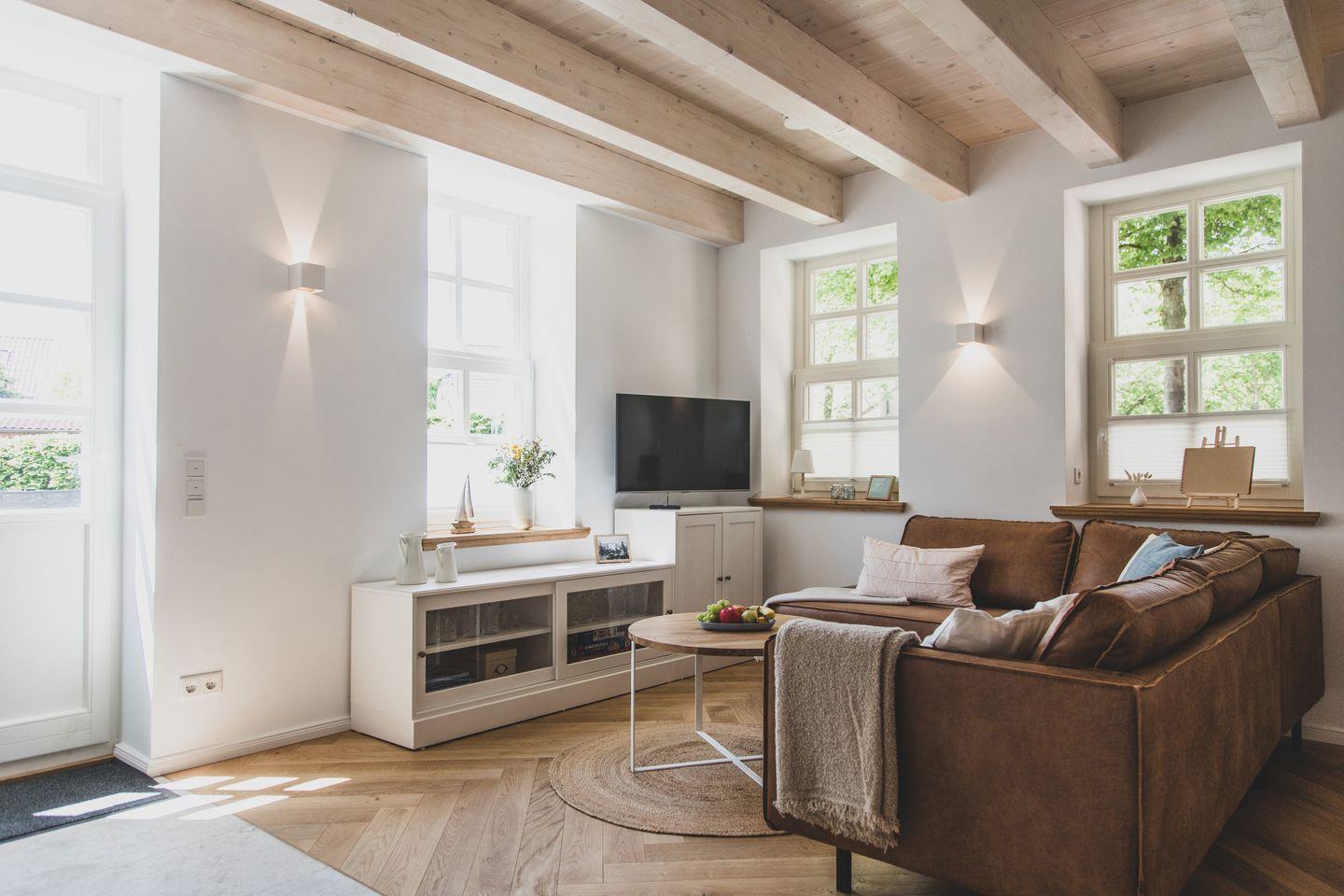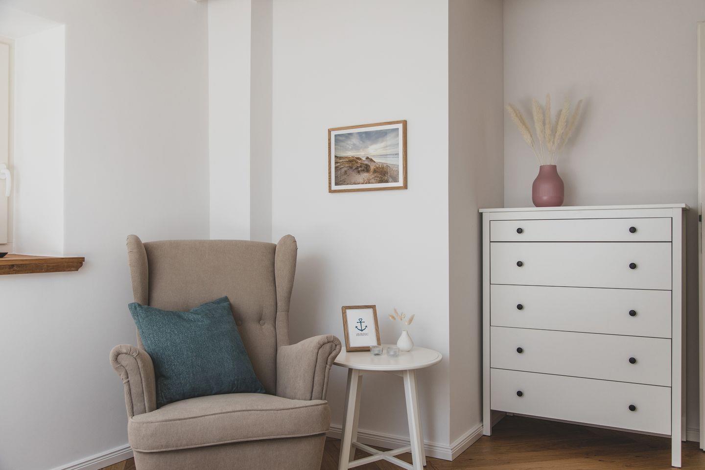 Mit einer großzügigen Fläche von 70 m² bietet die Wohnung Platz für bis zu vier Gäste. Sie verfügt über zwei geschmackvoll eingerichtete Schlafzimmer, die für einen erholsamen Schlaf sorgen. Der lichtdurchflutete Wohnbereich lädt zum Verweilen ein und ist mit einem gemütlichen Sofa sowie einem Esstisch ausgestattet, der Platz für gemeinsame Mahlzeiten bietet. Die offene Küche ist modern und voll ausgestattet mit hochwertigen Geräten wie einem Induktionsherd, Backofen, Geschirrspüler und einer Mikrowelle - ideal für Hobbyköche.