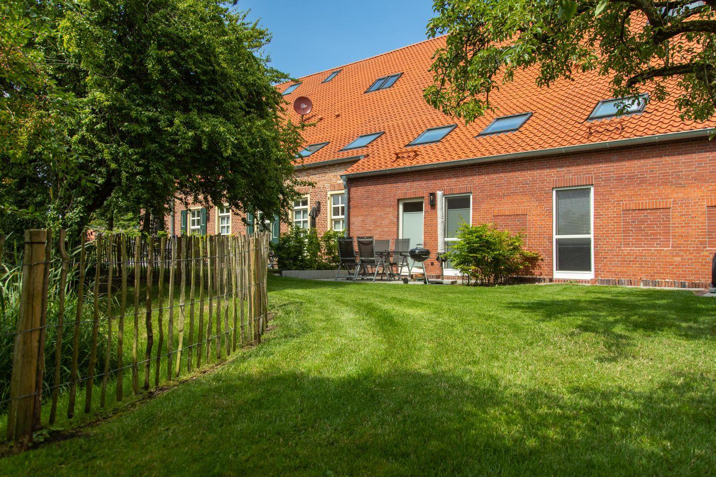Die Ferienwohnung bietet auch eine private Terrasse, die einen Blick in den Garten eröffnet. Hier können Sie beim Grillen und Entspannen die frische Nordseeluft genießen. Der Garten ist ideal für Kinder zum Spielen und für gesellige Stunden mit der Familie. Zudem steht Ihnen ein Grill zur Verfügung, um die lauen Sommerabende geschmackvoll ausklingen zu lassen.