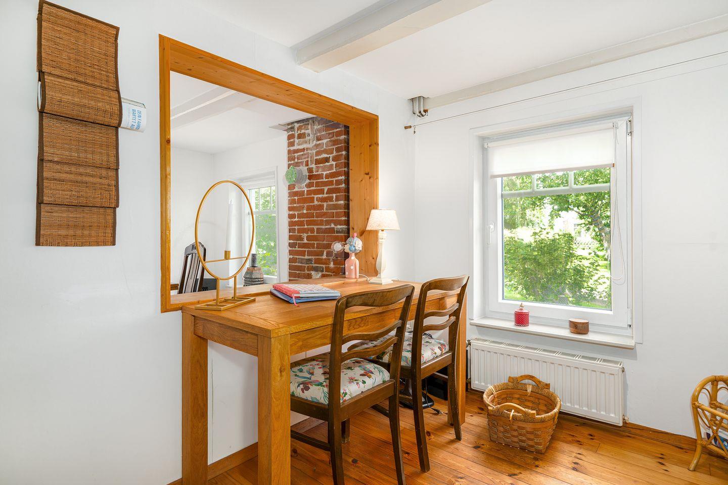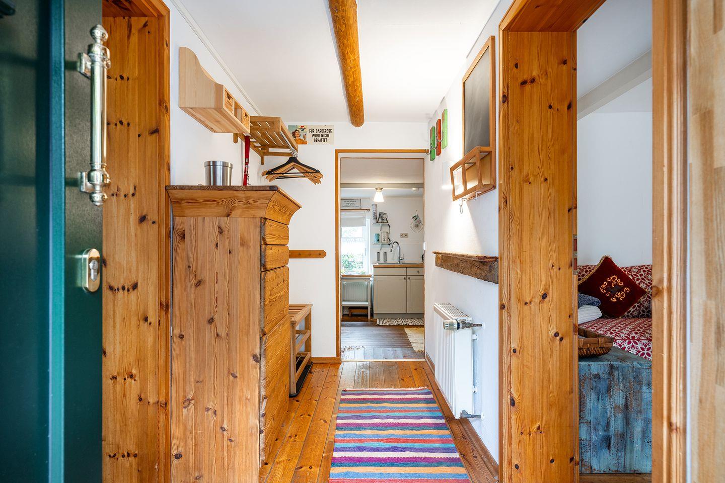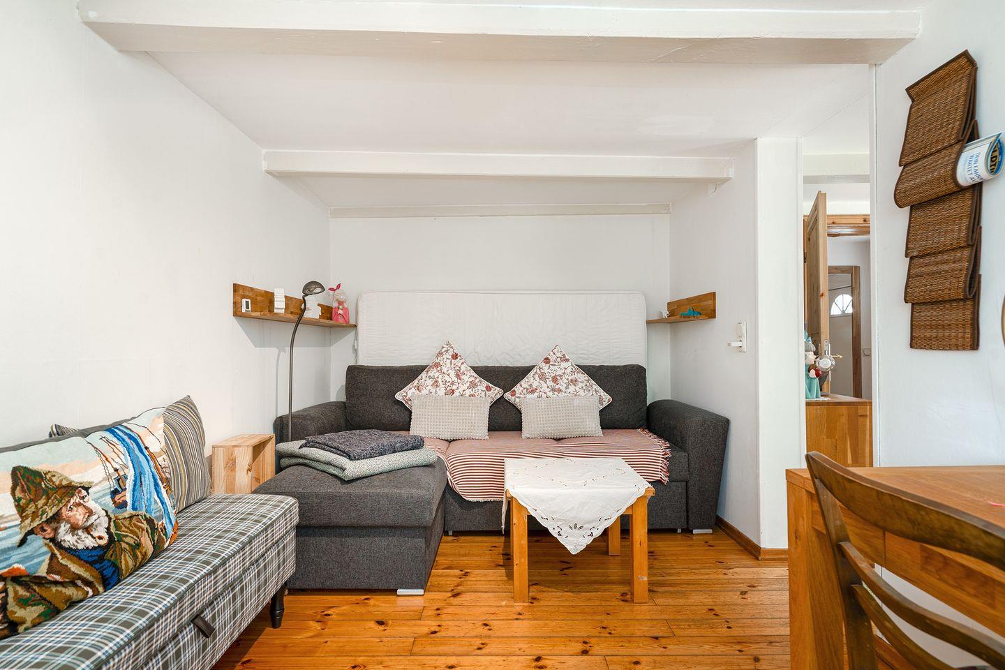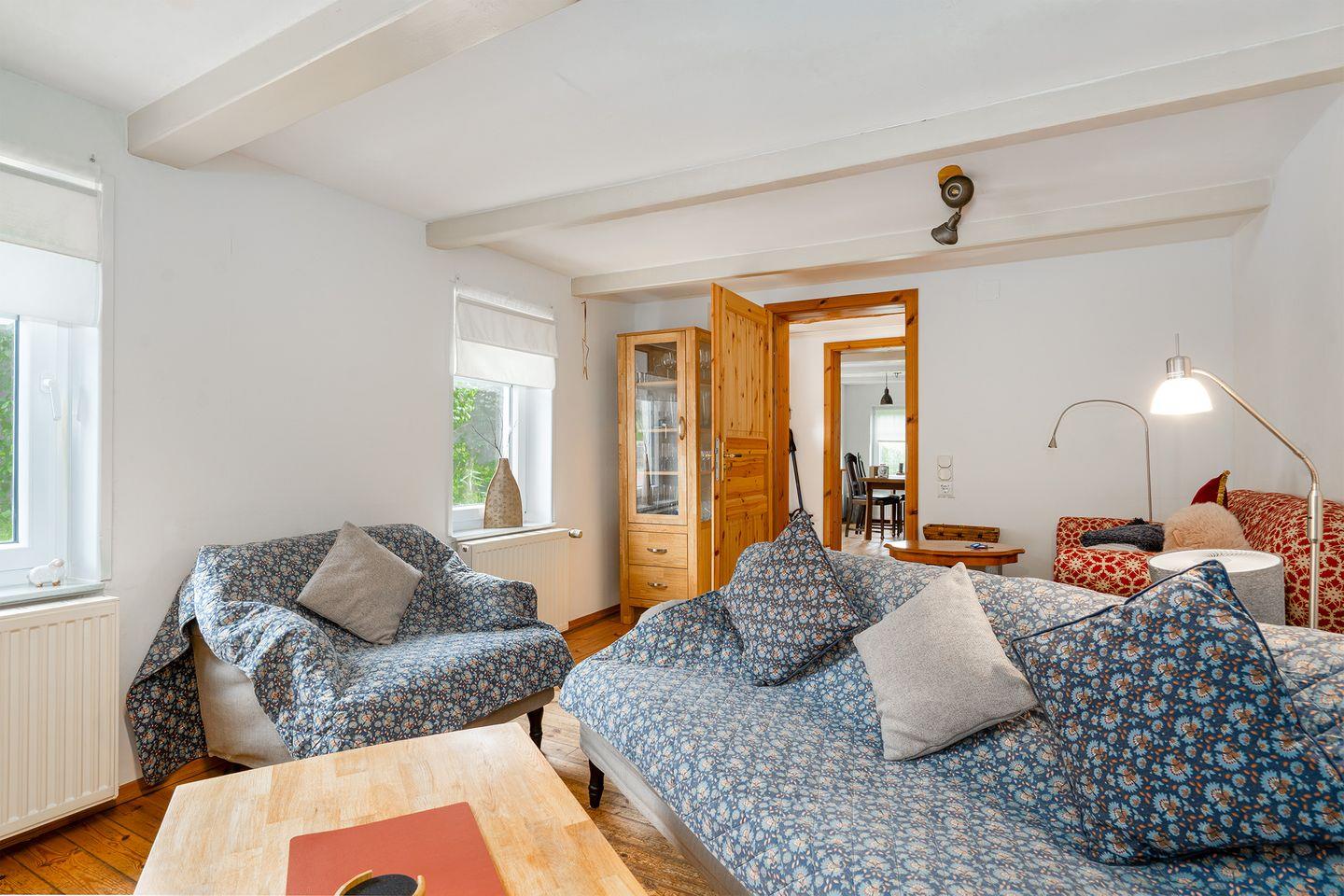 Mit Betreten des Hauses spüren Sie durch die Holzbalkendecke und die tollen Holzdielen sofort den historischen Charme dieses Hauses. Das Wohnzimmer verfügt über drei gemütliche Sofa mit Blick auf den großen Fernseher und den Pelletofen, der im Winter für angenehme Wärme sorgt. Im Esszimmer mit ausziehbarem Esstisch befindet sich ein zweiter Fernseher, sowie räumlich abgetrennt ein Schreibtisch und ein ausziehbares Schlafsofa für 1-2 Personen. Die Küche ist mit allen notwendigen Gerätschaften ausgestattet: Kühlschrank mit Gefrierschrank, Spülmaschine, Backofen, Ceran-Kochfeld, Mikrowelle, Kaffeemaschine, Toaster, Wasserkocher u.v.m..
