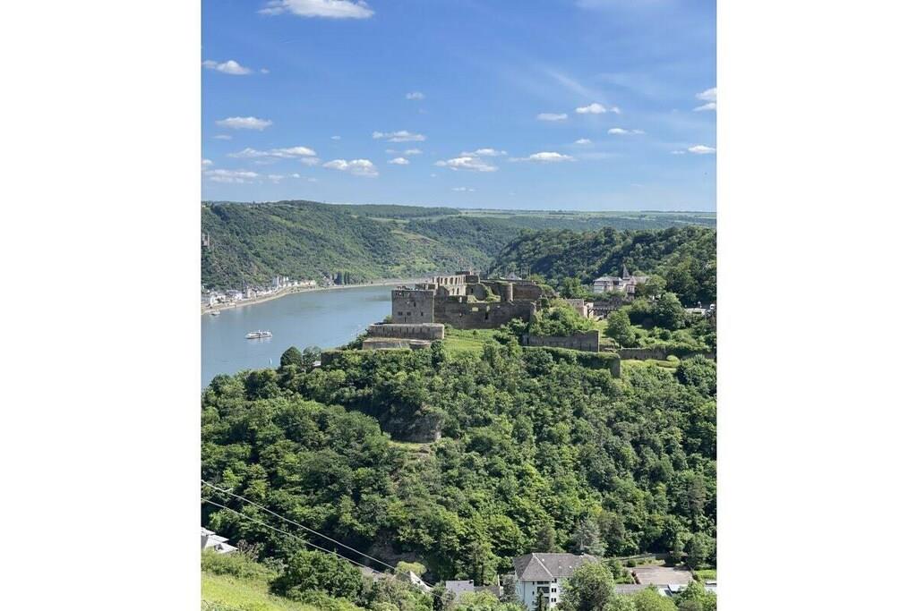 Vores moderne og meget smagfuldt indrettede ferielejlighed, nyrenoveret i 2022, ligger ved den romantiske Rhinen i en fantastisk høj beliggenhed over for Loreley-klippen, lige i hjertet af UNESCOs verdensarvssted. Den ligger i udkanten af landsbyen, omgivet af smuk natur med udsigt over frugtplantagerne. En restaurant, der serverer lækre kulinariske lækkerier, ligger lige i landsbyen. Har du nogensinde fejret karneval på Rhinen? / Nydt en fantastisk vinfestival med et gigantisk fyrværkeri? Et højdepunkt for alle aldre! Transportforbindelserne er fremragende. Motorvej A 61: 10 km væk Tog: 4 km, bustransport tilgængelig