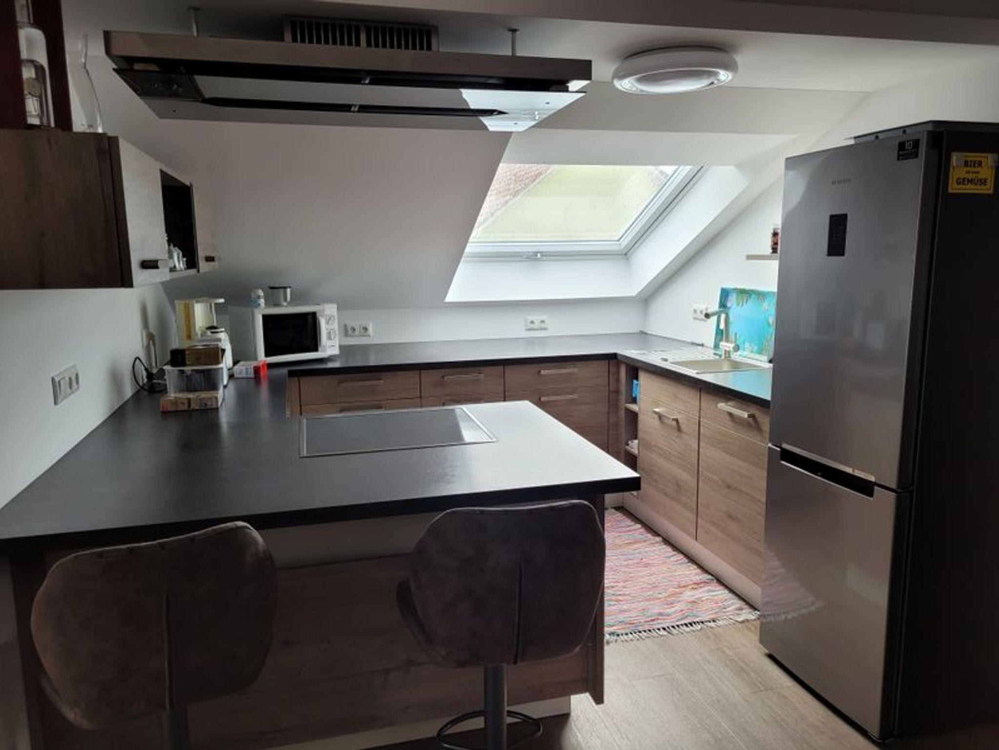 Wir vermieten eine schöne ca. 85 qm große Ferienwohnung mit einer ca. 60 qm großen Dachterrasse zur Eigennutzung. Durch die 5 separaten Schlafmöglichkeiten ist sie auch bestens für Monteure geeignet. Die moderne Wohnung ist ausgestattet mit einer großen komfortablen Einbauküche, incl. Geschirrspüler sowie einer Mikrowelle und Kaffeemaschine. Es ist ein großzügiges neues Bad mit Dusche vorhanden. Das Schlafzimmer ist mit 2 Einzelbetten ausgestattet sowie einer großen Ankleide. Im großen offenen Wohnraum befinden sich 3 weitere Einzelbetten, eine gemütliche Wohnecke mit TV sowie eine große Sitzecke. Außerdem befindet sich in der Wohnung ein großer Kickertisch. Handtücher, Bettwäsche, ein Parkplatz sowie WLAN werden kostenfrei zur Verfügung gestellt.