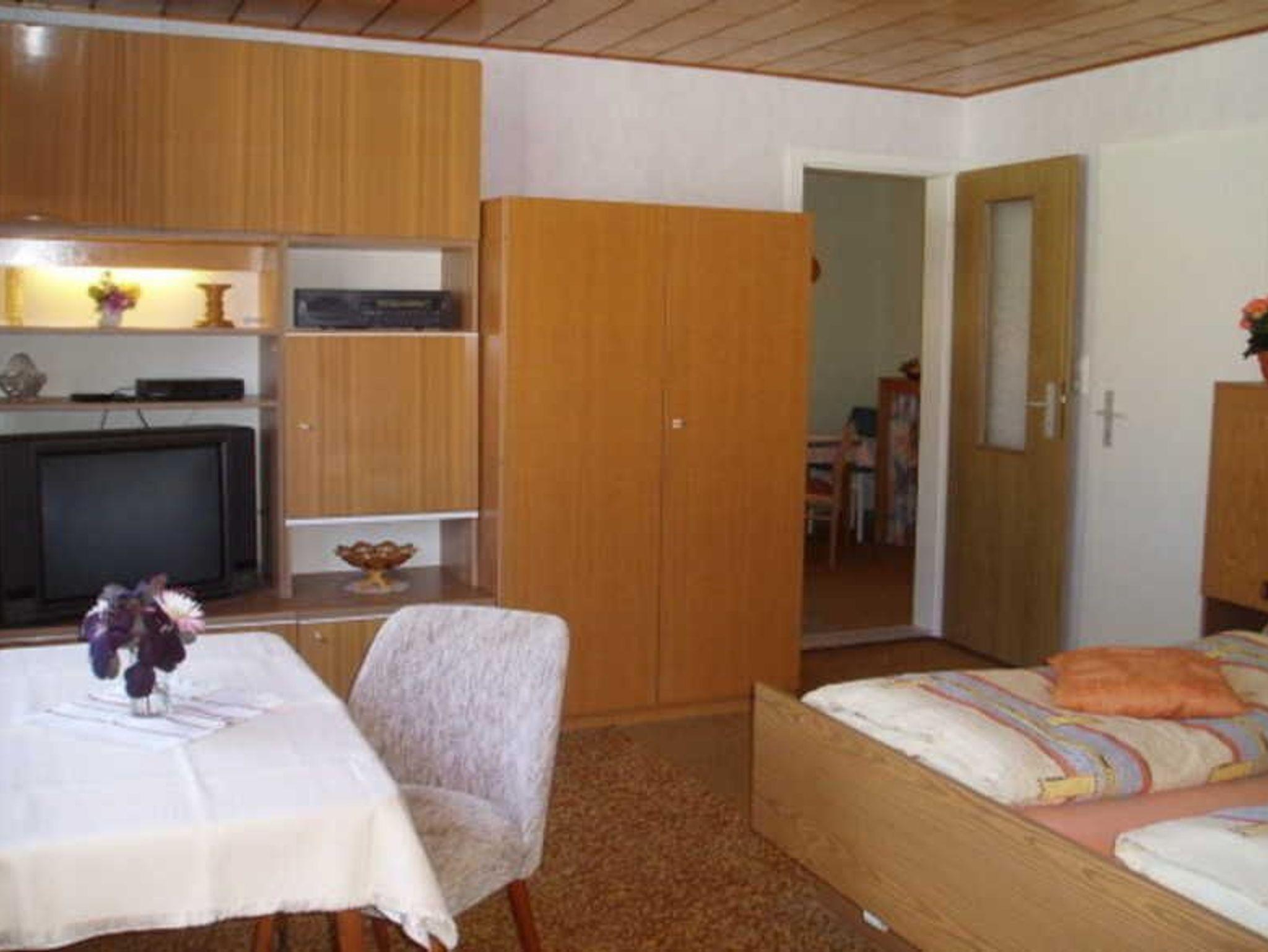 1 komb. Wohn u. Schlafzimmer bis 2 Personen, Küche, Du/WC, Sat/TV/Radio, Garten, Terrasse mit Sitzecke, Grill, Parterre, sep. Eingang, Bettwäsche und Handtücher pro Person 12,00 Euro oder selbst mitbringen, Gaststätten, Einkaufsmöglichkeiten (Aldi, Netto) und Bäcker 2 min., Nichtraucherwohnung, Parkplatz vor dem Haus, Garage mietbar, Strom und Wasser nach Verbrauch bei Abreise (Zähler sind vorhanden)