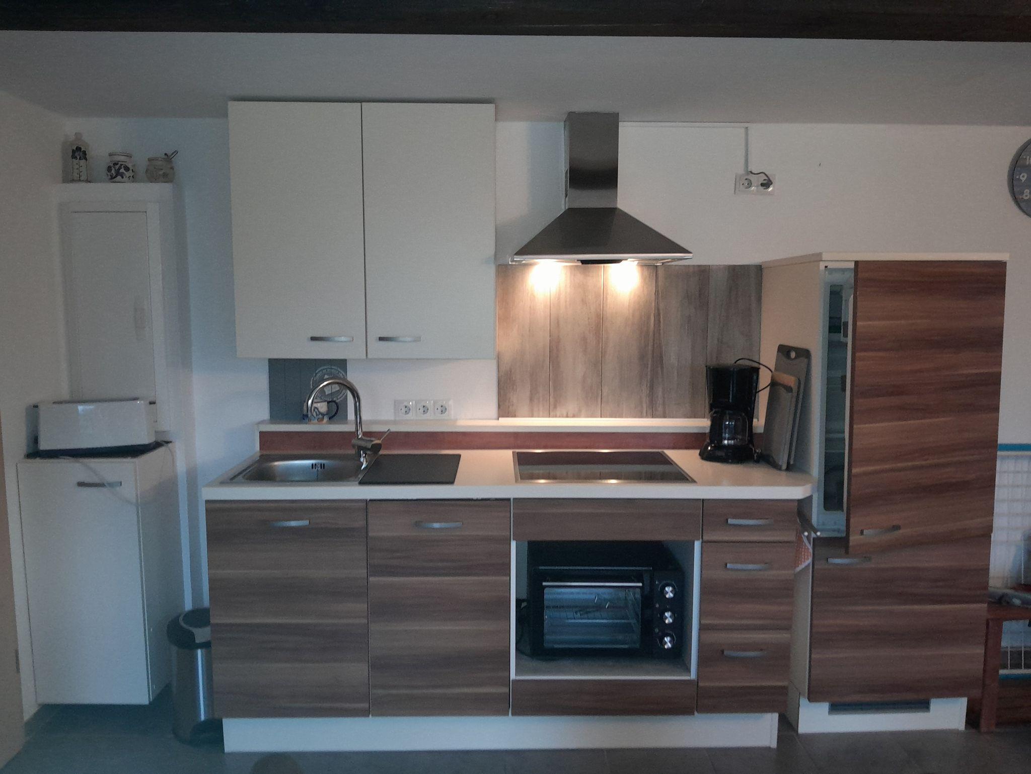 Küche ist ausgestattet mit einem Minibackofen und einen 4 Platten Cerankochfeld.
