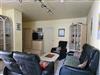 Wohnzimmer, eingerichtet mit Sessel, Couch für 2 und 3 Personen, altweißen Schränken und Vitrinen, Kabel- TV.