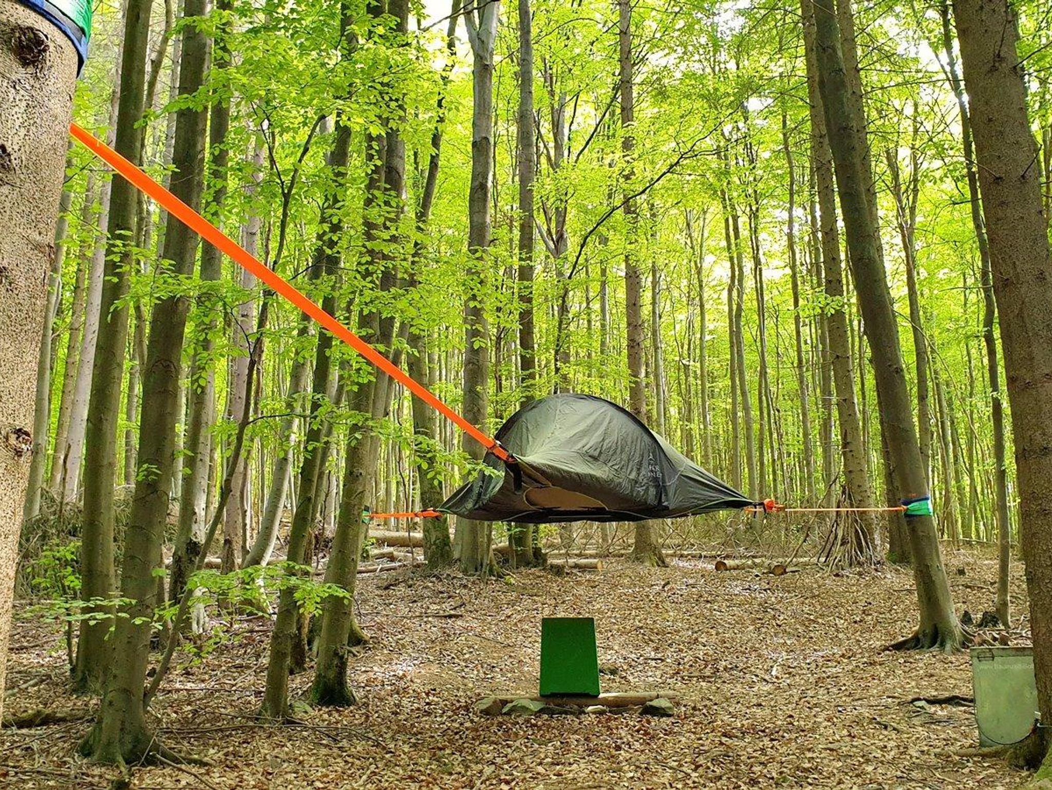 Mehr Natur geht nicht. Die Zelte sind jeweils zwischen drei Bäume gespannt und schweben in ca. 1,5 m Höhe über dem Waldboden. Beim Baumzelt Fichte stehen hauptsächlich Fichten in der Nähe. Für die Übernachtung im Baumzelt ist ein Schlafsack sowie eine Isomatte erforderlich!