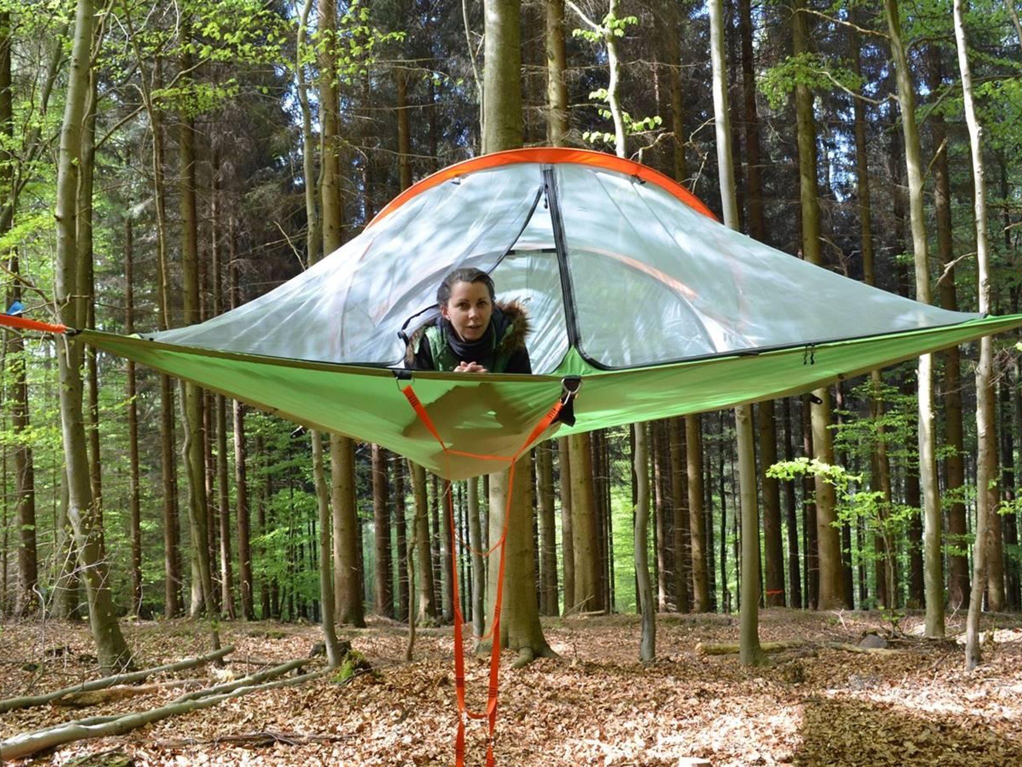 Sie brauchen etwas mehr Abenteuer? Dann müssen Sie unbedingt unsere Baumzelte ausprobieren! Die Zelte sind jeweils zwischen drei Bäume gespannt und schweben in ca. 1,5 m Höhe über dem Waldboden.