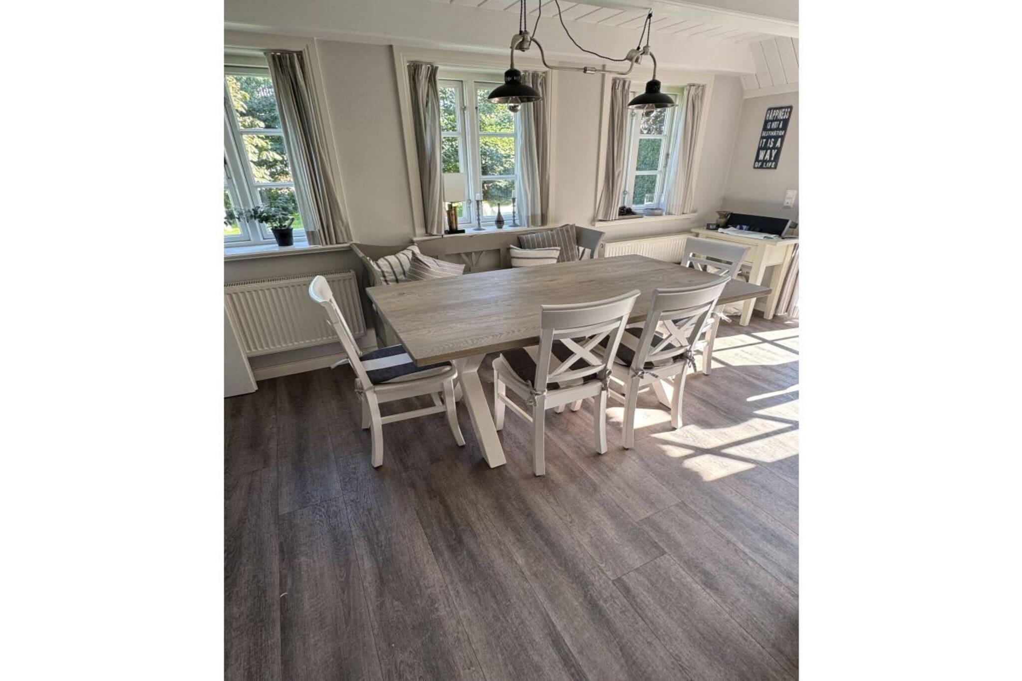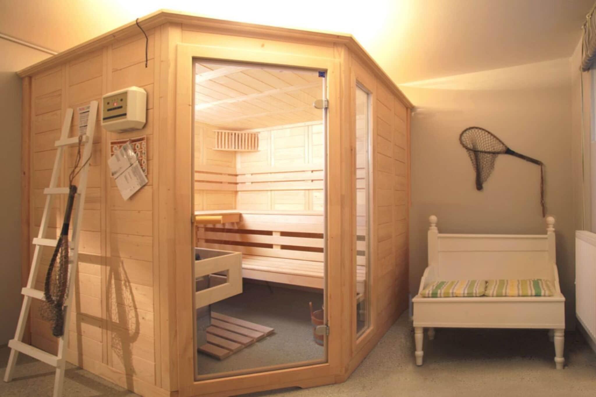 Nyd din solrige, private syd- og østvendte have med terrasse, privat strandstol og liggestole, samt den fredelige beliggenhed med nem adgang til stranden og landsbyen med dens fremragende faciliteter. Kælder: Børnelegerum, sauna med afslapningsområde og gratis brug af vaskemaskine og tørretumbler. Stueetage: Entré med garderobe, brusebad/toilet, køkken, rummelig opholds- og spisestue med brændeovn, satellit-tv (Sky, Disney Plus, Netflix, DAZN) og adgang til den sydvendte terrasse/have med havemøbler og strandstol. Første sal: Gang med trappe til loftet, to dobbeltværelser, brusebad/toilet og et tredje soveværelse med en alkovekøjeseng til to personer. Loft: Ekstra legerum med tv og PlayStation 4.