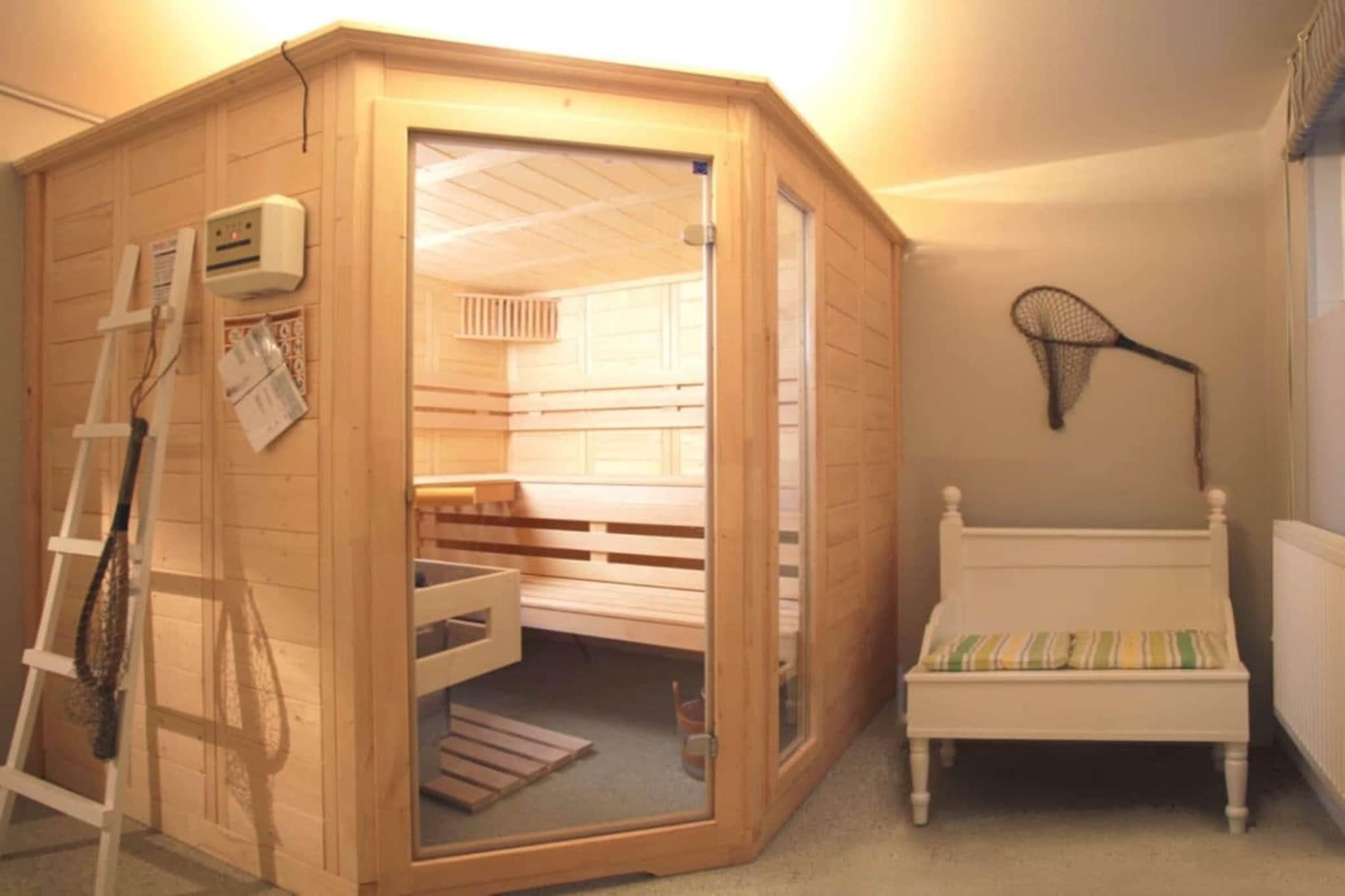 Nyd din solrige, private syd- og vestvendte have med terrasse, privat strandstol og liggestole, samt den fredelige beliggenhed med nem adgang til stranden og landsbyen med dens fremragende faciliteter. Kælder: Børnelegerum, sauna med afslapningsområde samt vaskemaskine og tørretumbler til fri afbenyttelse. Stueetage: Entré med garderobe, brusebad/toilet, køkken, rummelig opholds- og spisestue med brændeovn, satellit-tv (Sky, DAZN, Netflix) og adgang til den sydøstvendte terrasse/have med havemøbler og strandstol. Første sal: Gang med trappe til loftet, to dobbeltværelser, brusebad/toilet og et tredje soveværelse med en alkovekøjeseng til to personer. Loft: Ekstra legerum med tv og Xbox.