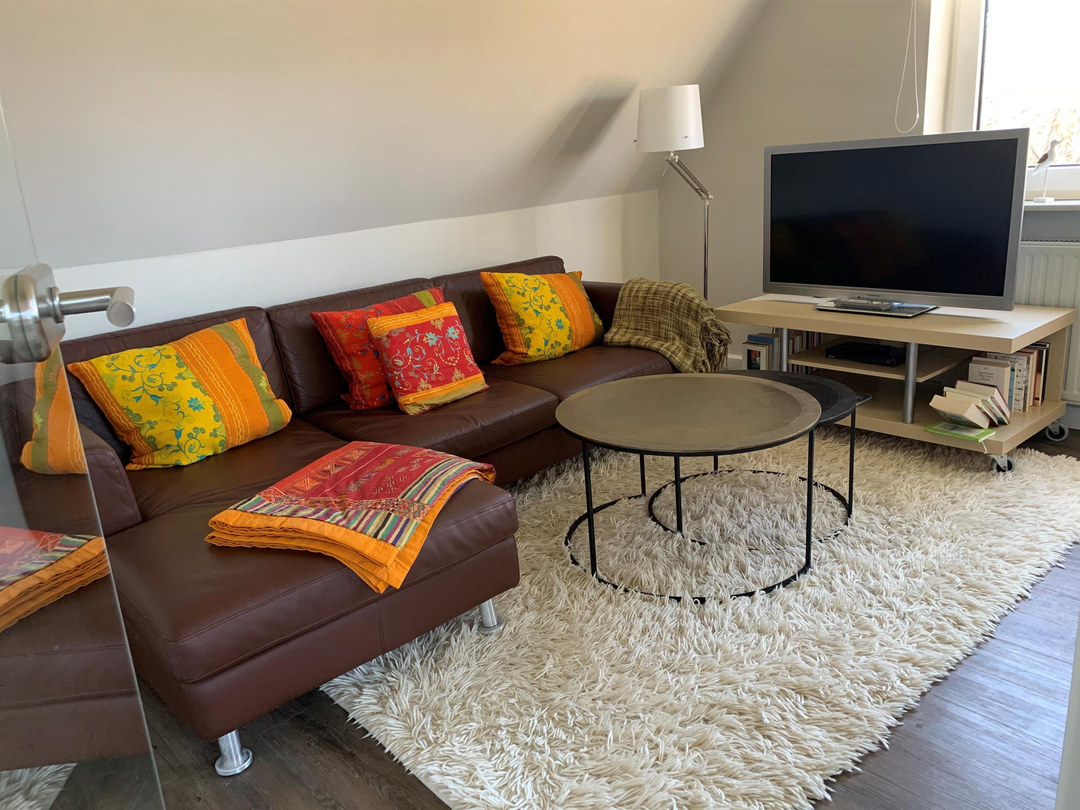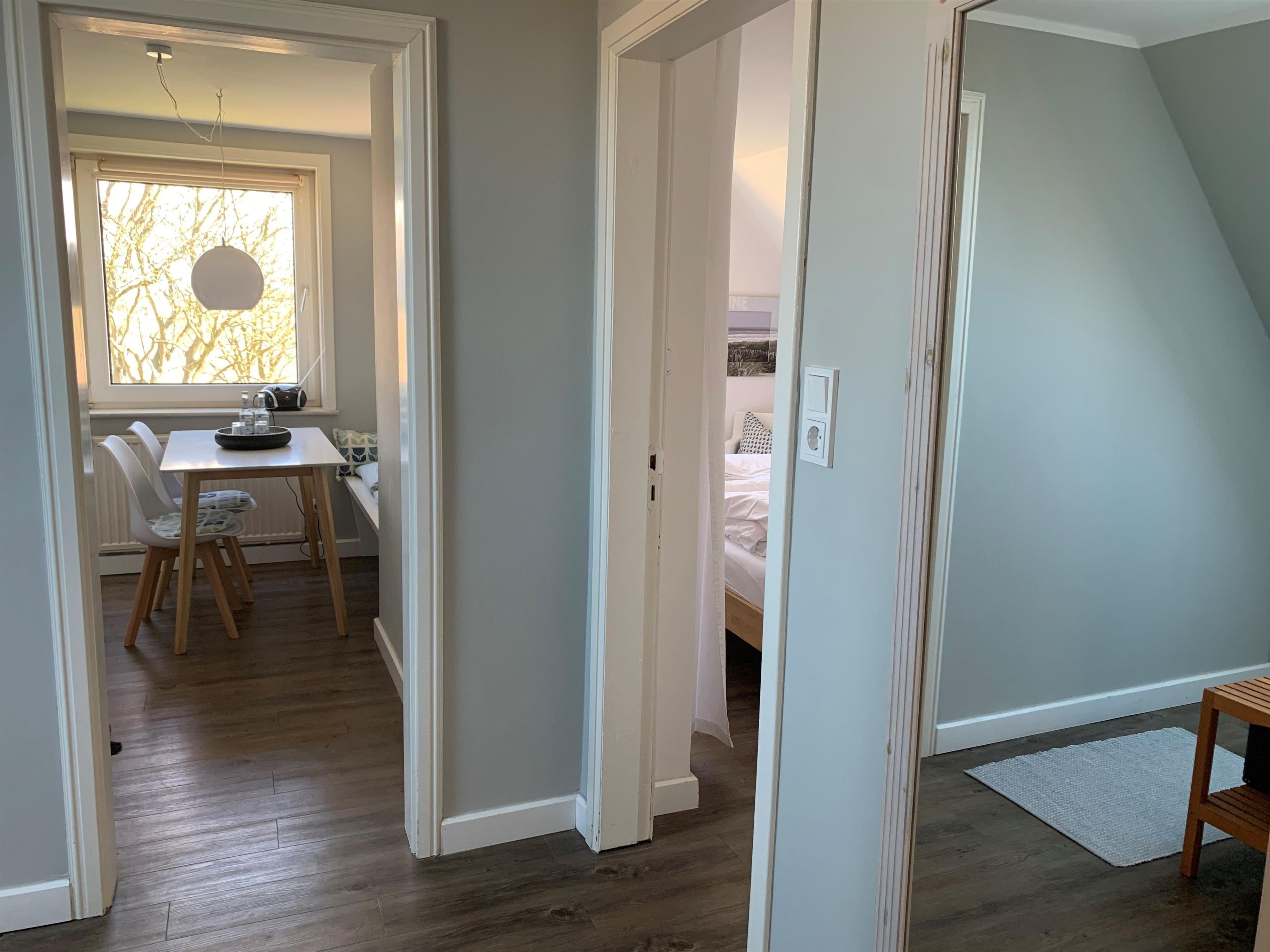 Die Wohnung befindet sich im Obergeschoss und bietet bei ca. 62 m² genügend Platz für 4 Personen plus Kleinkind. Die Wohnung ist aufgeteilt in 2 Schlafzimmer (eins mit Doppelbett und eins mit zwei Einzelbetten), separater Küche mit Mikrowelle und Sitzecke, Duschbad, ein Wohnzimmer mit SAT-TV und Stereoanlage.