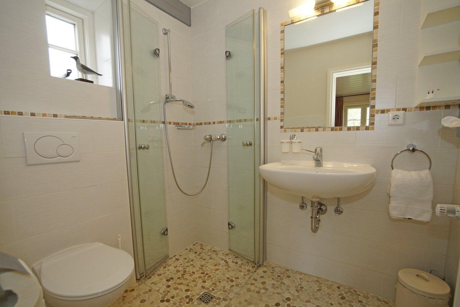 Die Ferienwohnung in Utersum bietet eine gemütliche und einladende Atmosphäre auf 53 m². Das Wohnzimmer überzeugt mit originalen Kachelwänden, einer Fußbodenheizung und einem Flachbildschirmfernseher. Das helle Schlafzimmer ist mit einem komfortablen Doppelbett (190x190 cm) und einem Kleiderschrank ausgestattet. Die separate Küche überzeugt durch moderne Geräte, inklusive Geschirrspüler, Backofen und Elektroherd, sowie einem Esstisch für gemeinsame Mahlzeiten. Das Esszimmer, ebenfalls mit Fußbodenheizung, verfügt zusätzlich über ein Einzelbett. Das moderne Duschbad ist bodengleich und bietet Fenster, Föhn sowie einen Kosmetikspiegel. WLAN ist kostenfrei verfügbar. Nichtraucher und Haustiere sind in dieser Wohnung nicht erlaubt. Der Zugang ist ebenerdig. Gemeinschaftliche Einrichtungen wie der Außenbereich mit Gartenmöbeln und Strandkorb stehen den Gästen zur Verfügung.