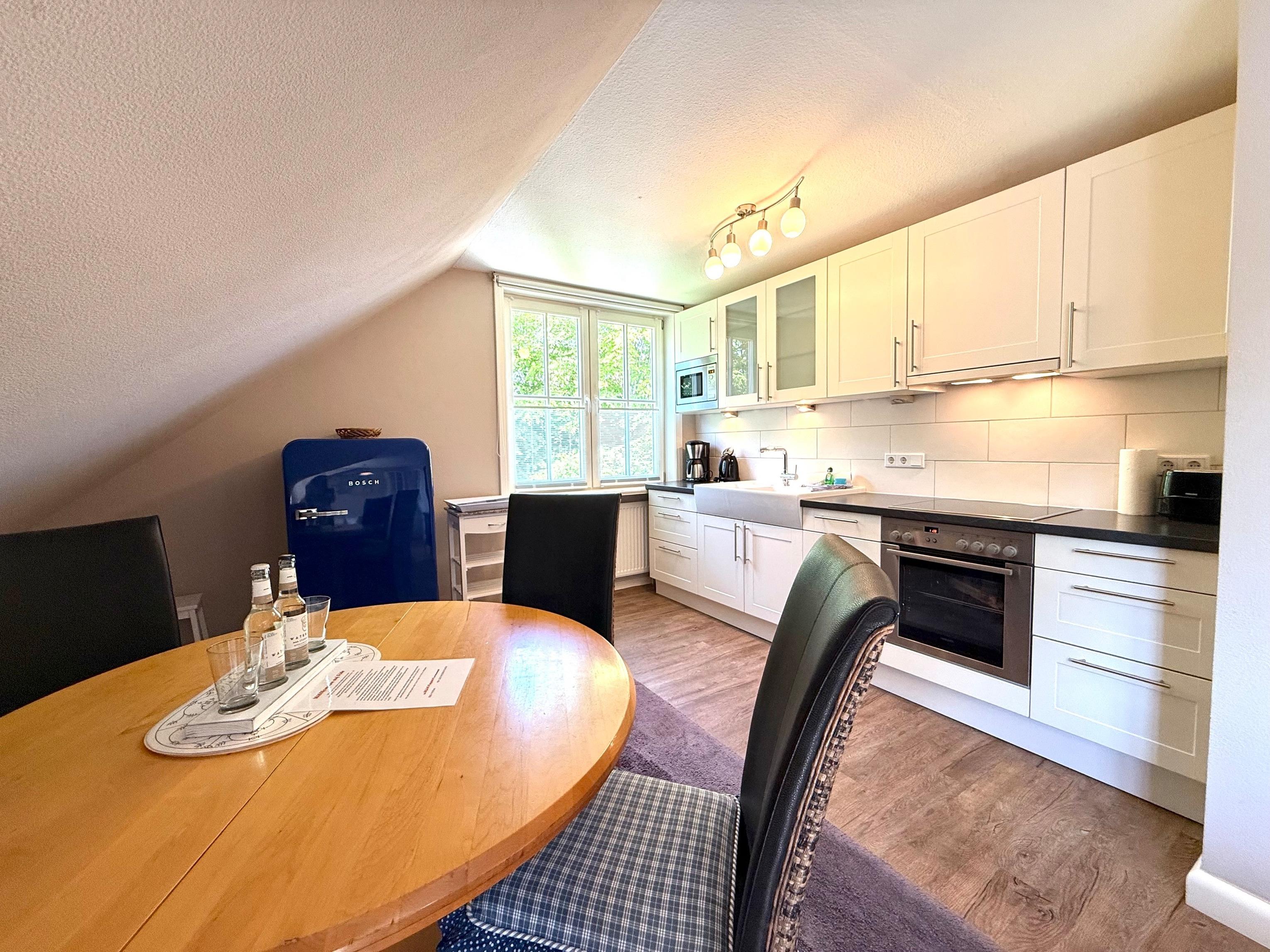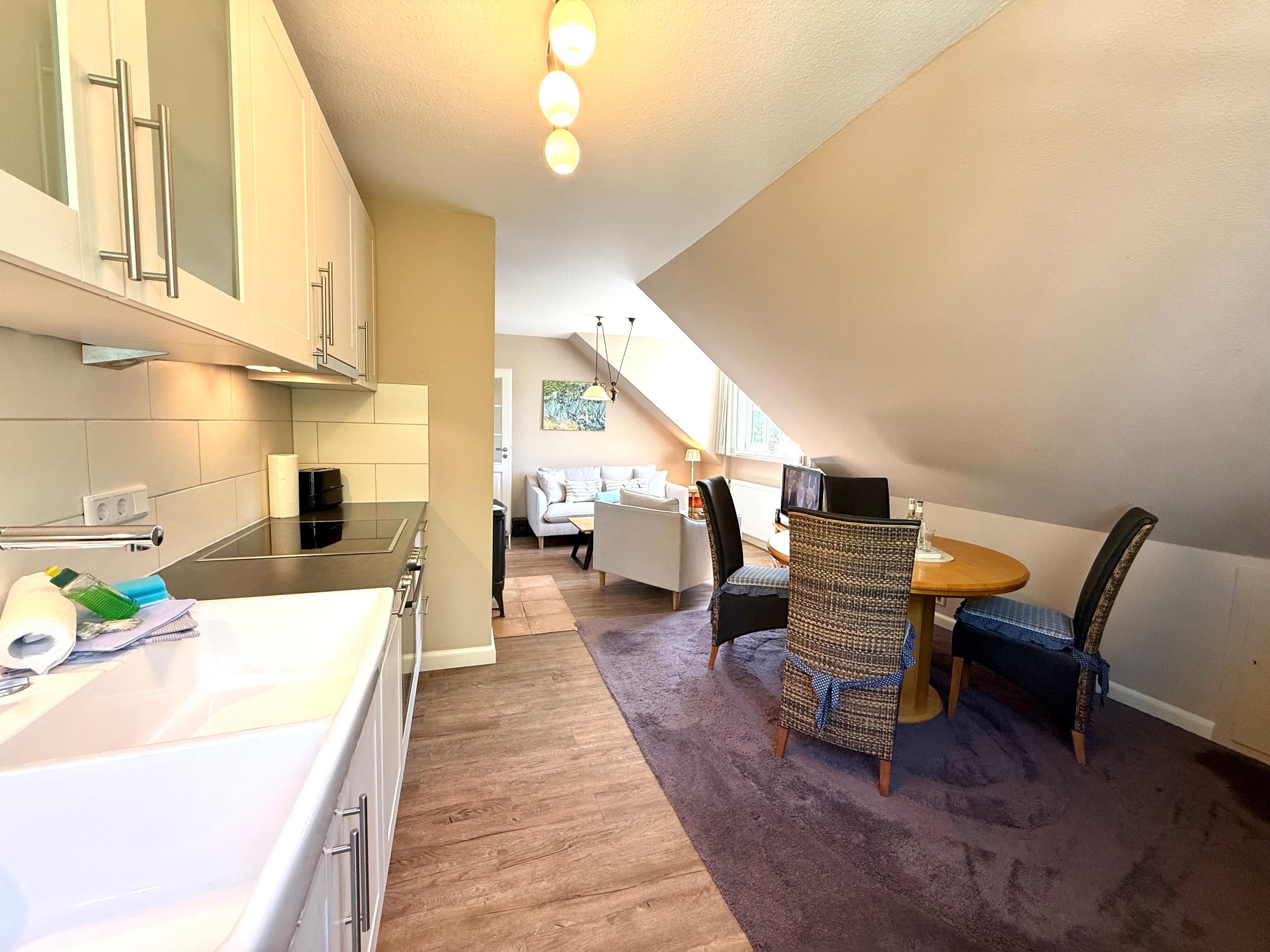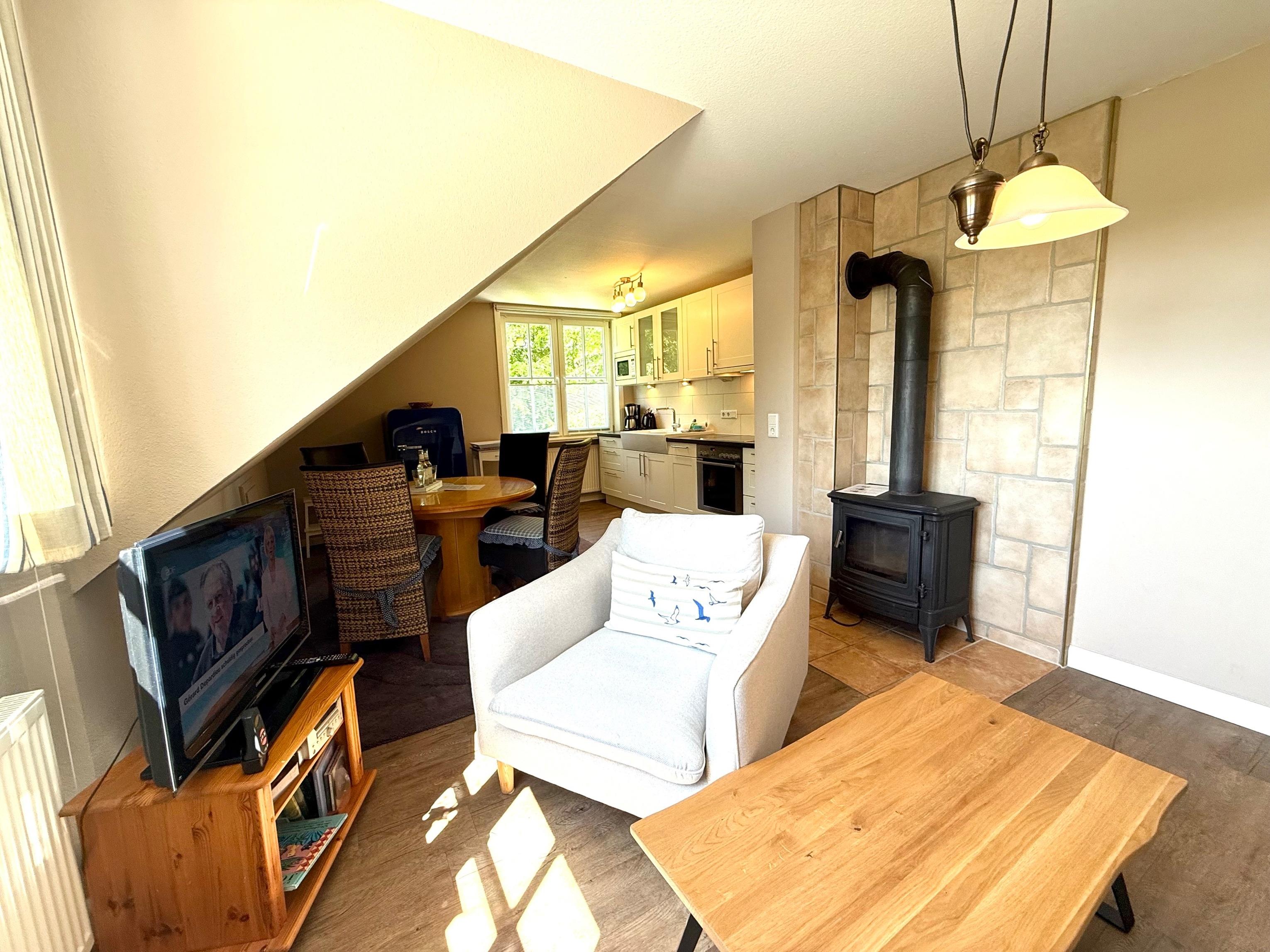 Die Ferienwohnung befindet sich im Obergeschoss und ist optimal für 4 Personen geeignet. Jedes der beiden Schlafzimmer hat ein eigenes Bad. Von einer Seite der Wohnung haben Sie den Blick in Richtung Meer. Ein Ofen im Wohnzimmer sorgt für gemütliche Winterabende. Im einem Teil des Gartens stehen Ihnen mit Strandkorb, Tisch und Tühle, sowie 2 Liegen zur Verfügung. Der große Garten bietet ausreichend Platz zum erholen und spielen für die Kinder. Eine Waschmaschine und ein Trockner, als auch Wäscheleinen im Garten stehen den Gästen der beiden Wohnungen gemeinschaftlich zur Verfügung. Ihre Versorgung vor Ort ist ebenfalls gesichert, denn das hübsche und ruhige Inseldorf Utersum bietet mehrere Restaurants und Einkaufmöglichkeiten. Auch ein Bäcker ist fußläufig in wenigen Minuten zu erreichn. Abends genießen Sie traumhafte Sonnenuntergänge am Strand, an dem Sie tagsüber sportlich oder ruhig das Meer erleben. Dieses ist nur einige Fußminuten vom Haus entfernt. Auf keinen Fall sollten Sie sich den traumhaften und unvergesslichen Sonnenuntergang am Strand entgehen lassen.
