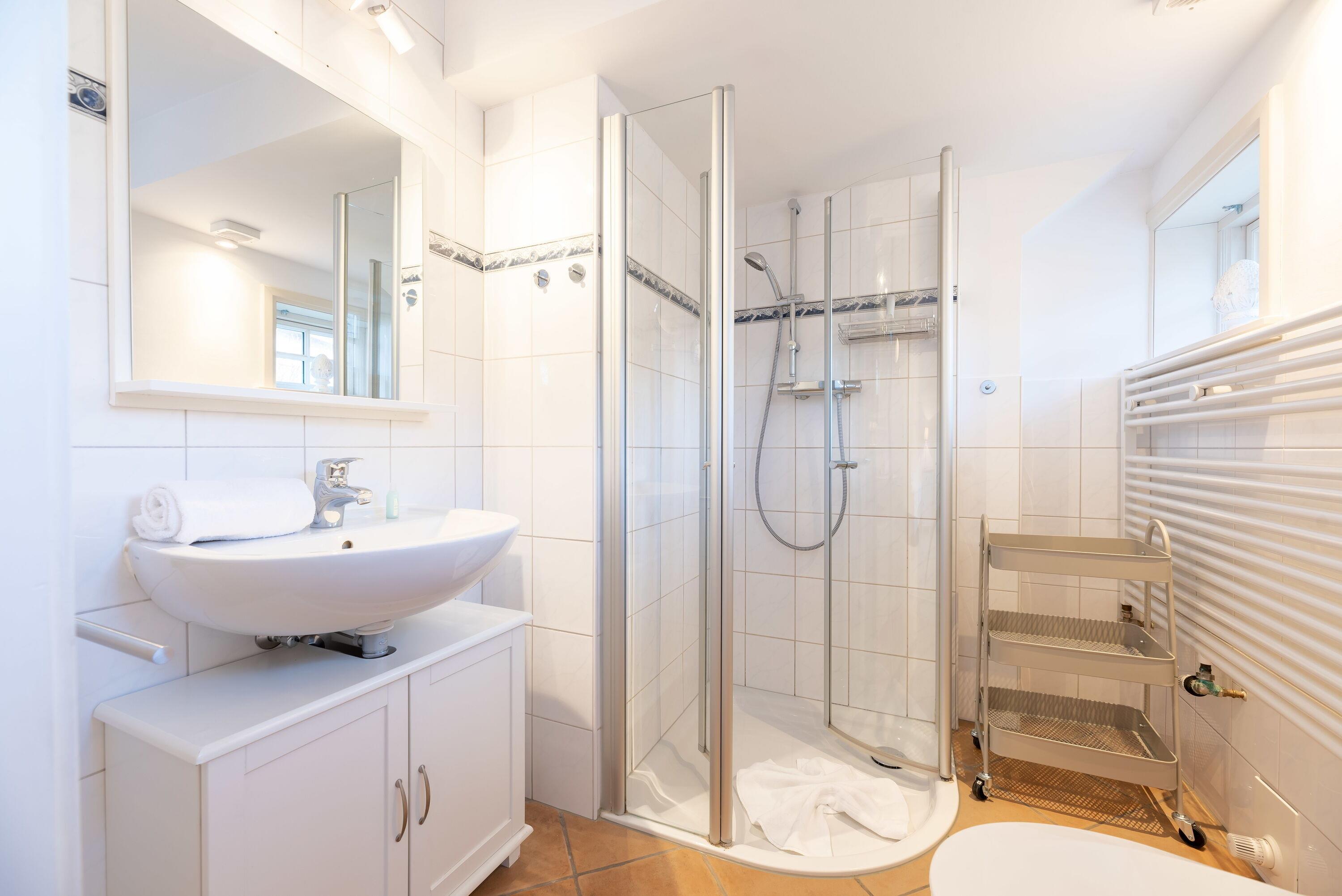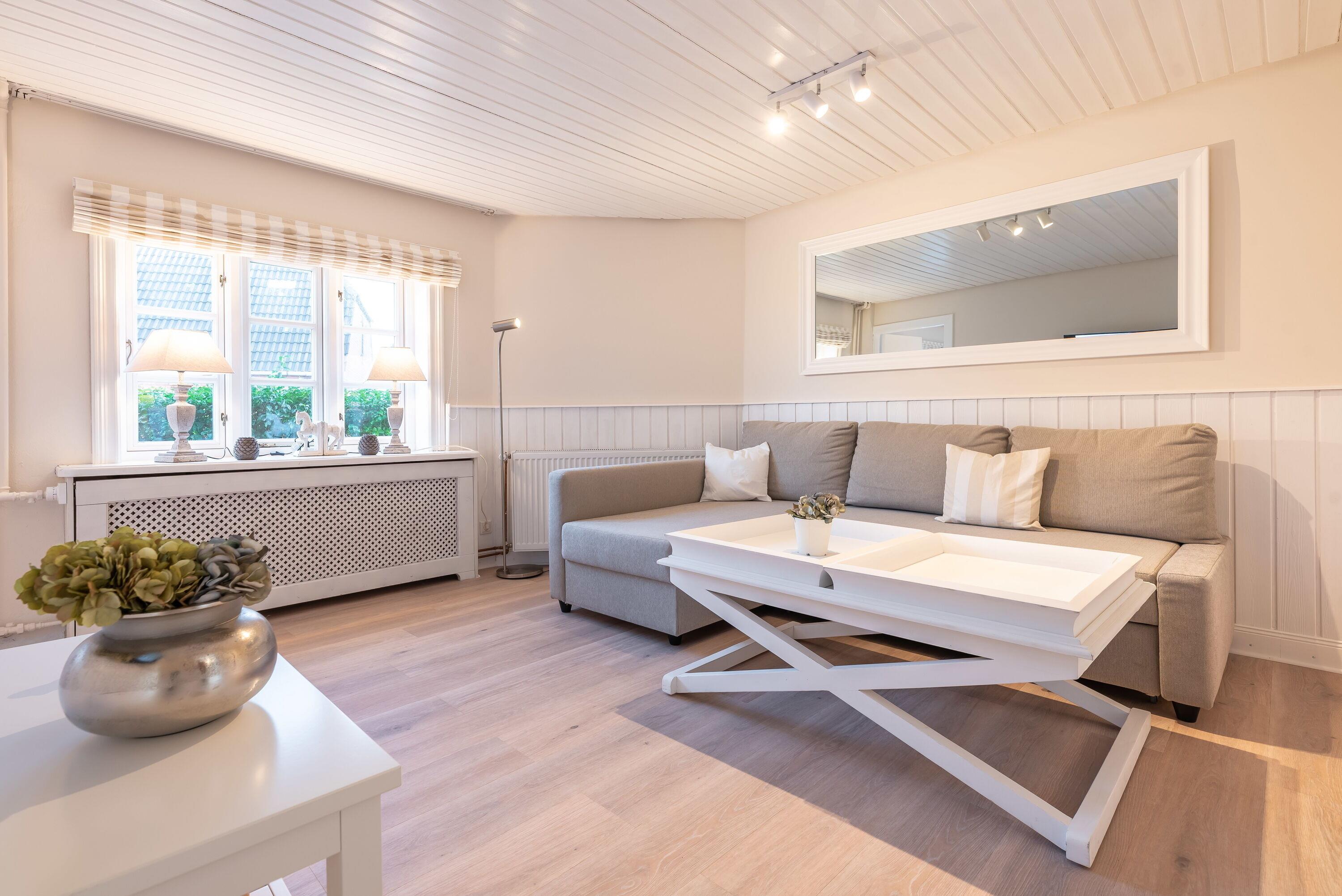 Ein kleines Juwel inmitten von Utersum. Diese wunderschöne und übrigens ganz im Skandi Stil eingerichtete Ferienwohnung auf Föhr ist mit einem Doppelbett sowie einem Schlafsofa ausgestattet. 2022 von Grund auf saniert und mit tollen Extras wie USB/ USB Mini Steckdosen an jedem Nachttisch, integriertem Radio im Badezimmer, hochwertigen original Tempur-Matratzen sowie einer komplett neuen Küche, 43 Zoll großem Fernseher ausgestattet, um Ihnen eine wunderbare Auszeit und die bestmögliche Entspannung bieten zu können. Direkt vor dieser Wohnung befindet sich ihre eigene Terrasse mit zartgrau gehaltenen Terrassenmöbeln und dem wohl besten Bäcker um die Ecke.