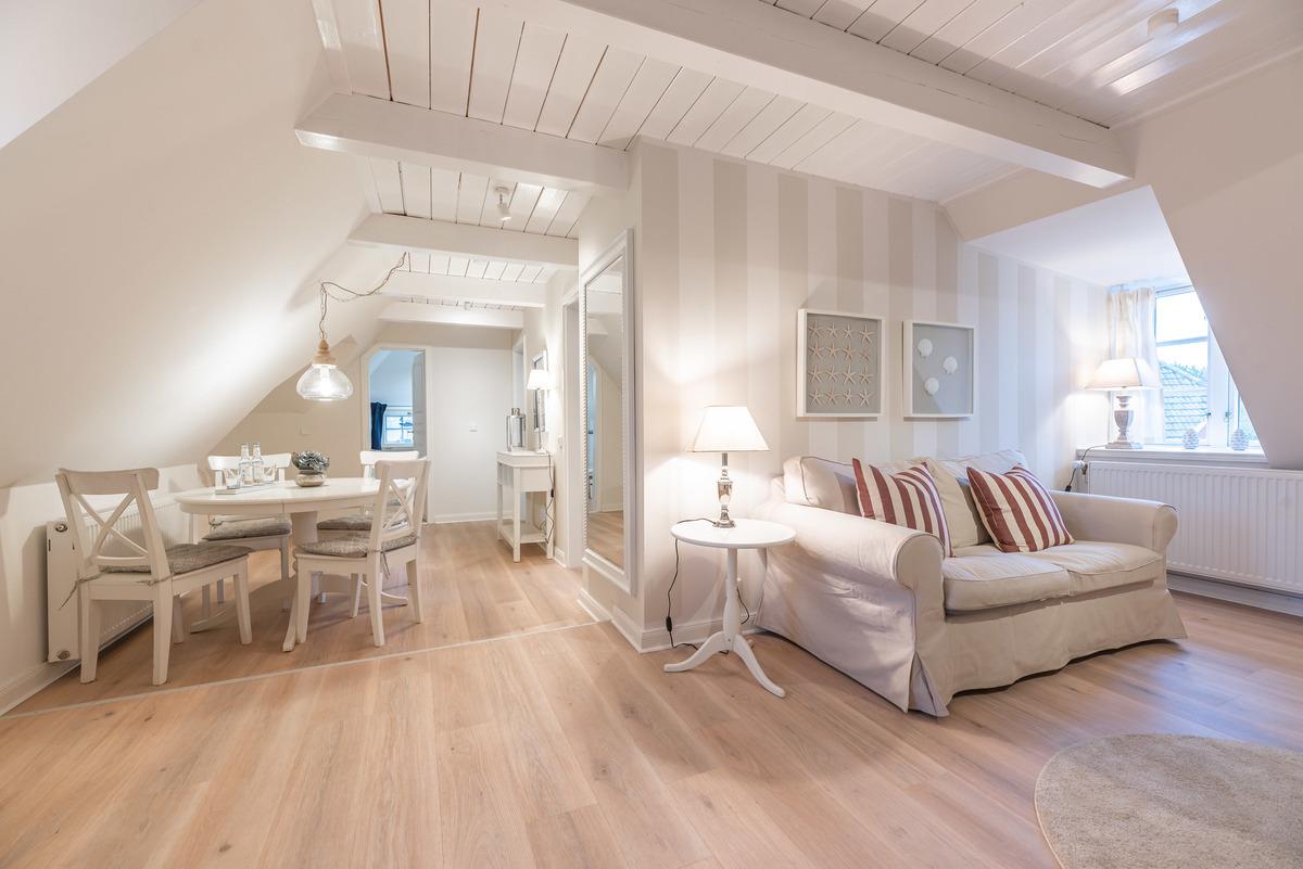 Hell, gemütlich und mit liebevoll versehenen Details zeigt sich diese, in 2022 von Grund auf sanierte, Wohnung von ihrer Besten Seite. Zarte beige Töne kombiniert mit hellen Landhausmöbeln verleihen ihr ihren einzigartigen Charme. Das Appartment Föhrer Ley verfügt über ein Schlafzimmer mit Doppelbett und einem weiteren Schlafzimmer mit einem ausziehbaren Einzelbett, was besonders gut für Kinder geeignet ist. Ebenfalls befindet sich im Kinderzimmer eine ausklappbare Wickelkommode. Hier warten tolle Extras wie USB/ USB Mini Steckdosen an jedem Nachttisch, integriertem Radio im Badezimmer, hochwertigen original Tempur-Matratzen sowie ein 43 Zoll Fernseher auf Sie. Im hauseigenen Hortensiengarten befinden sich viele schöne Sitzgelegenheiten, um die Sonnenstunden bestmöglich genießen zu können und gemütlich Café und Kuchen zu essen. Auf ihre Kinder wartet mit unserer tollen Boots Sandkiste ein großes Abenteuer und viel Spaß.