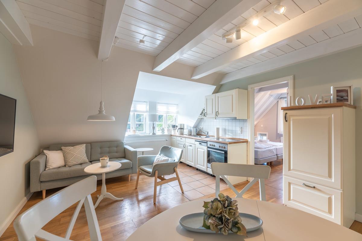 Diese großzügig geschnittene Wohnung bietet mit seinen zwei Schlafzimmern und einem weiteren 140 cm breiten Bett Platz für vier Erwachsene sowie 1-2 Kinder. Mit viel Liebe zum Detail wurde die Wohnung Westerley 2022 von Grund auf saniert und mit neuem Farbkonzept versehen. Viele ausgefallene Details warten hier auf Sie, wie beispielsweise USB/ USB Mini Steckdosen an jedem Nachttisch, integriertem Radio im Badezimmer, hochwertigen original Tempur-Matratzen sowie einem 43 Zoll Fernseher. Im hauseigenen Hortensiengarten befinden sich viele schöne Sitzgelegenheiten, um die Sonnenstunden bestmöglich genießen zu können und gemütlich Café und Kuchen zu essen. Auf ihre Kinder wartet mit unserer tollen Boots- Sandkiste ein großes Abenteuer und viel Spaß.