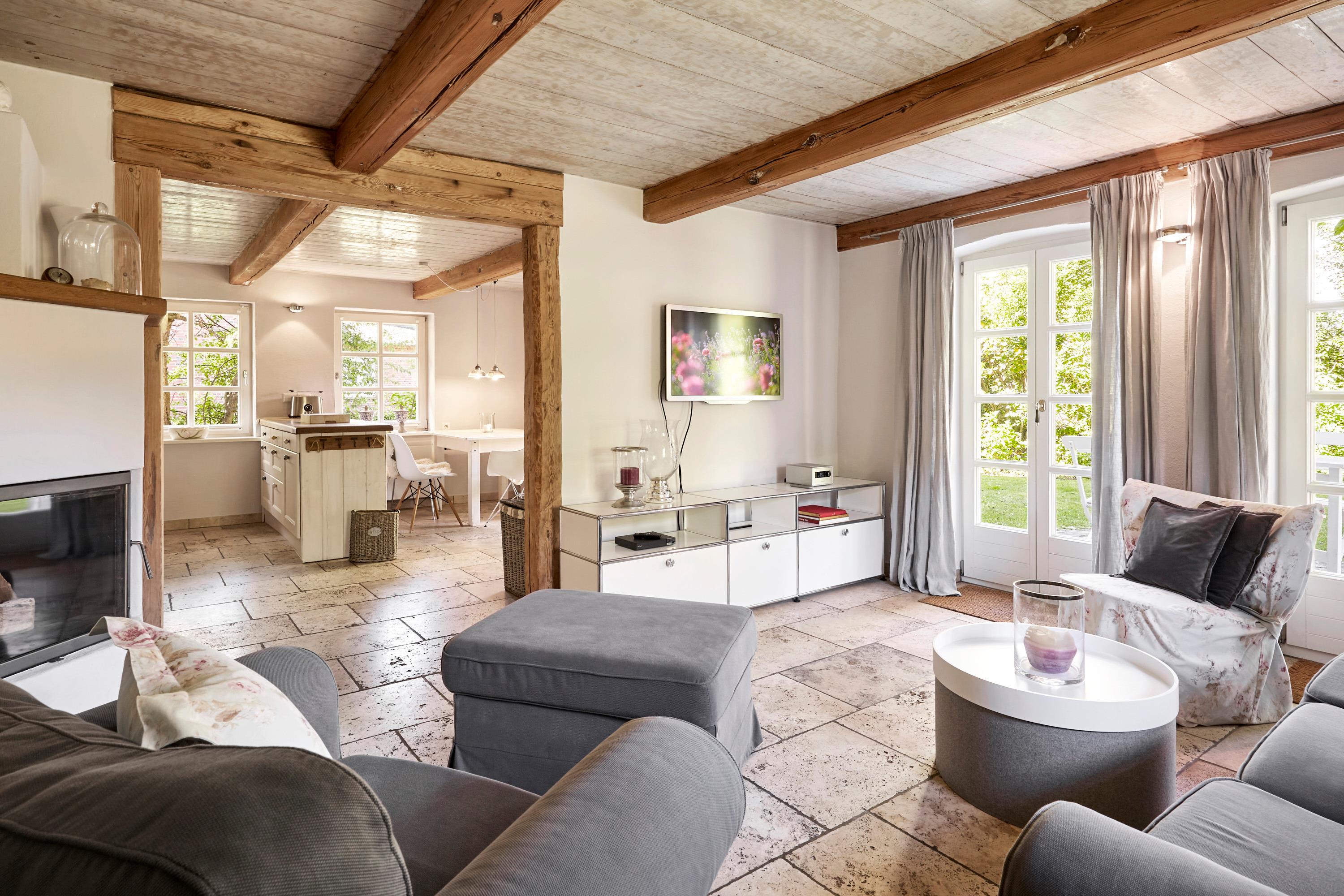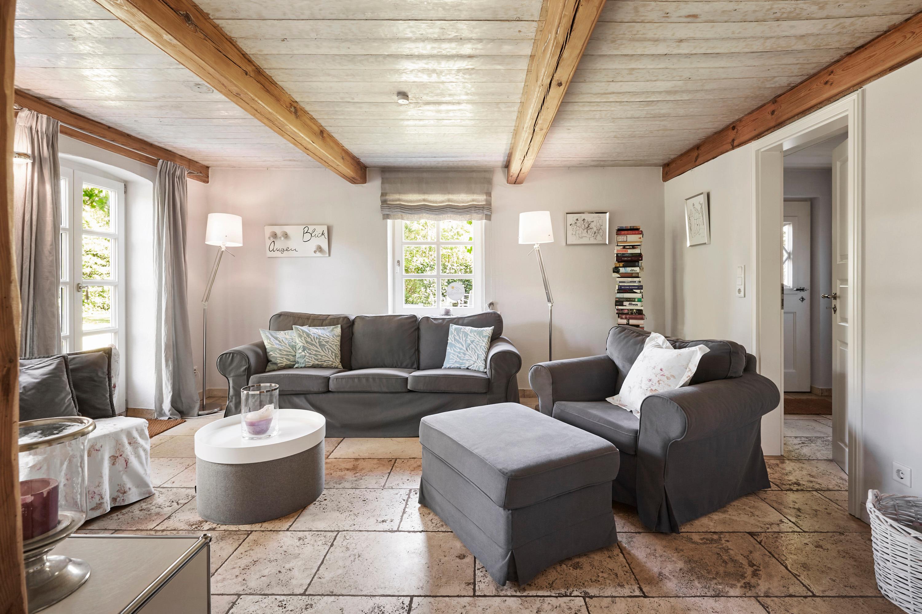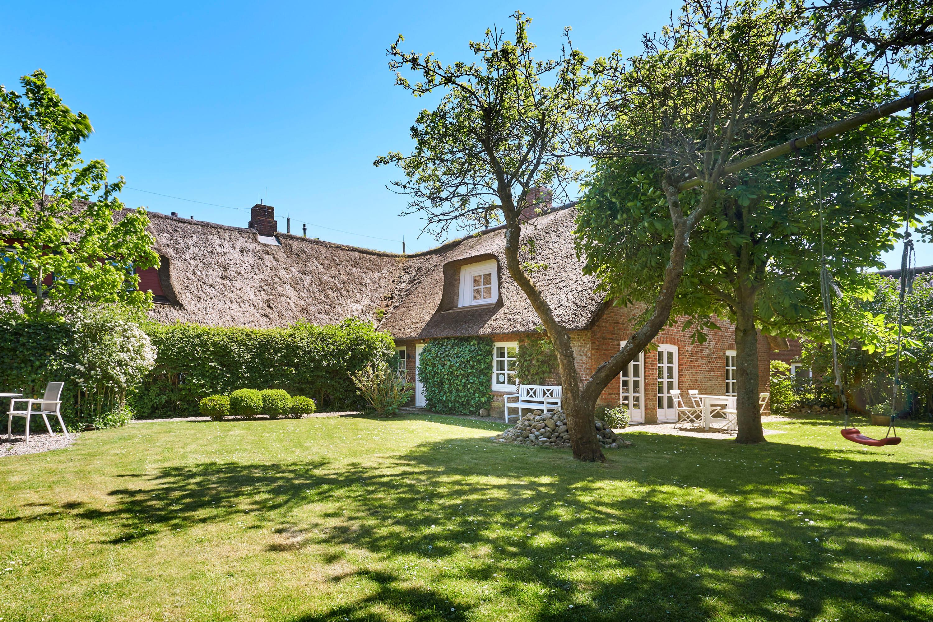 Den Augenblick einfach genießen, das kann und soll man in unserer liebevoll eingerichteten Reetdachhaushälfte. .Hochwertig und komfortabel ist es eingerichtet. Hier treffen Designklassiker auf Landhauselemente, eine unglaublich schöne und gemütliche Atmosphäre..Ob im Sommer, wenn der großzügige Garten Sie einlädt sich von der gesunden Nordseeluft verwöhnen zu lassen. Oder im Winter vor dem Kamin wenn der Wind ums Haus weht. .Kuschelige Schlafzimmer und schöne Badezimmer lassen einen die Zeit vergessen..Die Küche ist hervorragend ausgestattet, es macht einfach Spaß hier zu kochen, zu klönen..Im malerischen Utersum liegt unser Haus, nur wenige Minuten vom Strand entfernt, an dem man die schönsten Sonnenuntergänge erleben kann. Ach, mögen diese glücklichen Augenblicke nie enden .