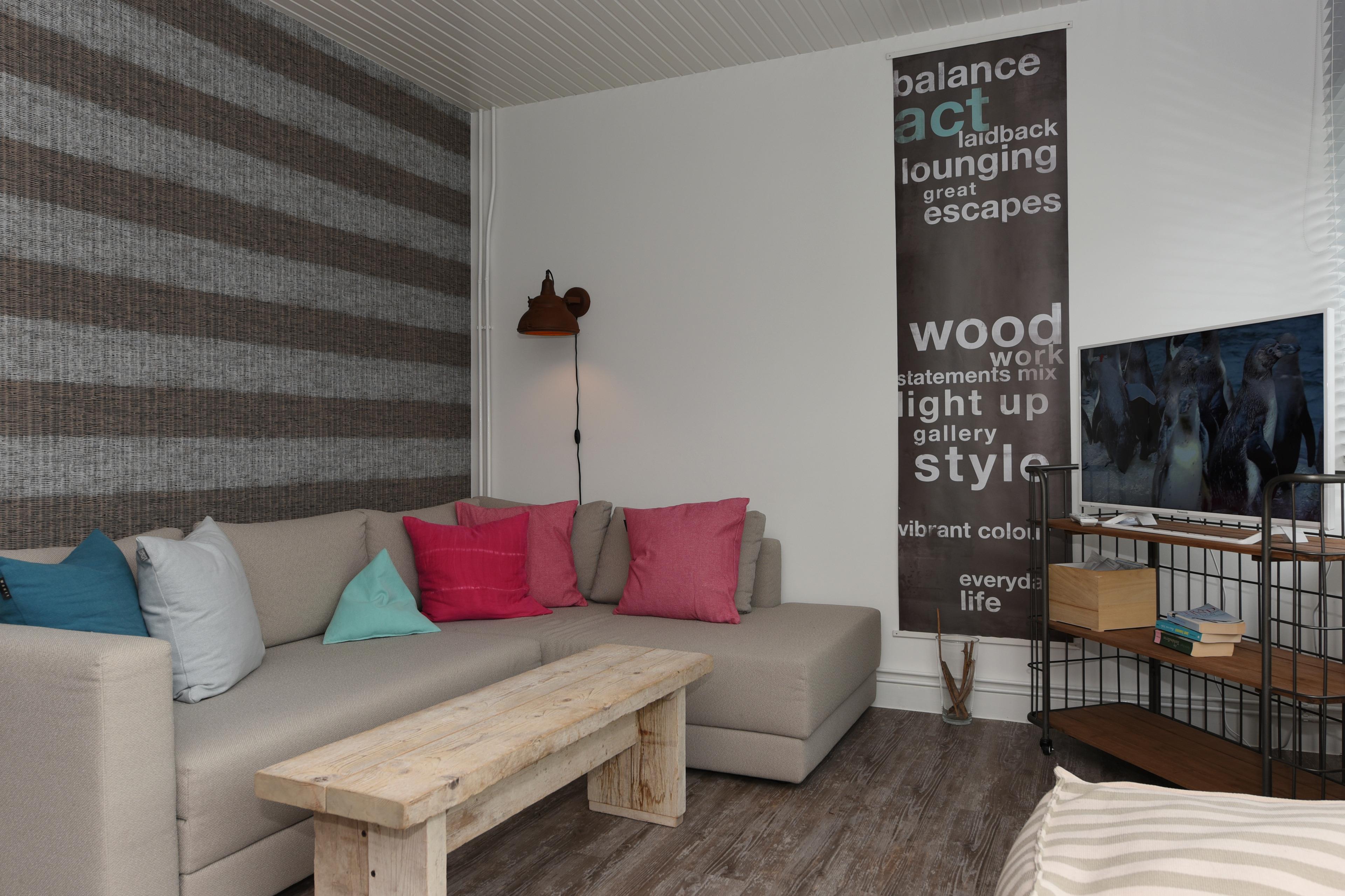 Eine große, gemütliche Couch lädt zum Entspannen nach einem aufregenden Tag am Strand oder auf dem Surfboard ein, während die Fensterfronten das gesamte Raumambiente mit natürlichem Licht durchfluten.