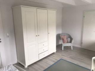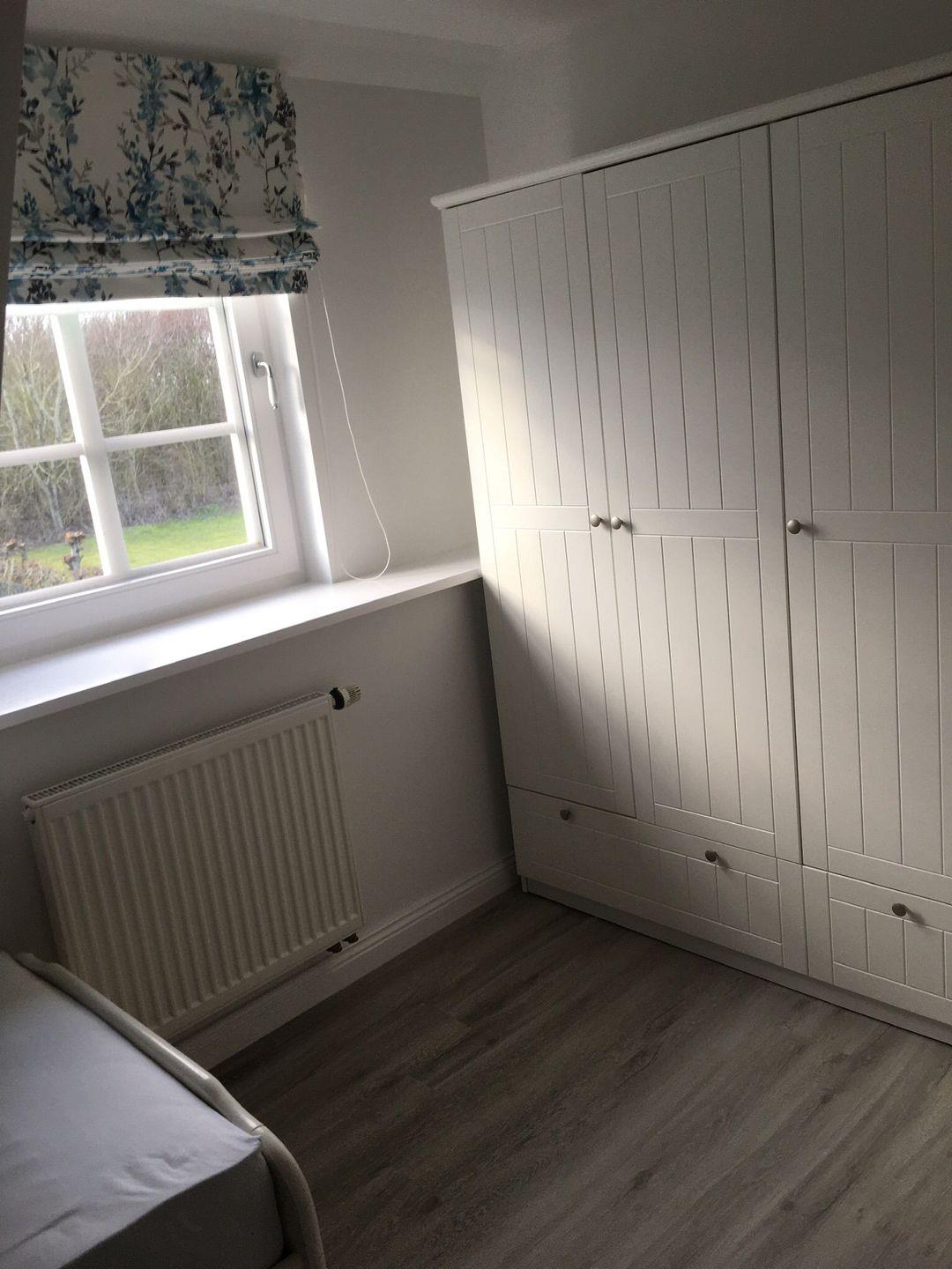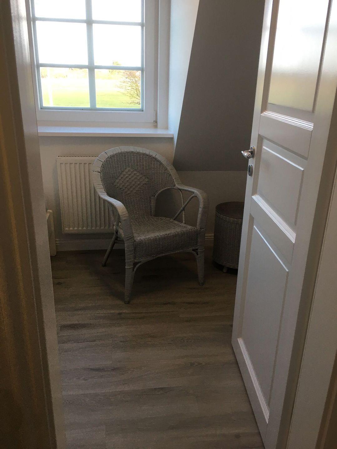 Über die Treppe gelangen Sie in das 1. Obergeschoss mit den drei Schlafzimmern. Eins davon ist mit zwei Einzelbetten und eins mit einem Doppelbett ausgestattet. Das dritte Schlafzimmer verfügt über ein Einzelbettzimmer und ist gleichzeitig das Durchgangszimmer zum Doppelzimmer.