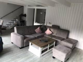 Durch die Eingangstür gelangen Sie direkt in den offenen und großzügigen Wohn- und Essbereich, in dem sich auch der Zugang zur Terrasse und der Kaminofen befinden. Im Garten gibt es einen kleinen Teich. Im Erdgeschoss sind ebenfalls die separate Küche, in der Sie einen weiteren Esstisch für die ganze Familie vorfinden, und das erste Bad mit einer Dusche gelegen.