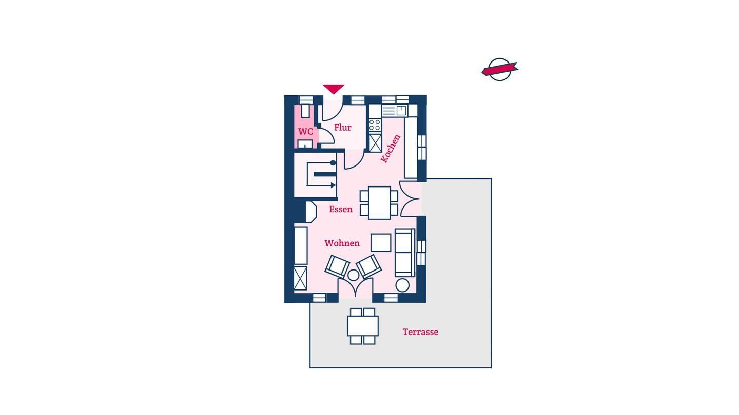 Ferienhausteil für bis zu 4 Personen.