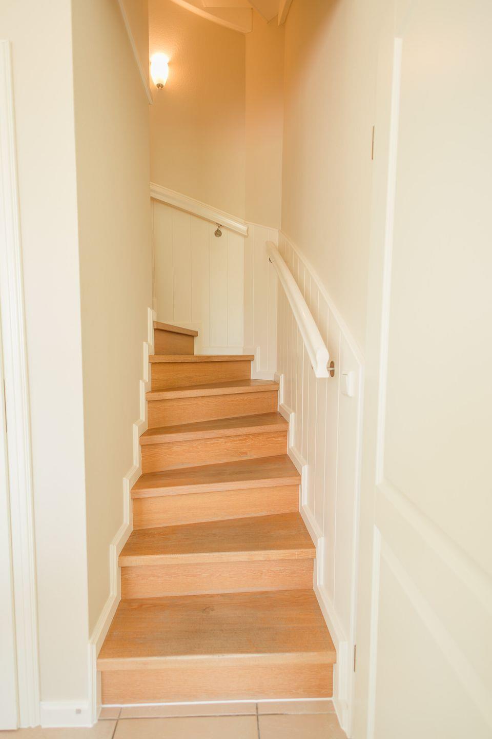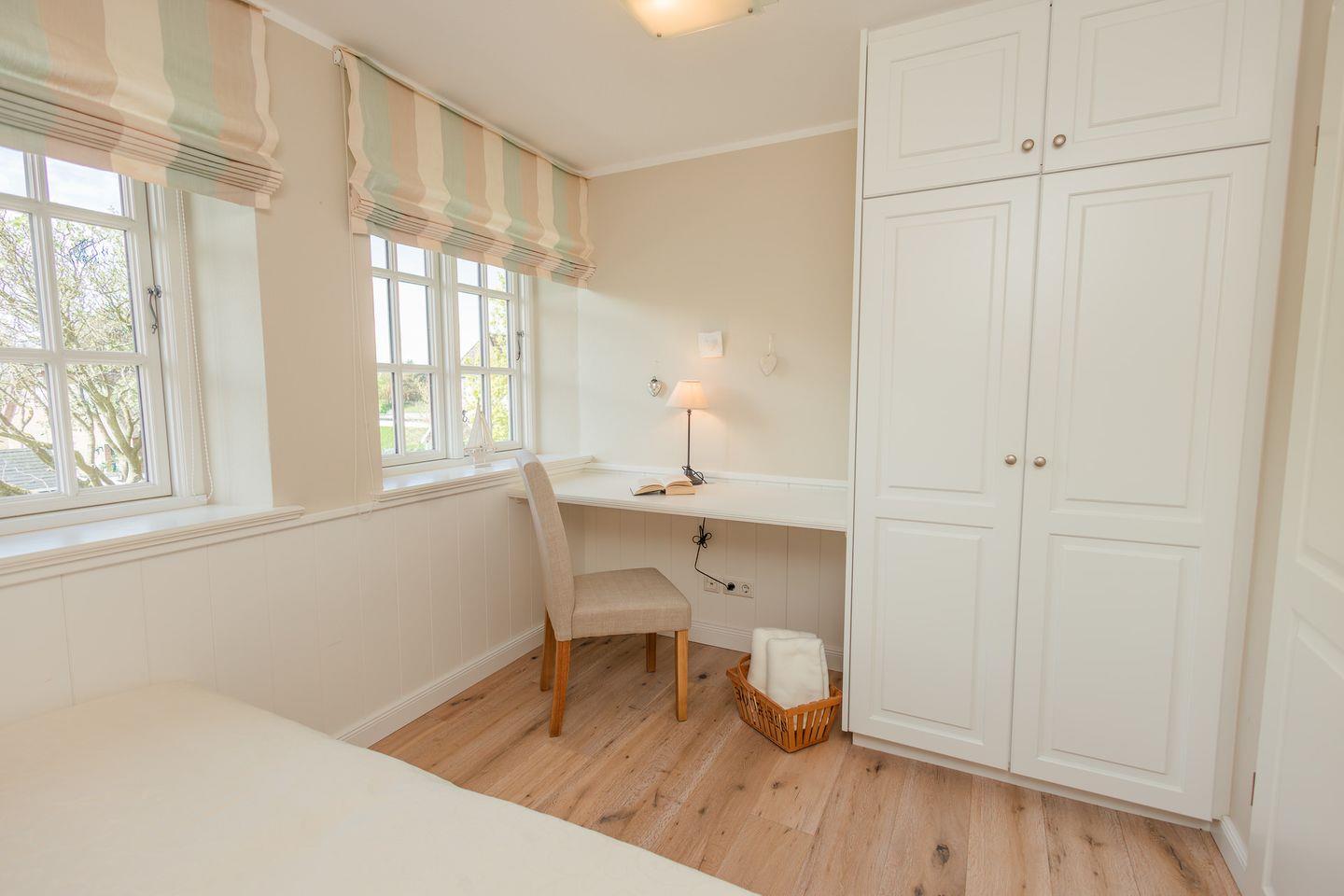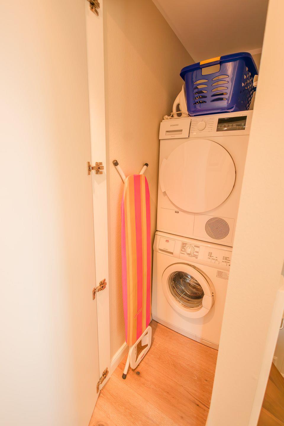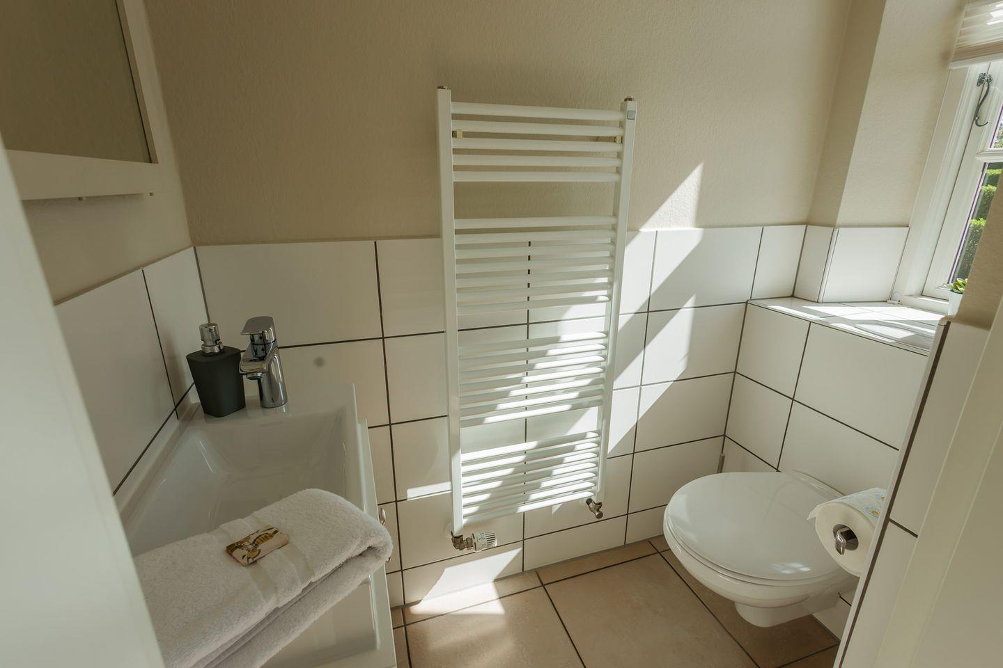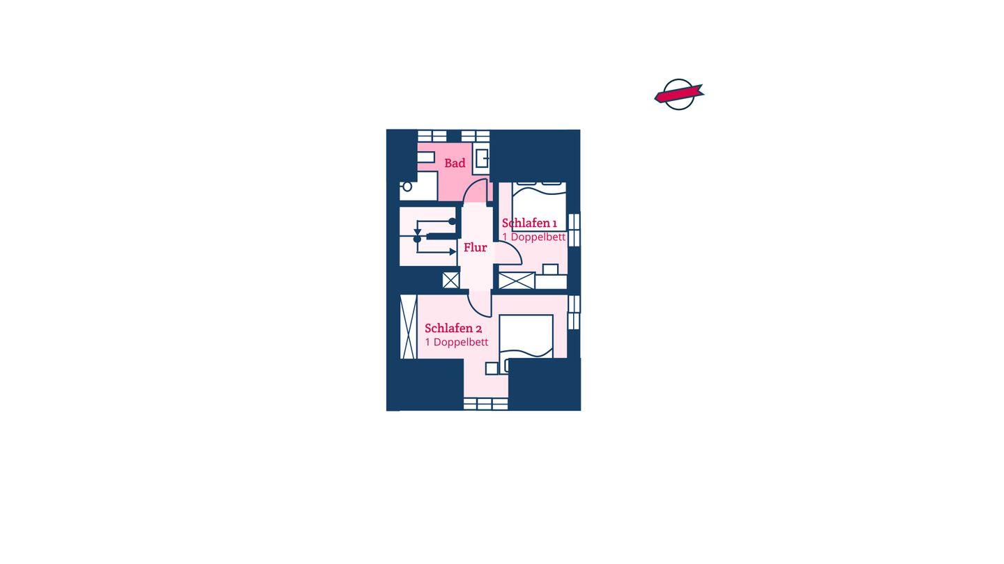 Im Obergeschoss sind die beiden Schlafzimmer mit jeweils einem Doppelbett ausgestattet - und das Duschbad mit Fußbodenheizung sowie, in einem Separee abgetrennt, Waschmaschine und Trockner gelegen. Die Doppelbettzimmer verfügen über eigenen Smart-TV.