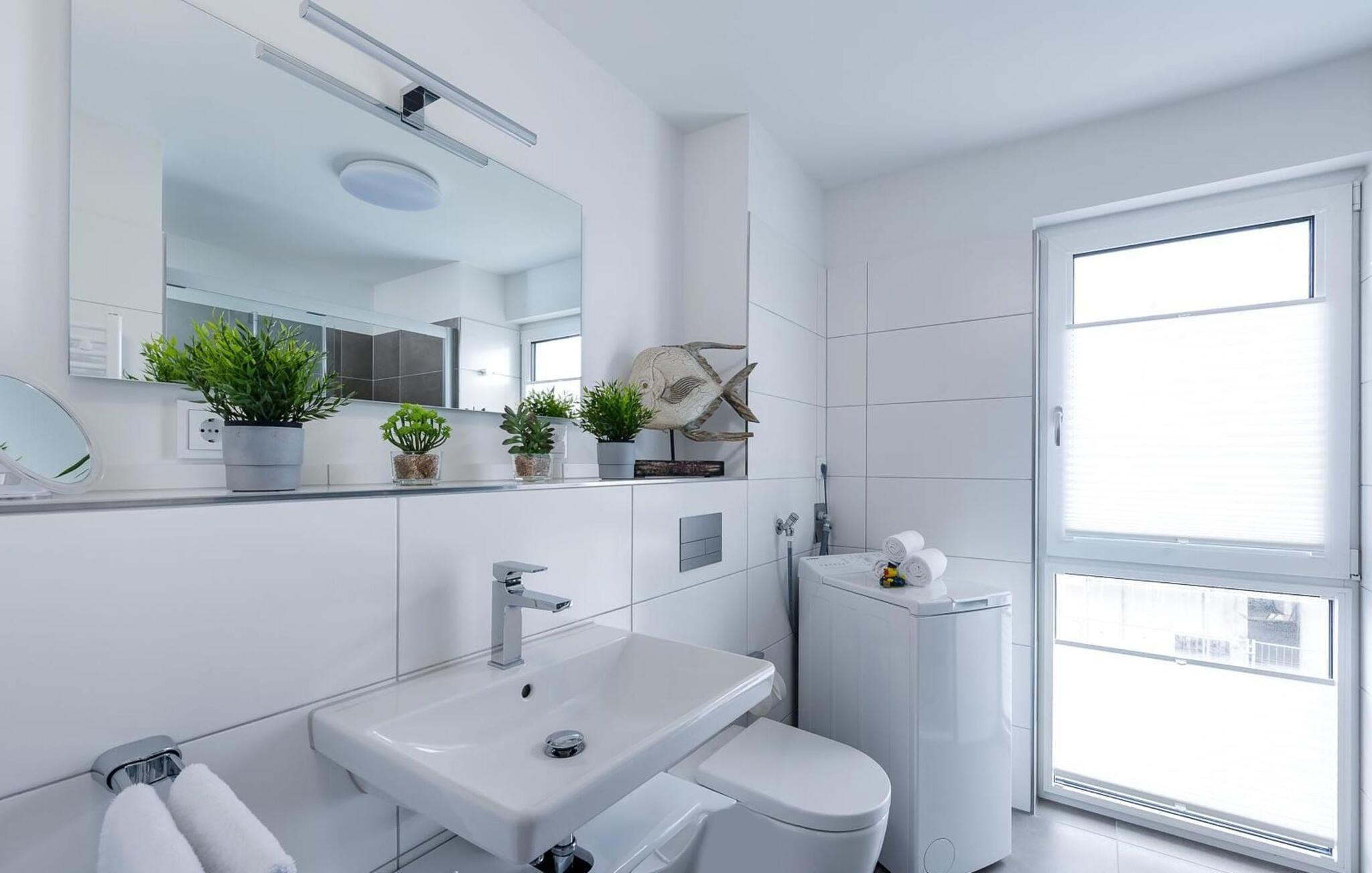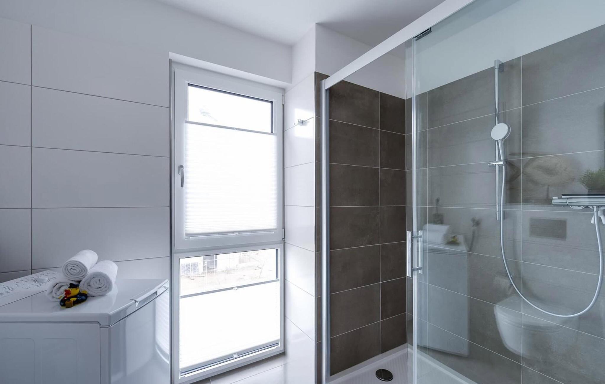 Denne ferielejlighed er designet til at være fri for barrierer, og den kan nemt nås med elevator og har en bruser i gulvniveau.