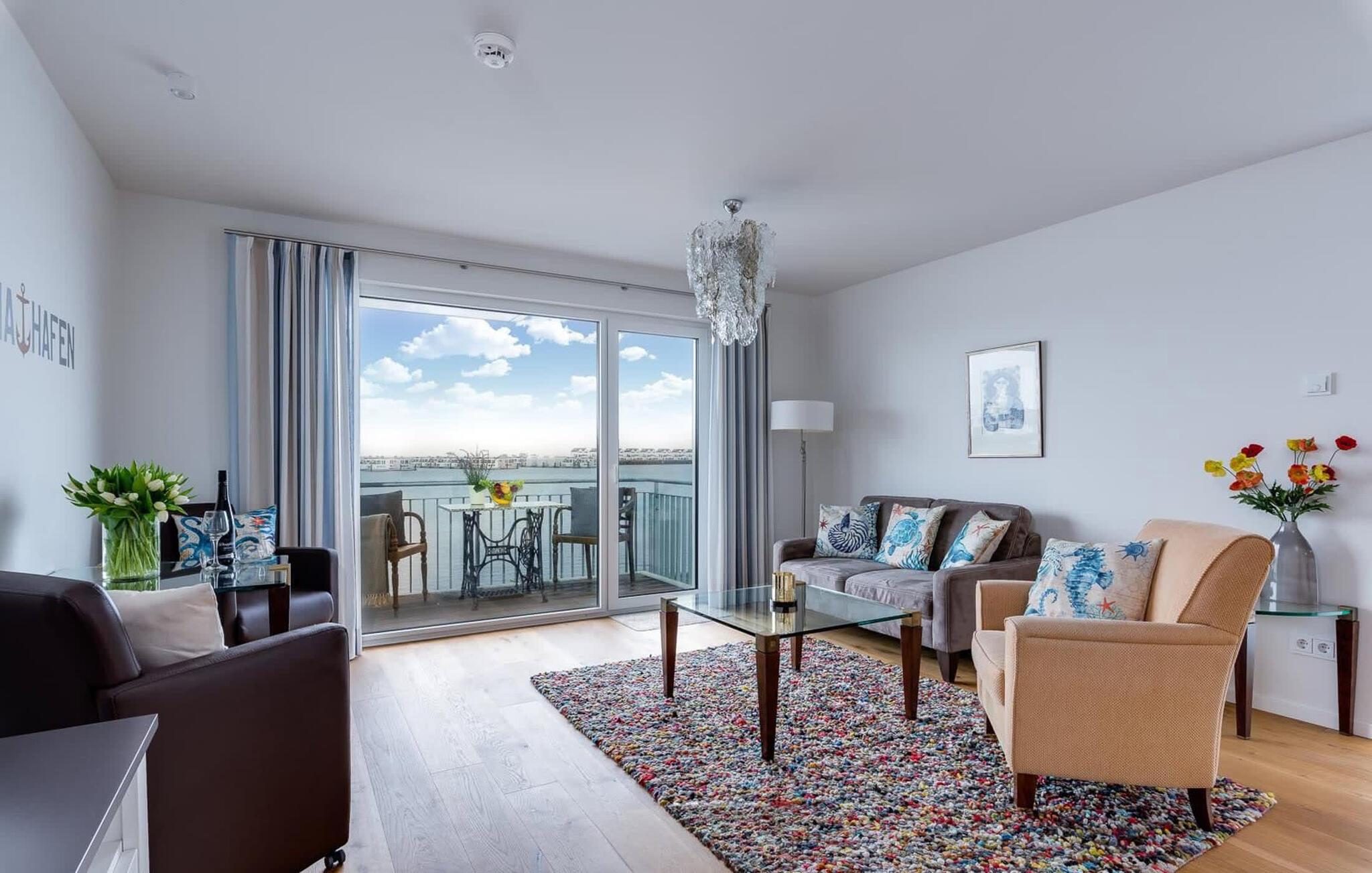 Beliggende direkte på havnepromenaden i Baltic Sea Resort Olpenitz, scorer denne lyse ferielejlighed med en fænomenal udsigt over sejler- og sportsbådshavnen, de flydende huse og østersøfjorden Slien takket være dets gulv-til-loft-vindue foran. En havnebiograf er garanteret, ligesom de billedskønne solnedgange, der kan iagttages fra balkonen.