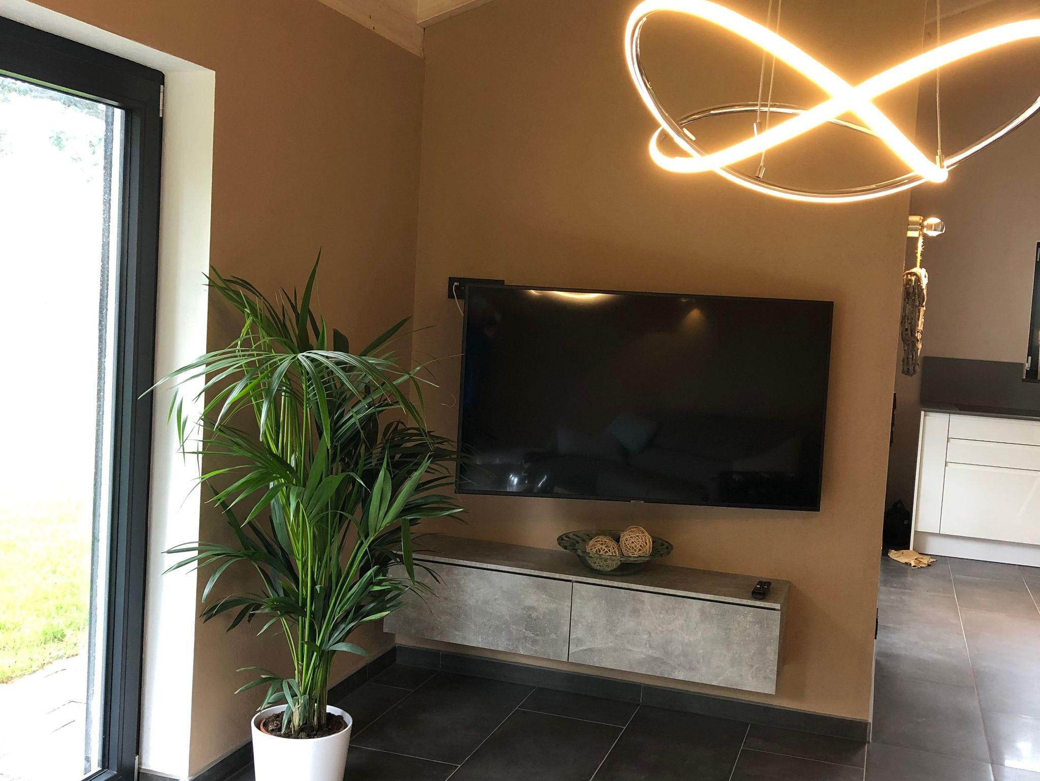 800qm Grundstück, 80qm Wohnfläche, Fußbodenheizung, moderne Küche mit Spülmaschine, Flachbildfernseher 55 Zoll, Bad mit 2 Waschbecken und Walk-In-Regendusche.