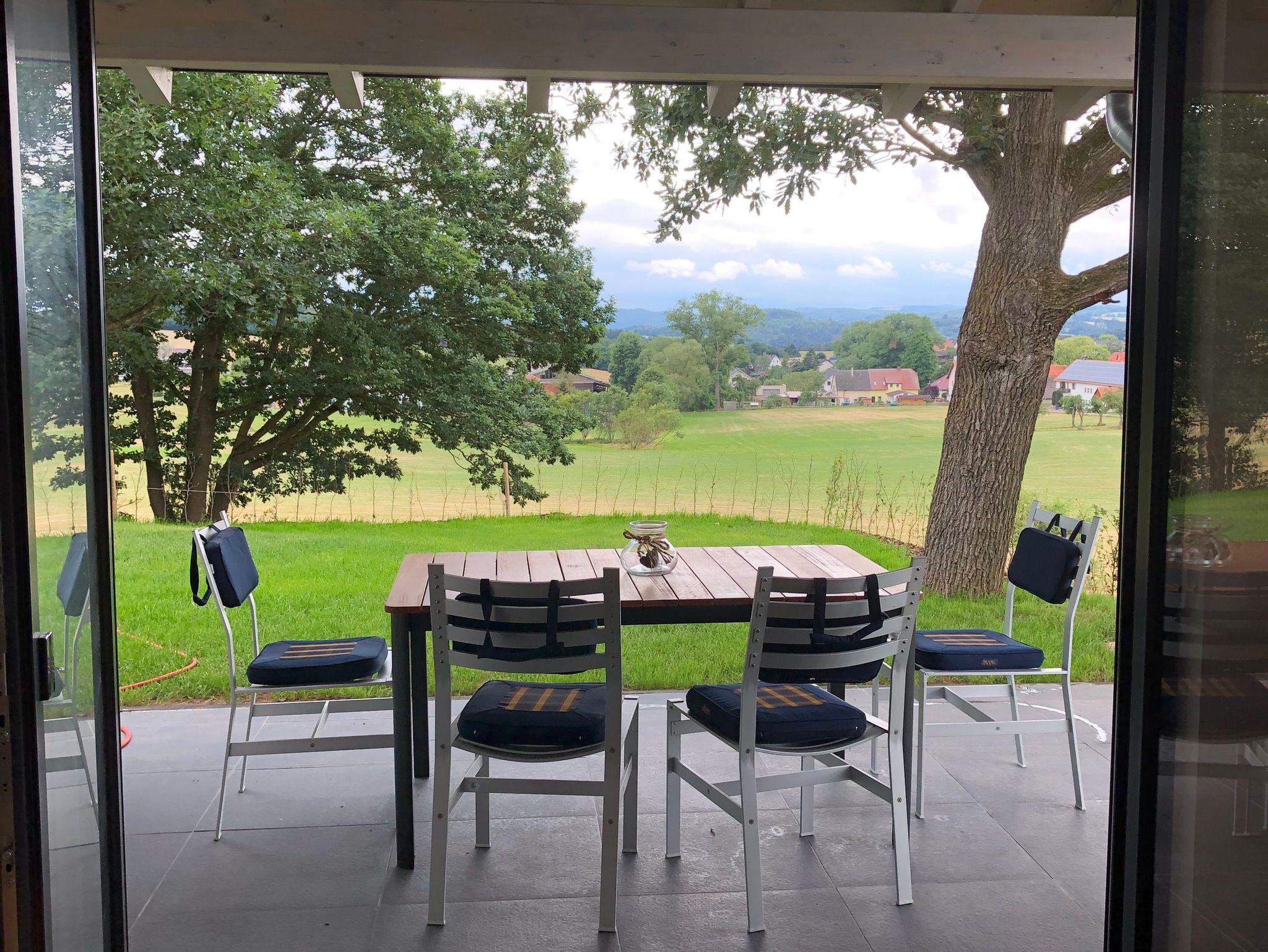 Modernes Architekten-Ferienhaus in ruhiger Lage mit Freisitz, altem Baumbestand und schönem Weitblick. Max. 5 Personen (2 Erwachsene und 3 Kinder), 2 Schlafzimmer, Nichtraucher, keine Haustiere. Bitte beachten Sie, dass der angegebene Preis für 3 Personen gilt. Für jedes weitere Kind wird ein Aufschlag von 7 € pro Nacht berechnet.