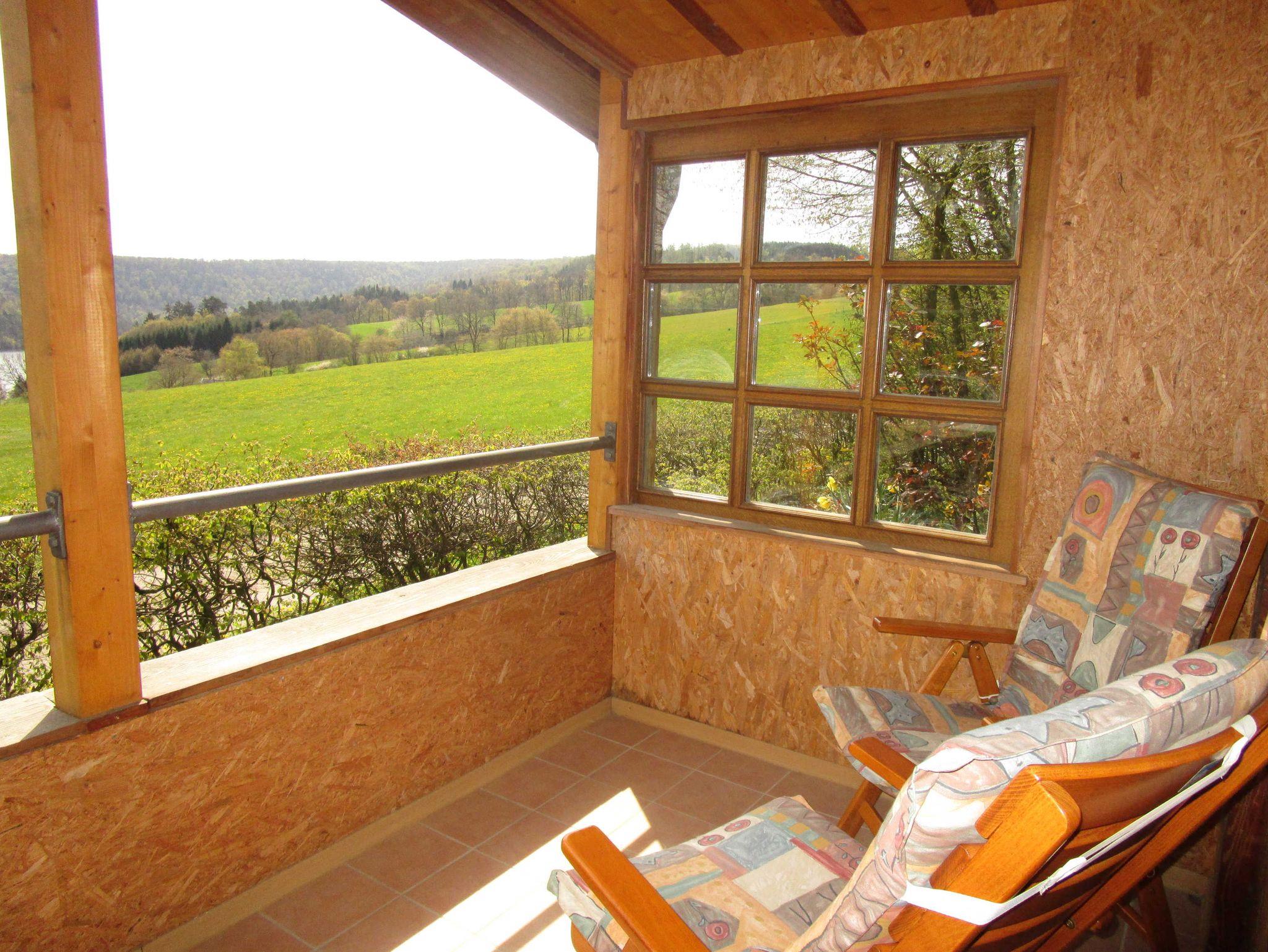Gelegen am Ortsrand von Harbshausen, ohne Verkehrslärm, in der Nähe unseres Kuhstalls, mit Morgensonne und direktem Seeblick (oder ins Edertal bei Niedrigwasser).