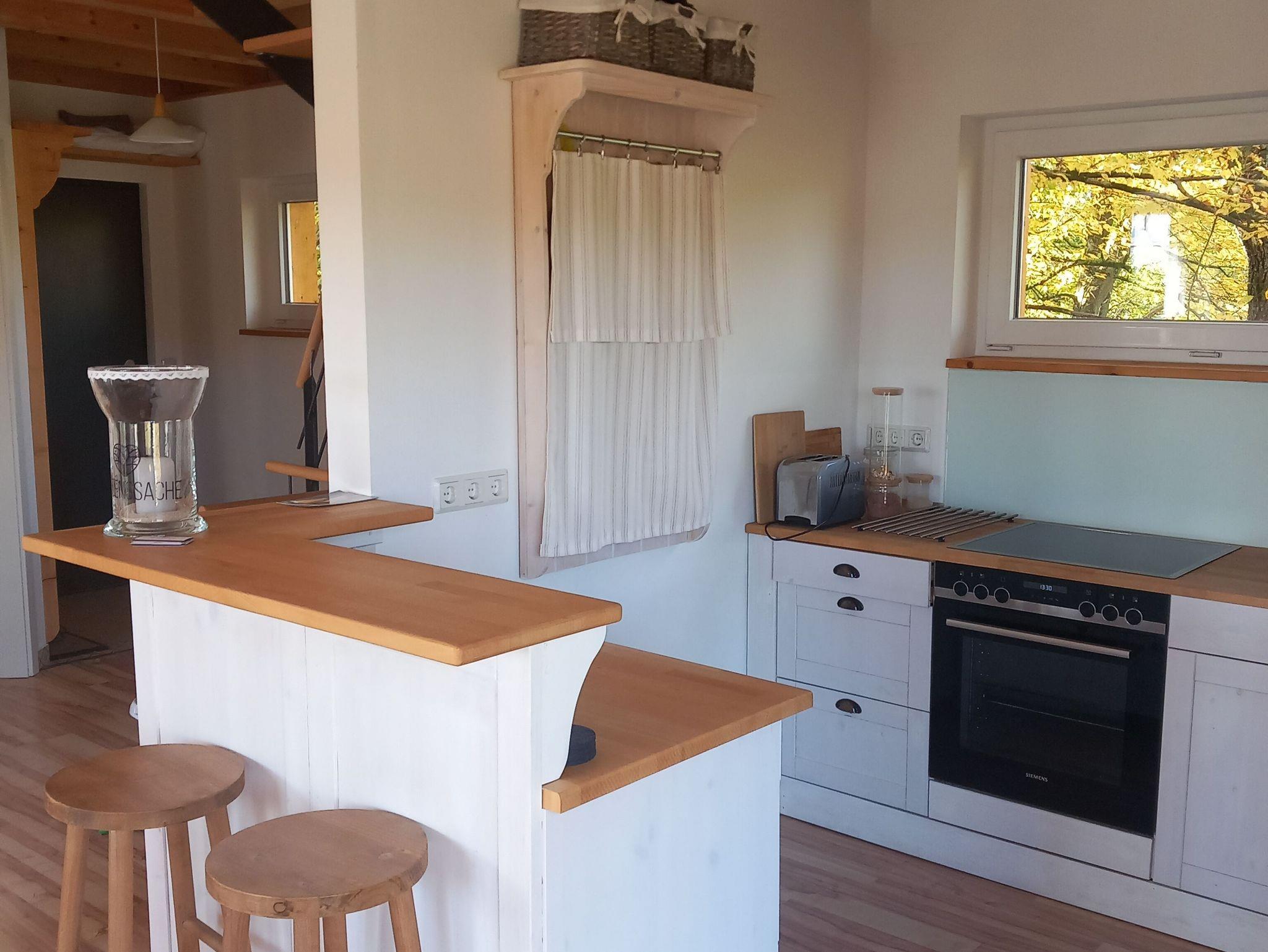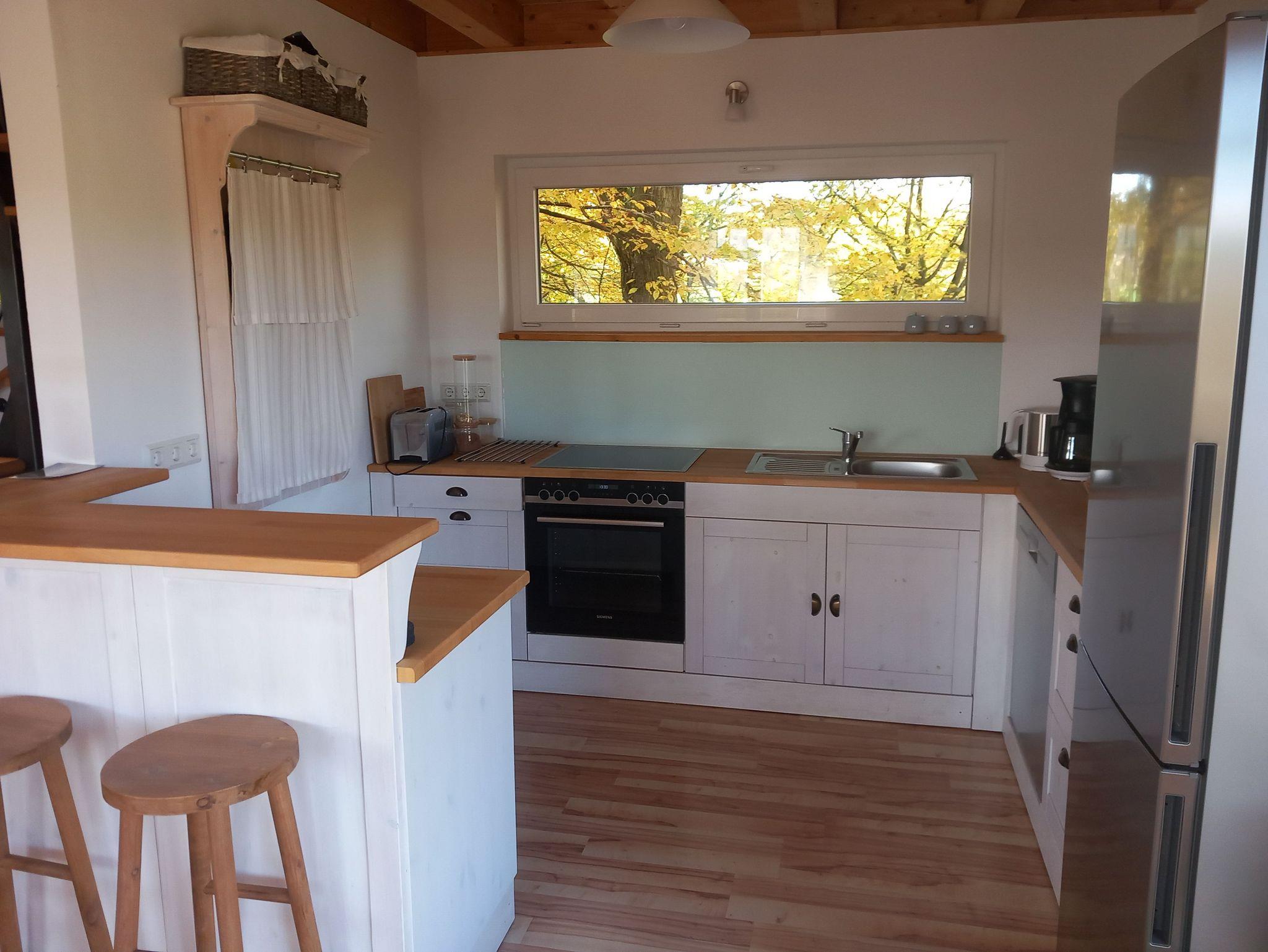 Ausstattung: Backofen, Gefrierkühlschrank, Kaffeemaschine, Wasserkocher, Wassersprudler, Spülmaschine, Toaster