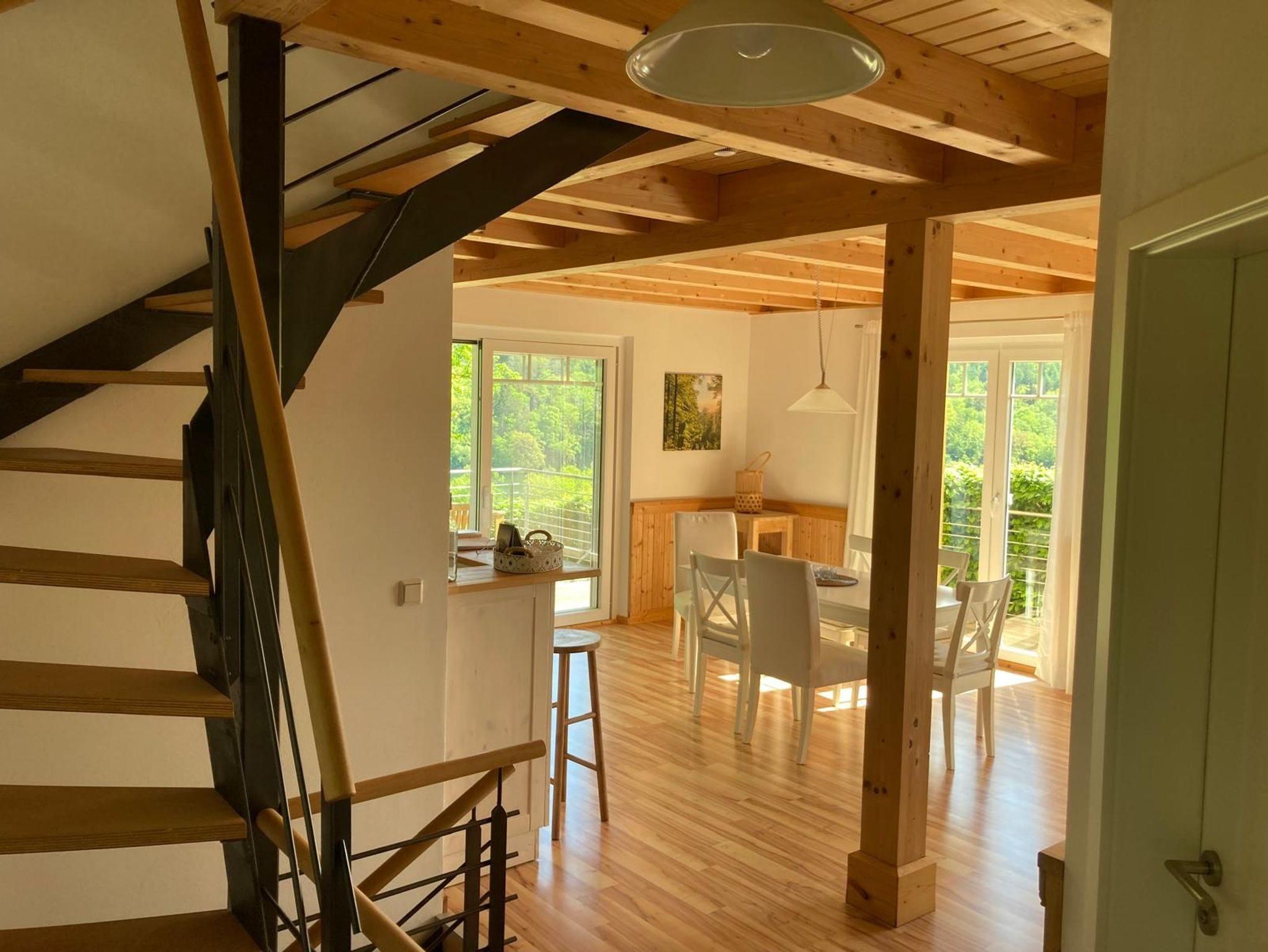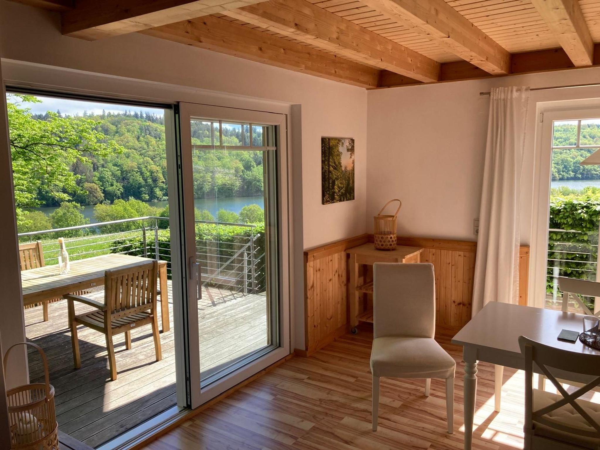 Das Ferienhaus wurde 2020 in einer kleinen privaten Ferienhaussiedlung in der Nationalparkgemeinde Vöhl etwa 240 m neben und 30 m über dem Edersee errichtet.