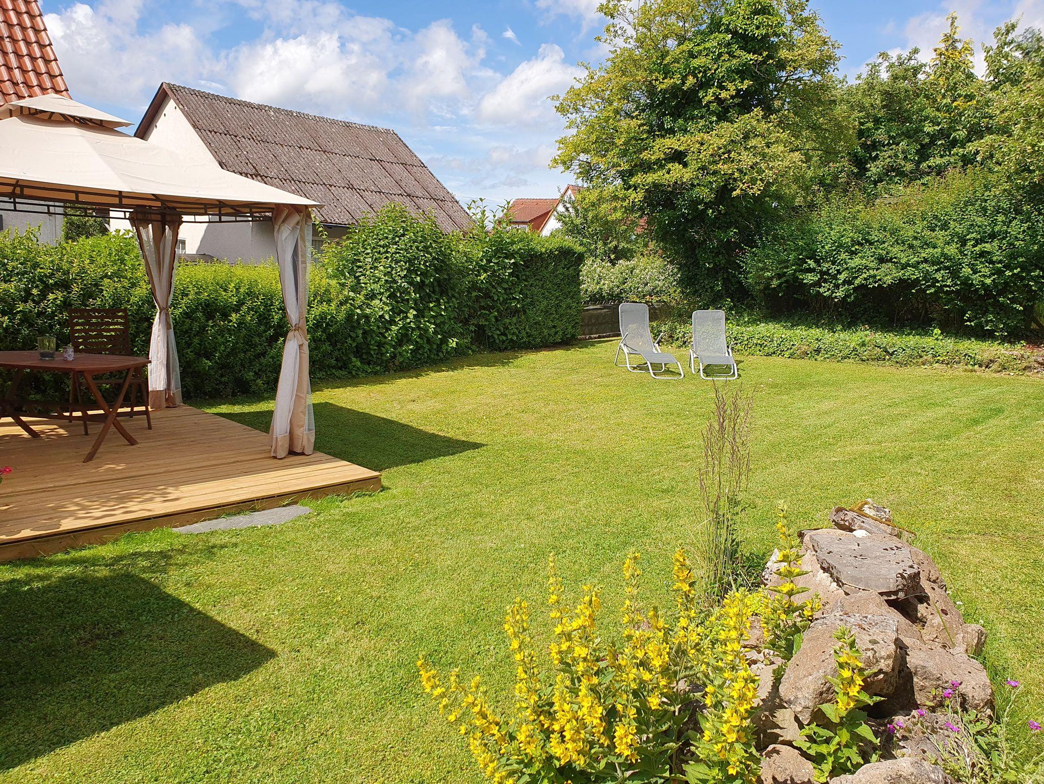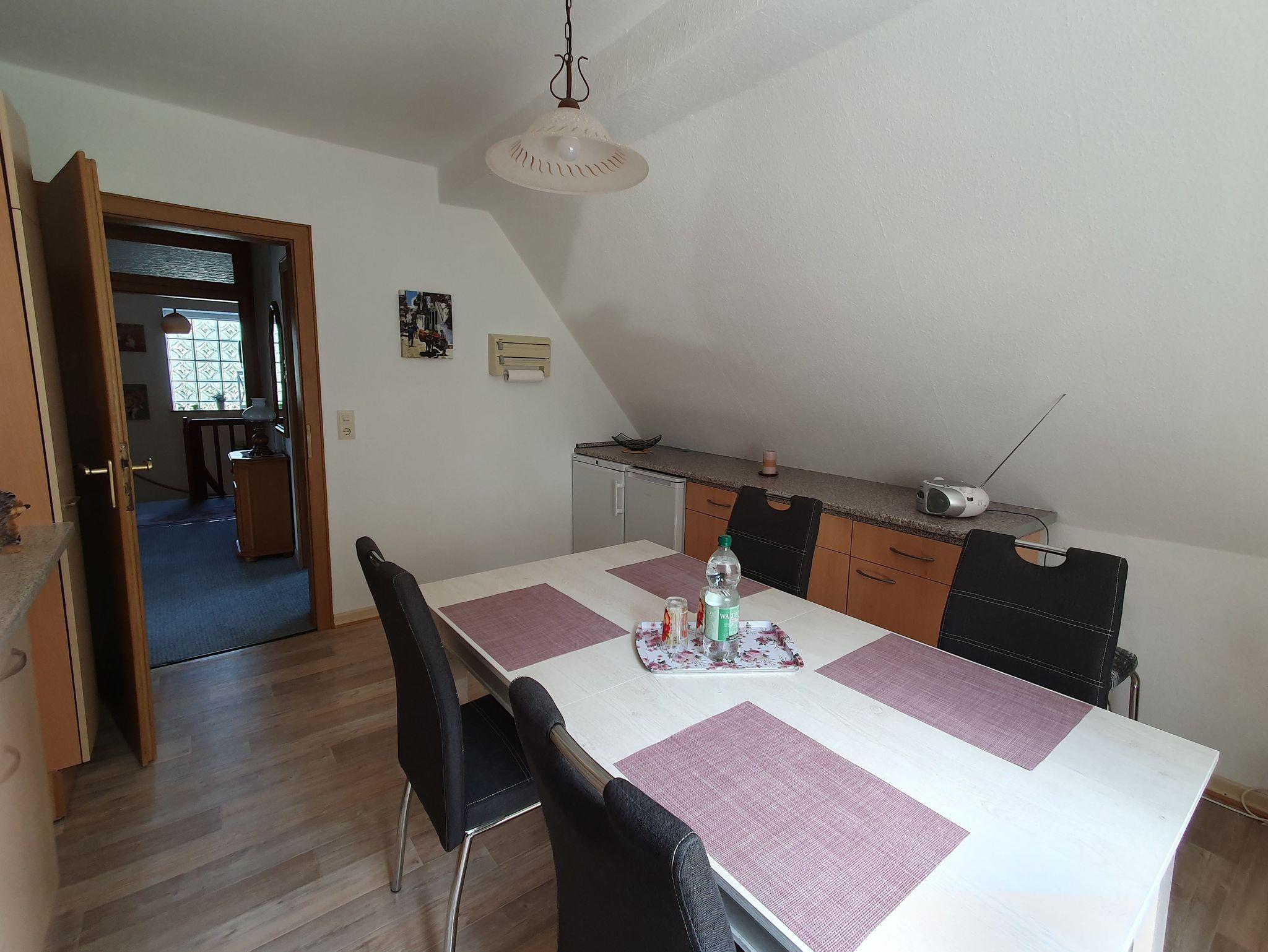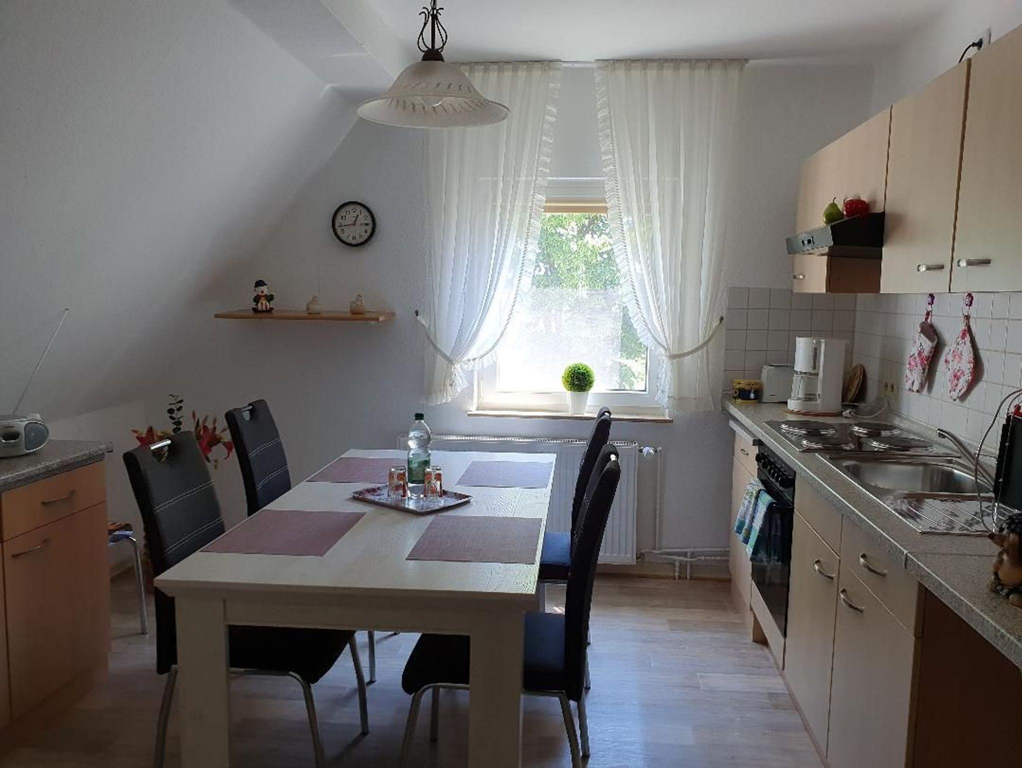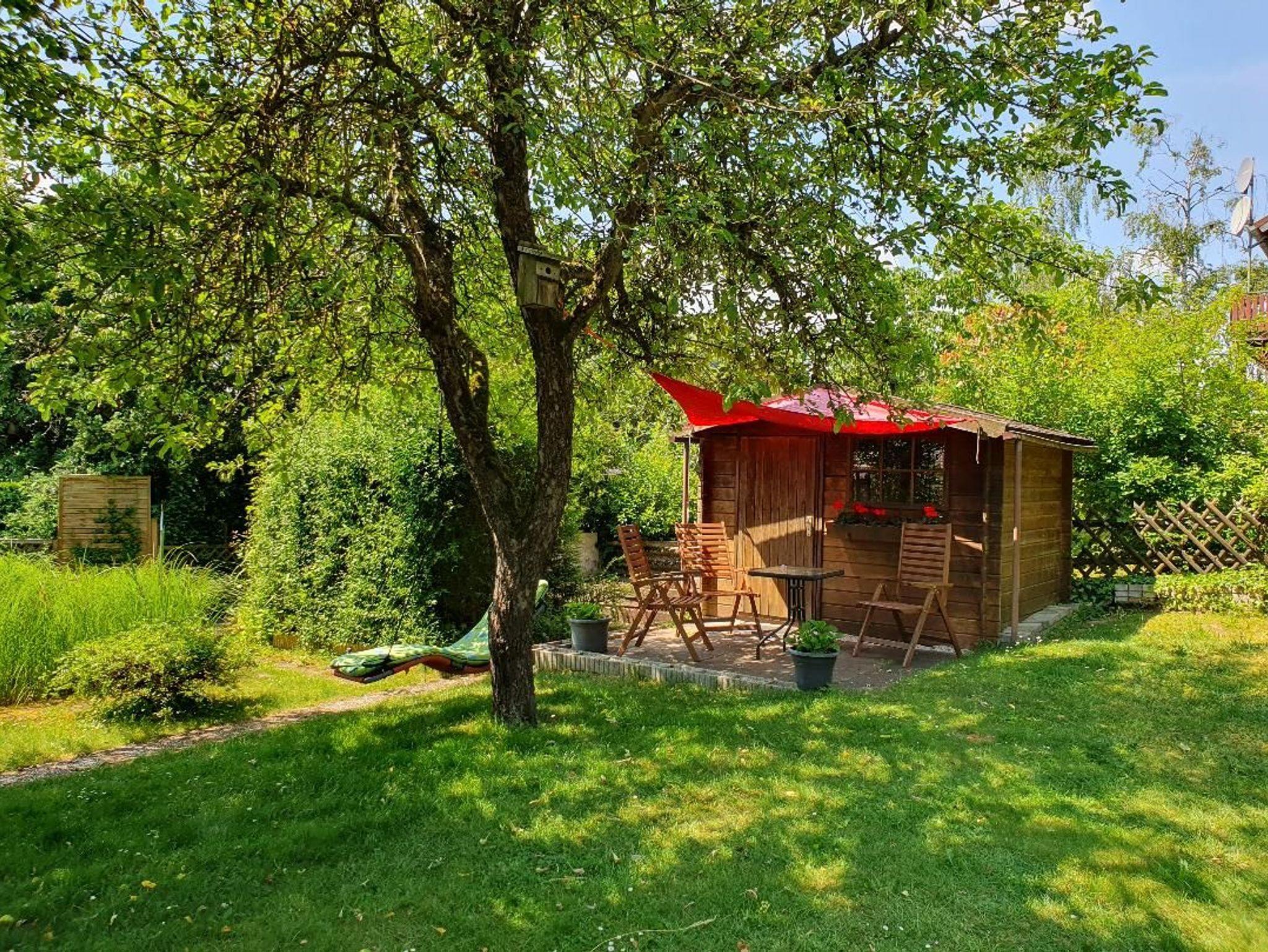 Kleine gemütlich eingerichtete Nichtraucher-Ferienwohnung für 2 Personen und 1 Kleinkind im Zustellbett, im 1. Stock mit komplett eingerichteter Küche, großem Bad mit Dusche und Fön, geräumiges Schlafzimmer mit großem Schrank und Doppelbett. Ein großer, eingezäunter Garten lädt mit verschiedenen Ruhebereichen zum Entspannen ein. Ein Holzkohlegrill steht für die Gäste bereit.