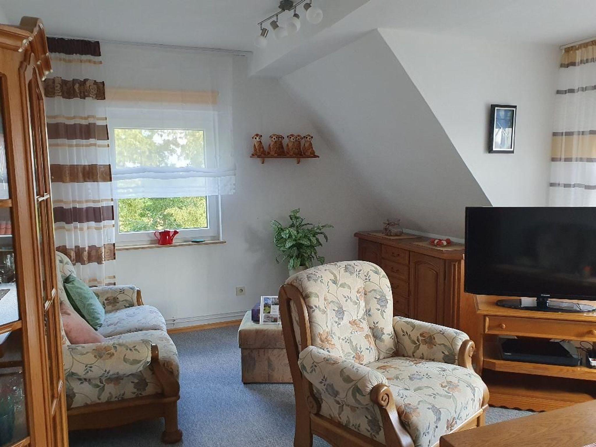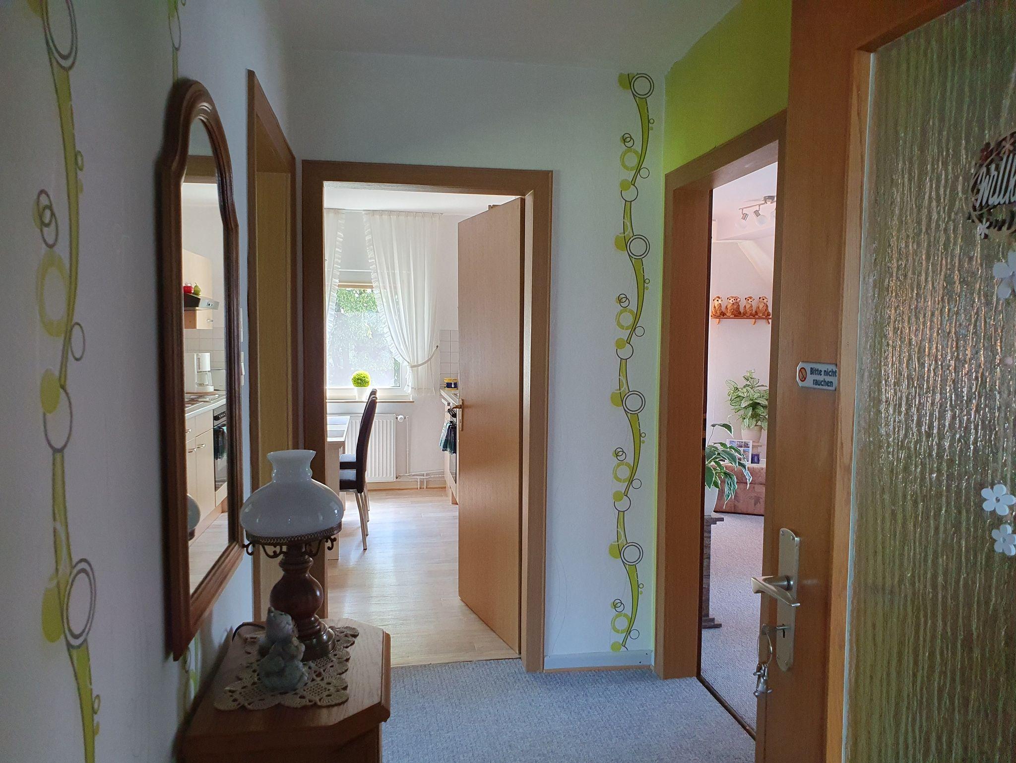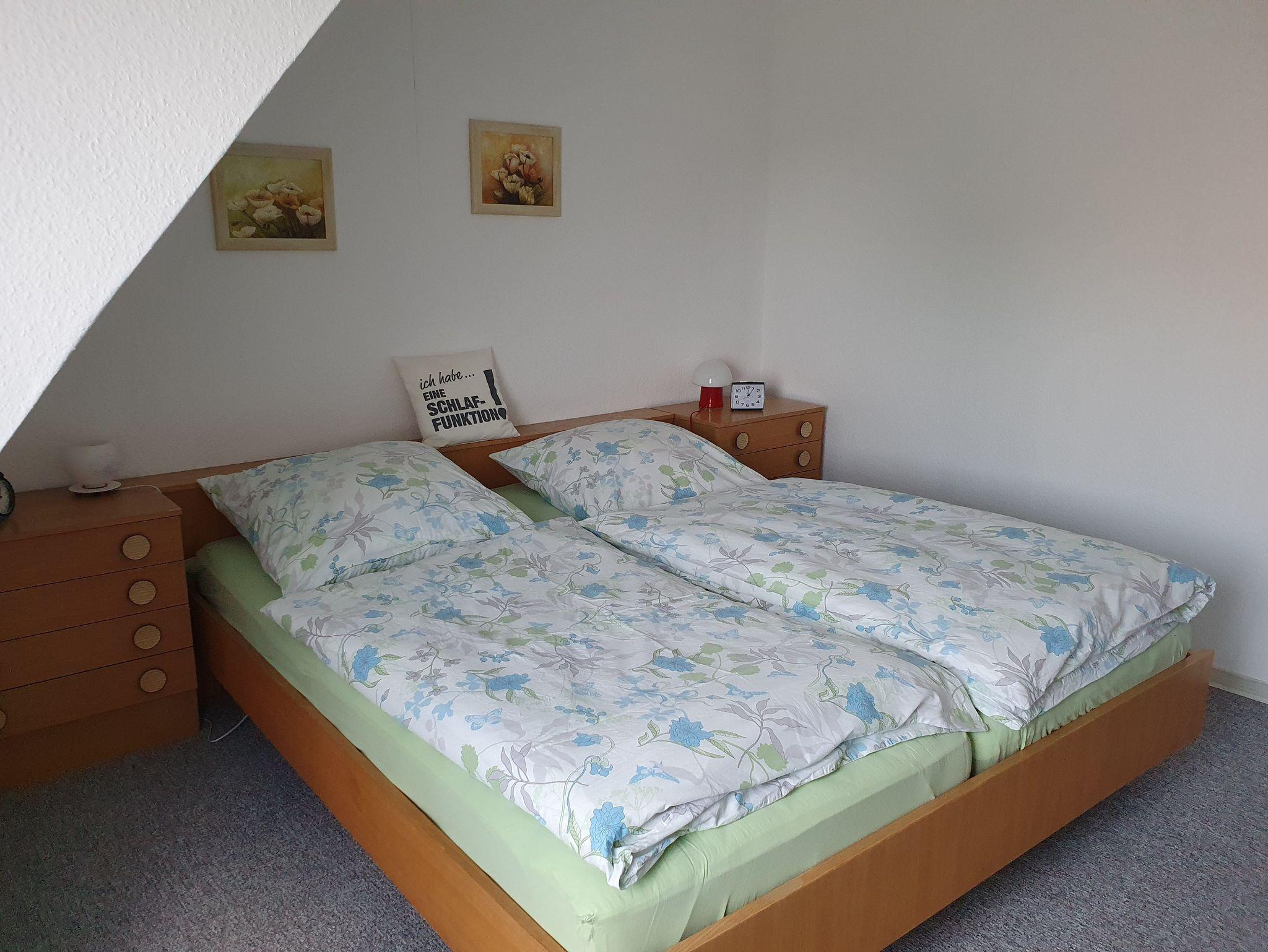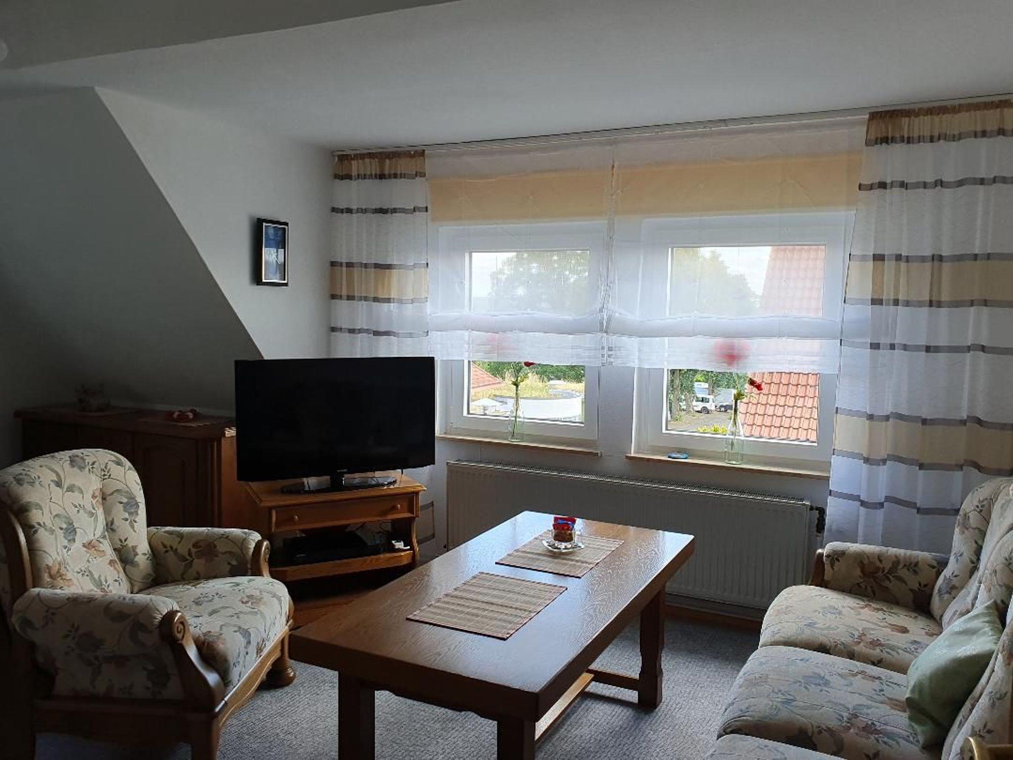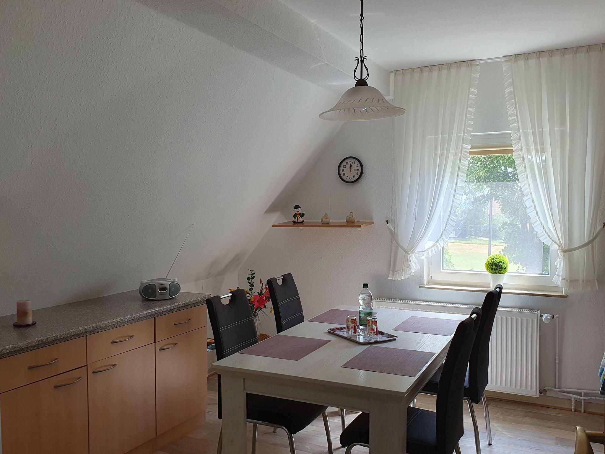 Kleine gemütlich eingerichtete Nichtraucher-Ferienwohnung für 2 Personen und 1 Kleinkind im Zustellbett, im 1. Stock mit komplett eingerichteter Küche, großem Bad mit Dusche und Fön, geräumiges Schlafzimmer mit großem Schrank und Doppelbett. Ein großer, eingezäunter Garten lädt mit verschiedenen Ruhebereichen zum Entspannen ein. Ein Holzkohlegrill steht für die Gäste bereit.