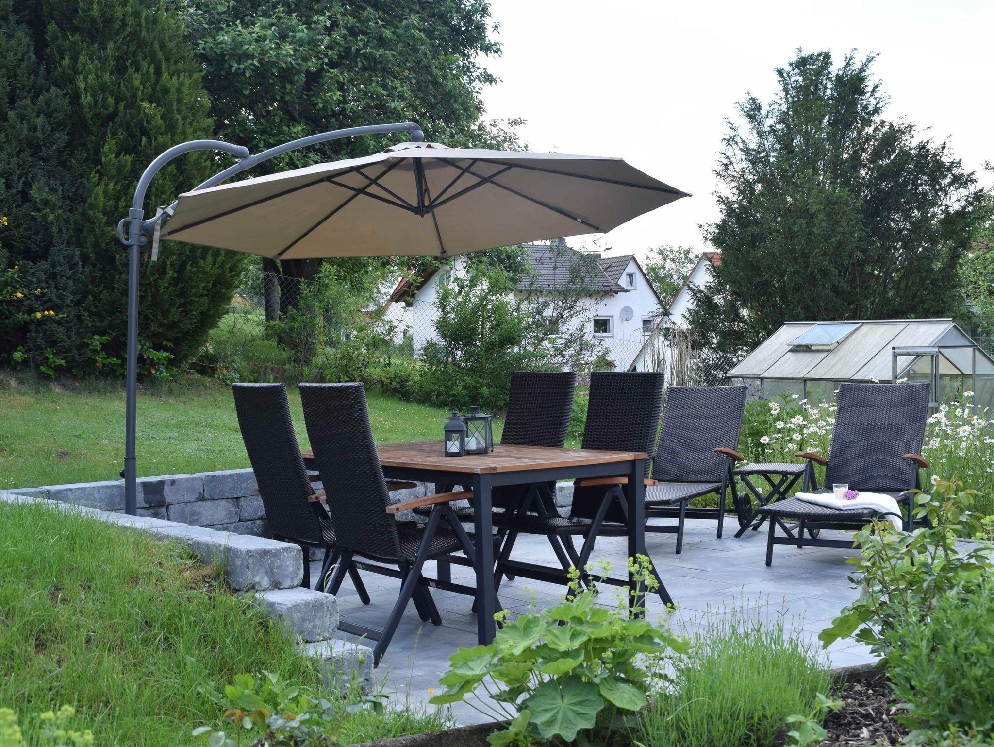 Das Haus liegt am Ortsrand von Schmittlotheim direkt am Wald und ist so der ideale Ausgangspunkt für Ihre Wanderungen und Ausflüge in die Natur. Kinder haben hier viel zu entdecken und auf Grund der Lage gibt es keinerlei störenden Verkehr. Der Garten bietet Platz zum Entspannen und Grillen. Eine Sitzgruppe, bequeme Liegen und ein Grill stehen zur Verfügung. Das Parken am Haus ist möglich, Fahr- oder Motorräder können in der Garage untergestellt werden. Nur 200 m vom Haus entfernt befindet sich die nächste Bushaltestelle. Auch der Bahnhof ist zu Fuß erreichbar.