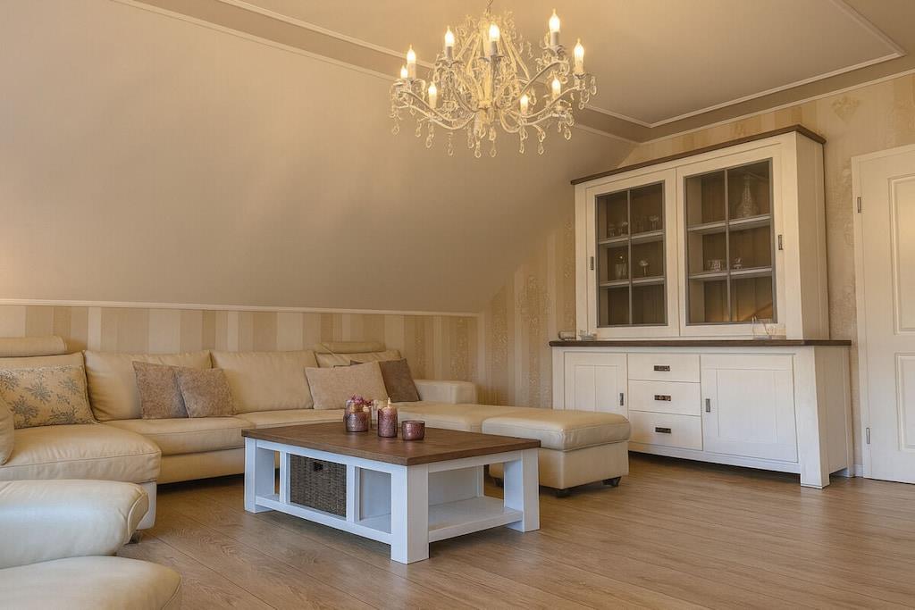 Den 135 m² store ferielejlighed tilbyder to soveværelser med kingsize-senge og et stilfuldt designet badeværelse med bruser, bidet, toilet og badekar. Lejligheden har også en separat, elegant møbleret spisestue – ideel til fælles måltider og afslappende aftener. Den åbne stue med adgang til balkonen tilbyder et indbydende og komfortabelt rum. Det eksklusive køkken er udstyret med topmoderne apparater (f.eks. Miele), induktionskogeplade, granitbordplade og en moderne emhætte.