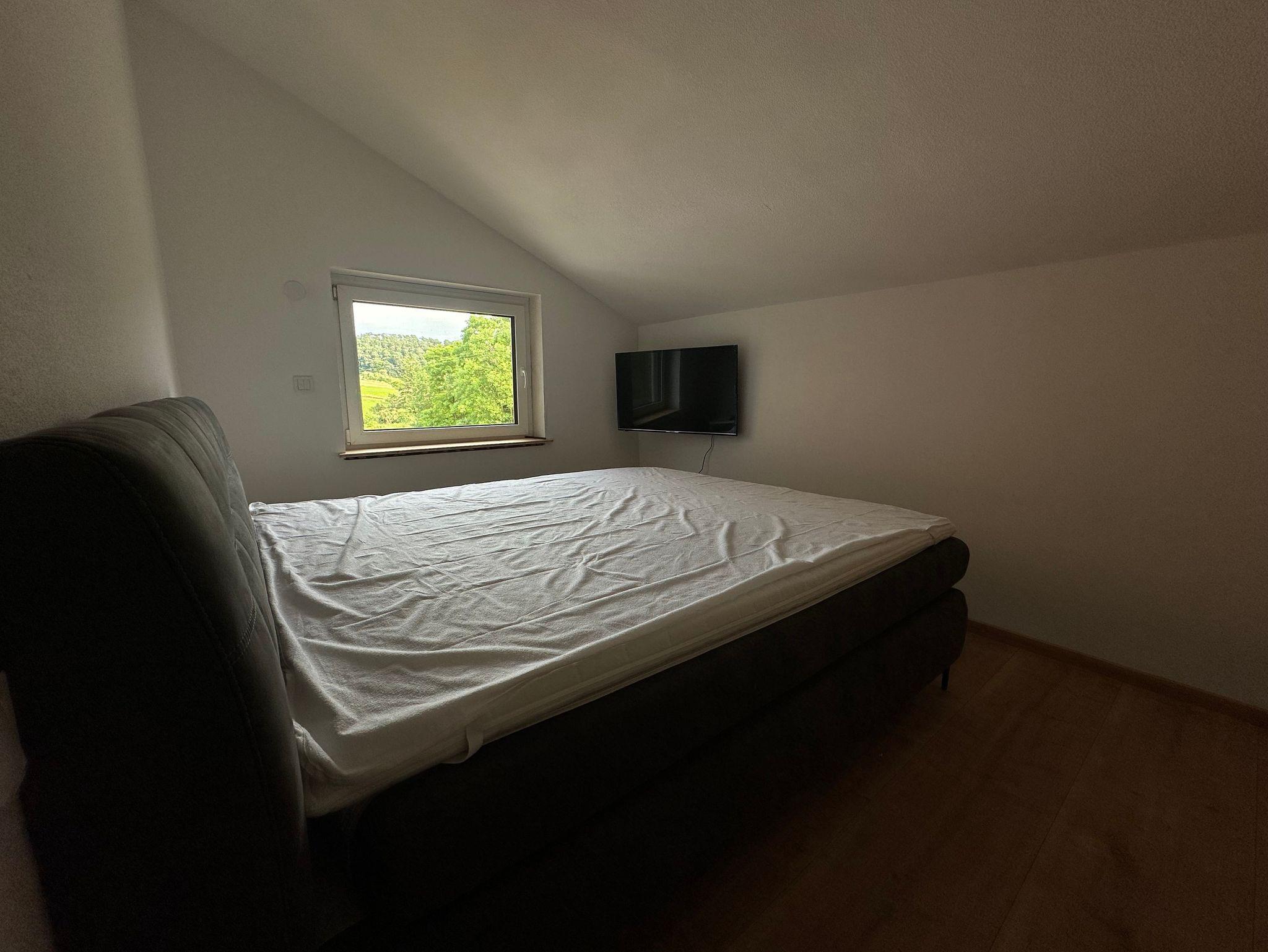 Unsere Ferienwohnung Vöhler-Loggia bietet auf 55 m² ein charmantes und gemütliches Ambiente, das perfekt für Familien gestaltet wurde. In das kuschelige Elternschlafzimmer gelangt der Gast über eine kleine zweistufige Treppe. Zu finden ist dort ein Rückzugsort mit Blick ins Grüne und einem hochwertigen Boxspringbett, das erholsamen Schlaf garantiert. Für die Kinder gibt es ein separates Schlafzimmer mit einem Etagenbett (zwei 90x200cm), das sowohl praktisch als auch einladend ist.