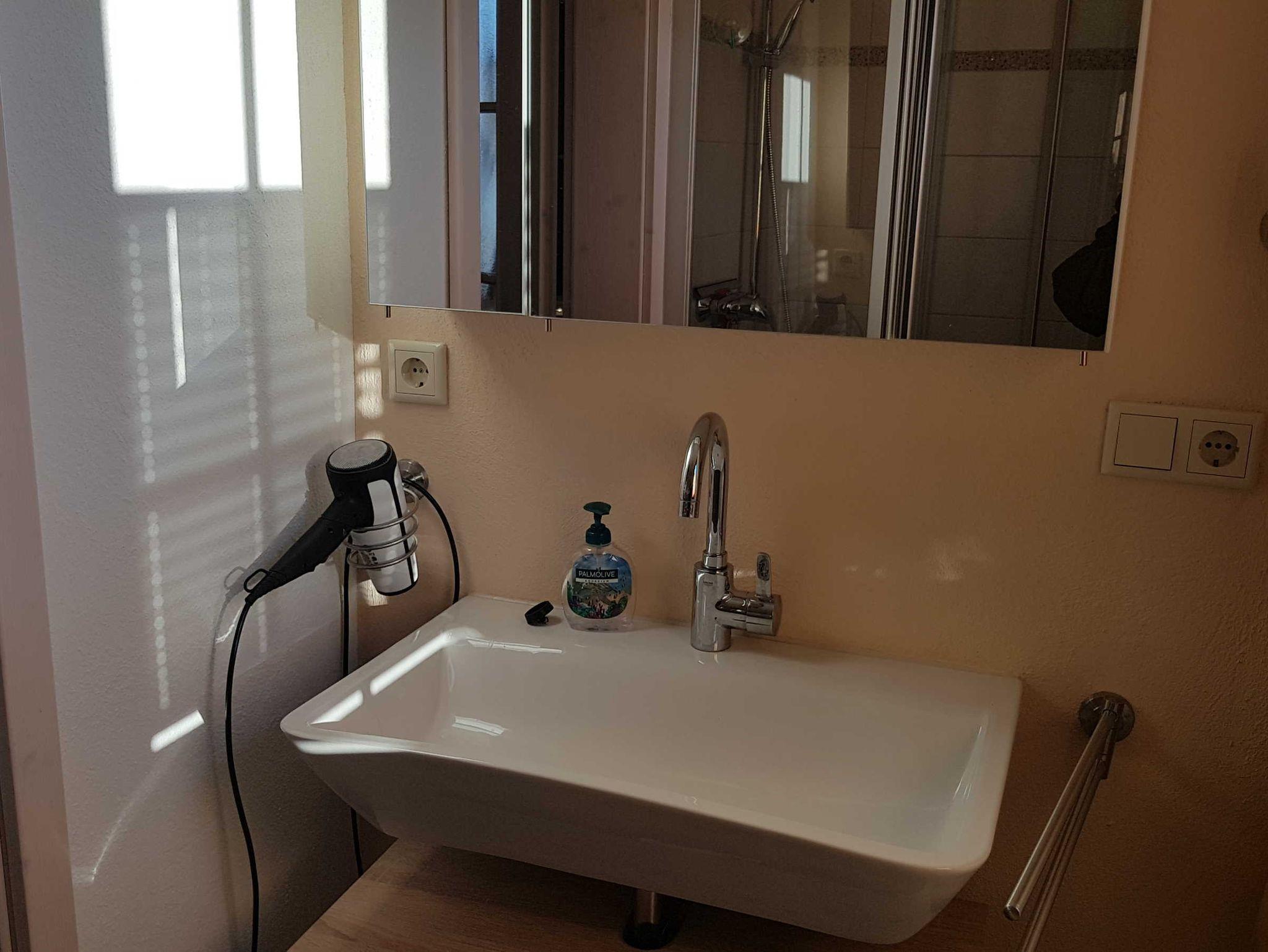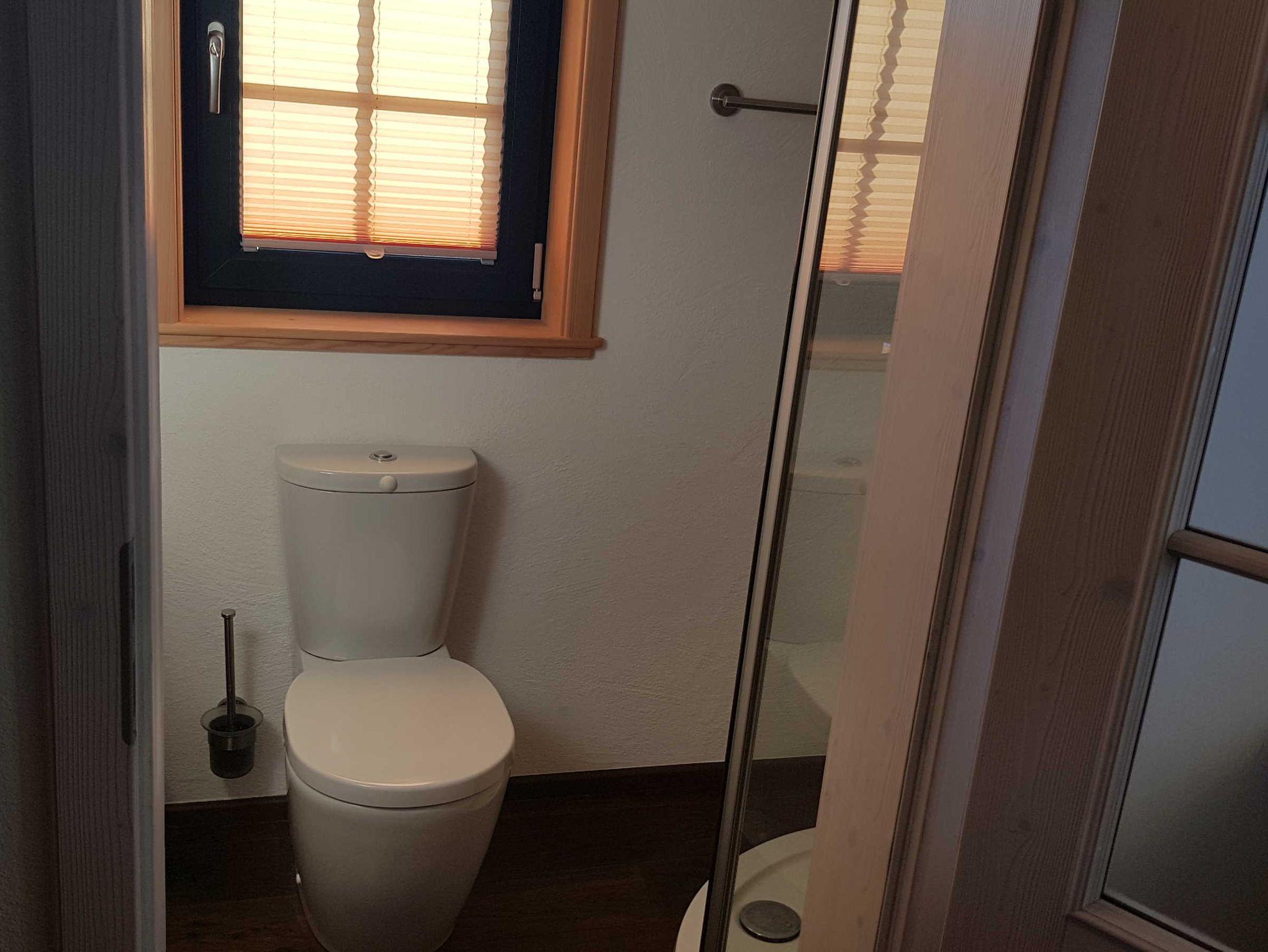 Das Bad verfügt über Dusche und WC.