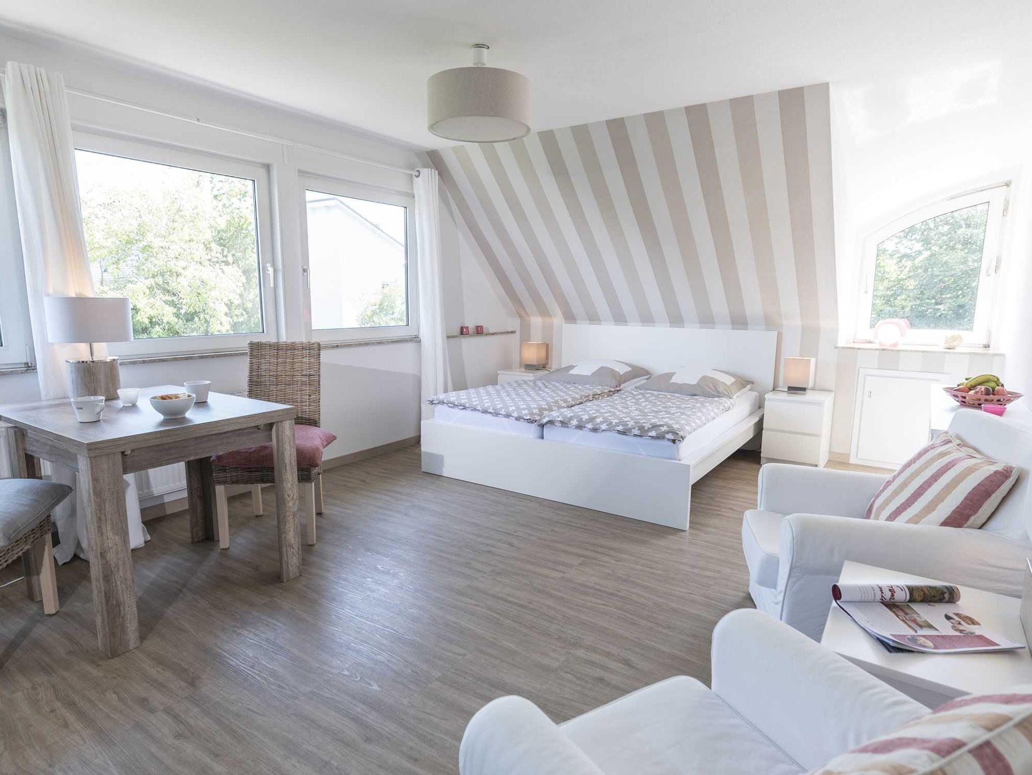 Die Ferienwohnung Diekkron auf einen Blick: Betten: 2, Größe: 35 qm, Wohn-/Schlafzimmer: 1, Küche separat, Du/WC, 1. OG, mit TV, Nichtraucher, Waschmaschine (im Keller), ruhige Lage, Terrasse, Garten, Stellplatz, Fahrradunterstand, kostenloses Wlan. Keine Tiere.