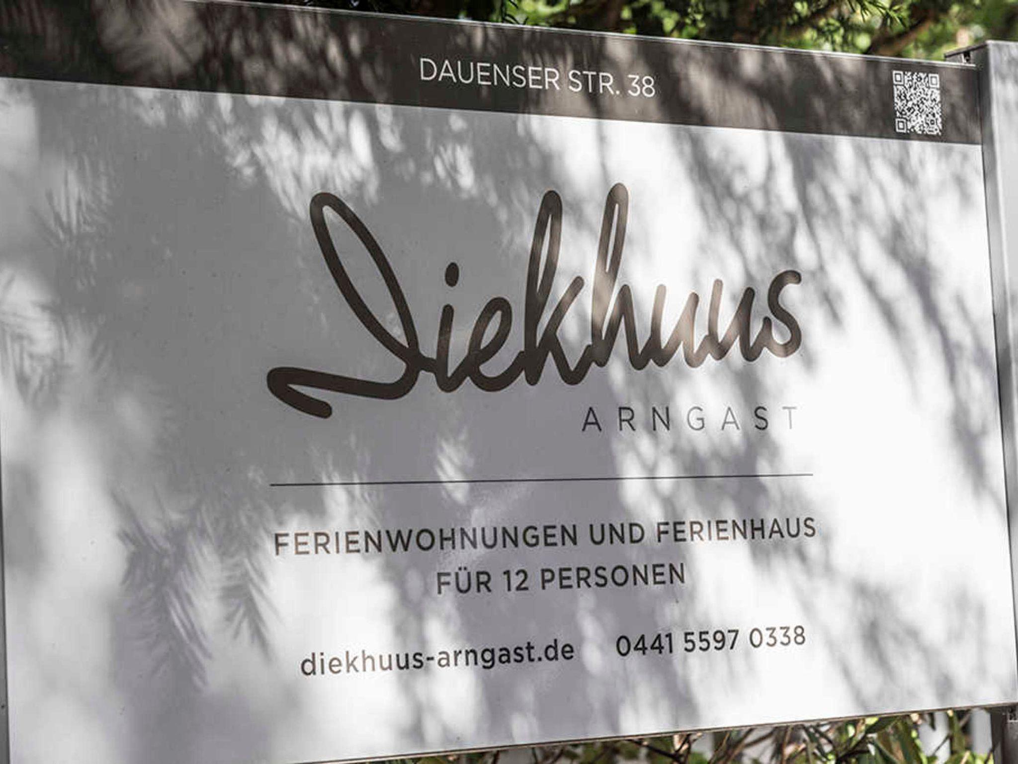 Diekhuus Arngast, das Ferienhaus für 12 Personen in Dangast auf einen Blick: Betten: 12, Größe: 245 qm, Schlafzimmer: 2, Wohn-/Schlafzimmer: 4, Küchen: 2, Küchenzeilen: 2, Bad/Du/WC: 1, Du/WC: 3, behindertenfreundlich, mit TV, Nichtraucher, Waschmaschine, Microwelle, ruhige Lage, Balkon, Terrasse, Garten, Stellplatz, Fahrradunterstand, kostenloses Wlan. Keine Tiere.