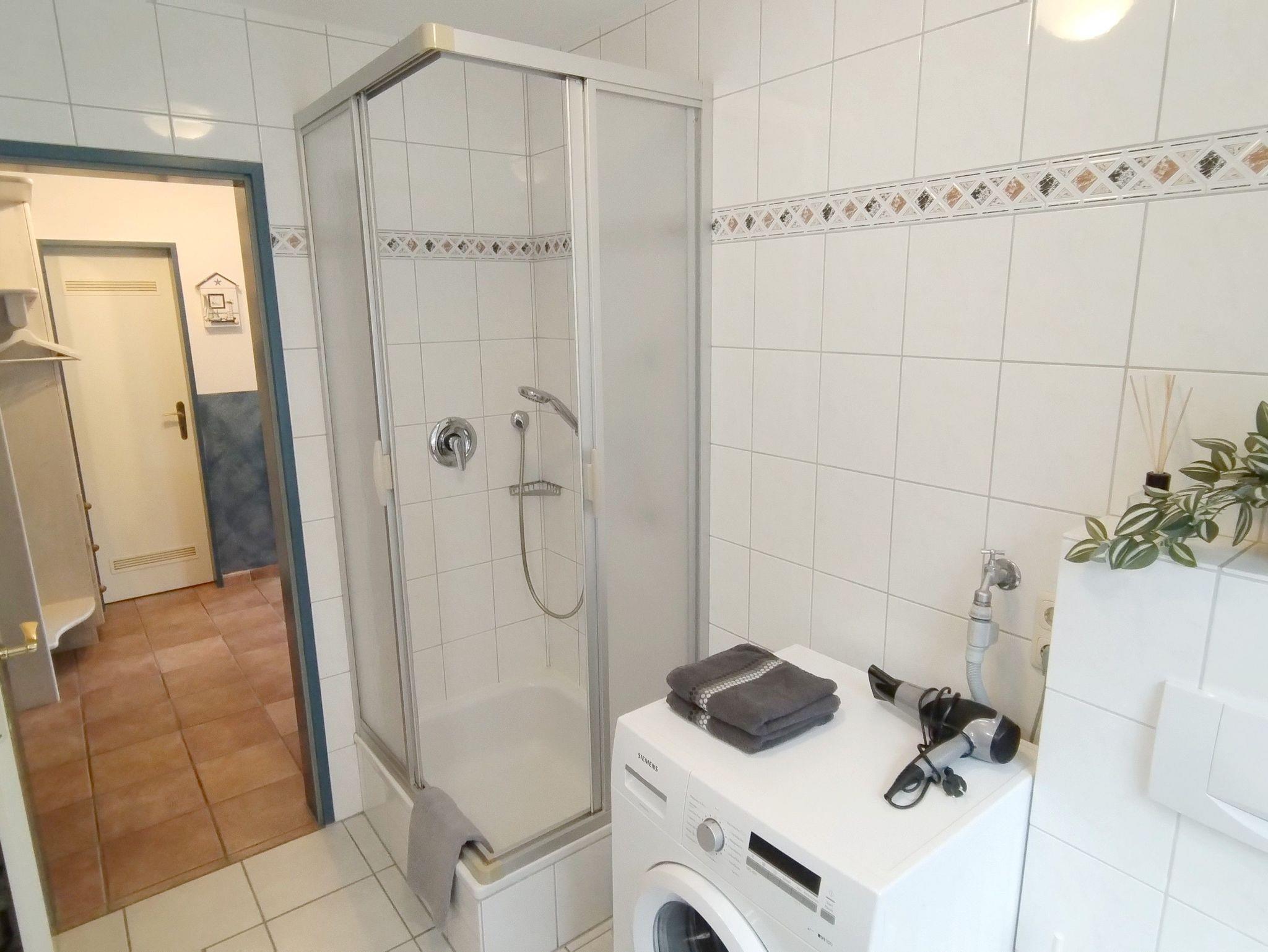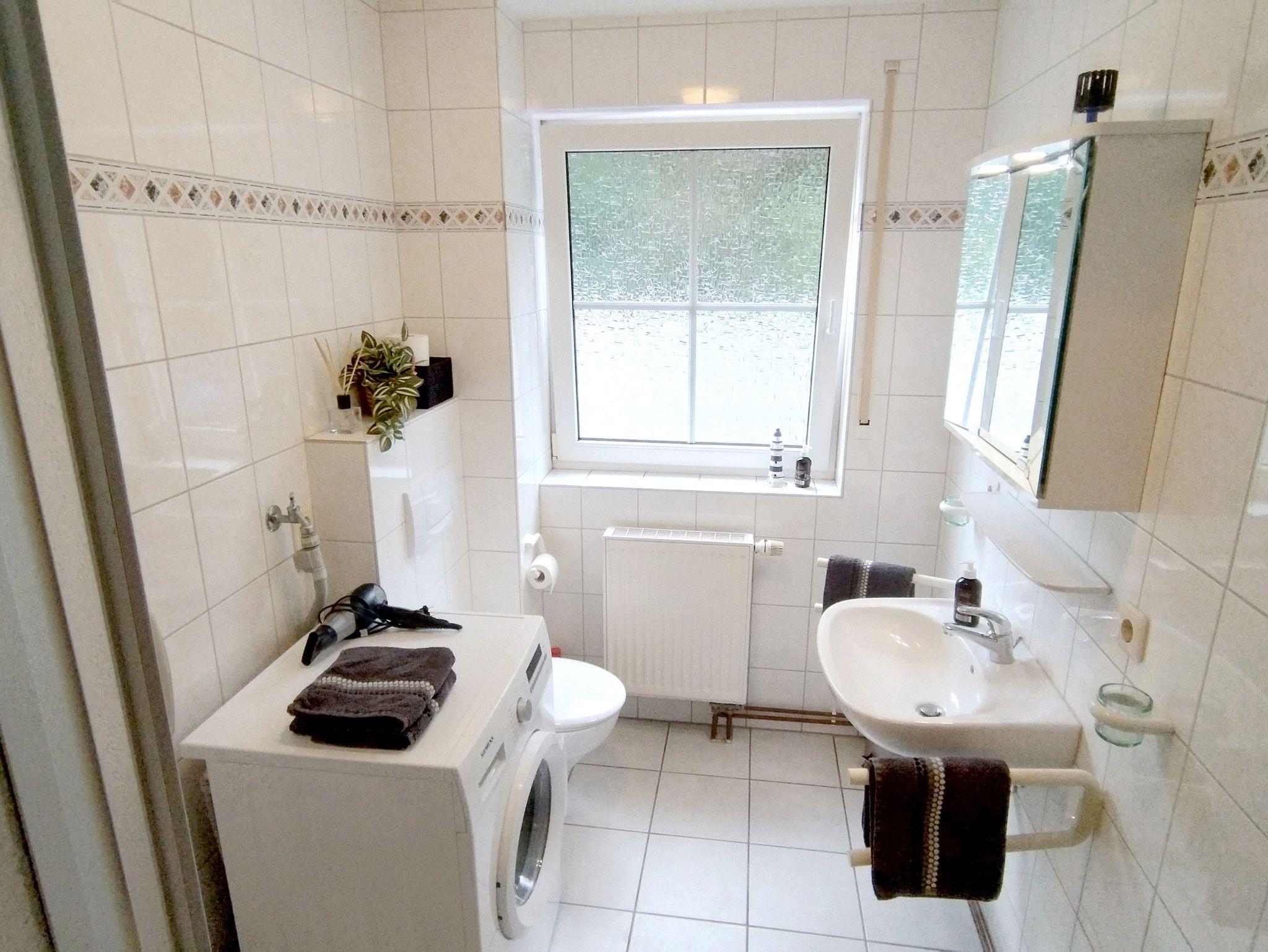 helles Bad mit Dusche (Föhn vorhanden) mit Fenster