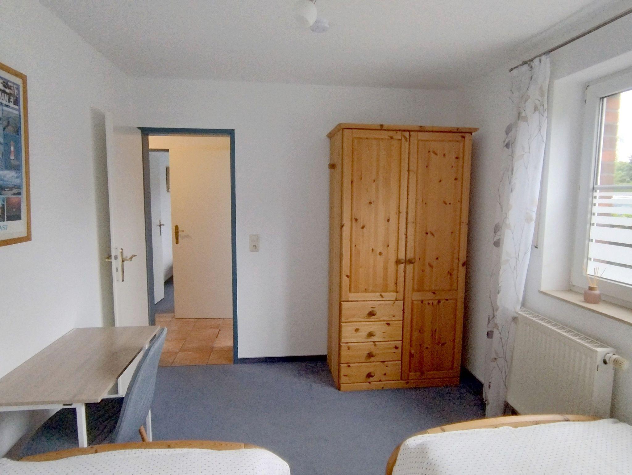zwei Schlafzimmer (1 x Doppelbett, 2 x Enzelbett, kleiner Schreibtisch)