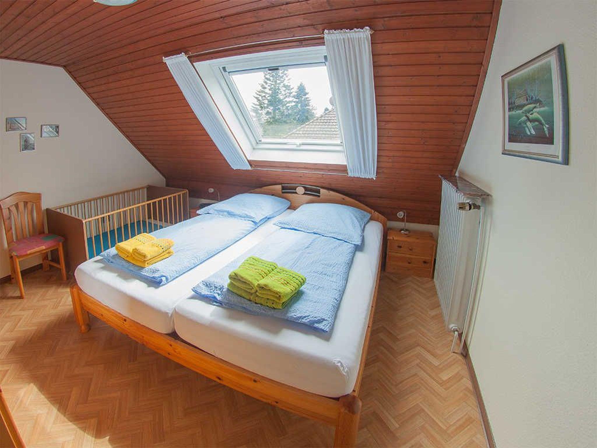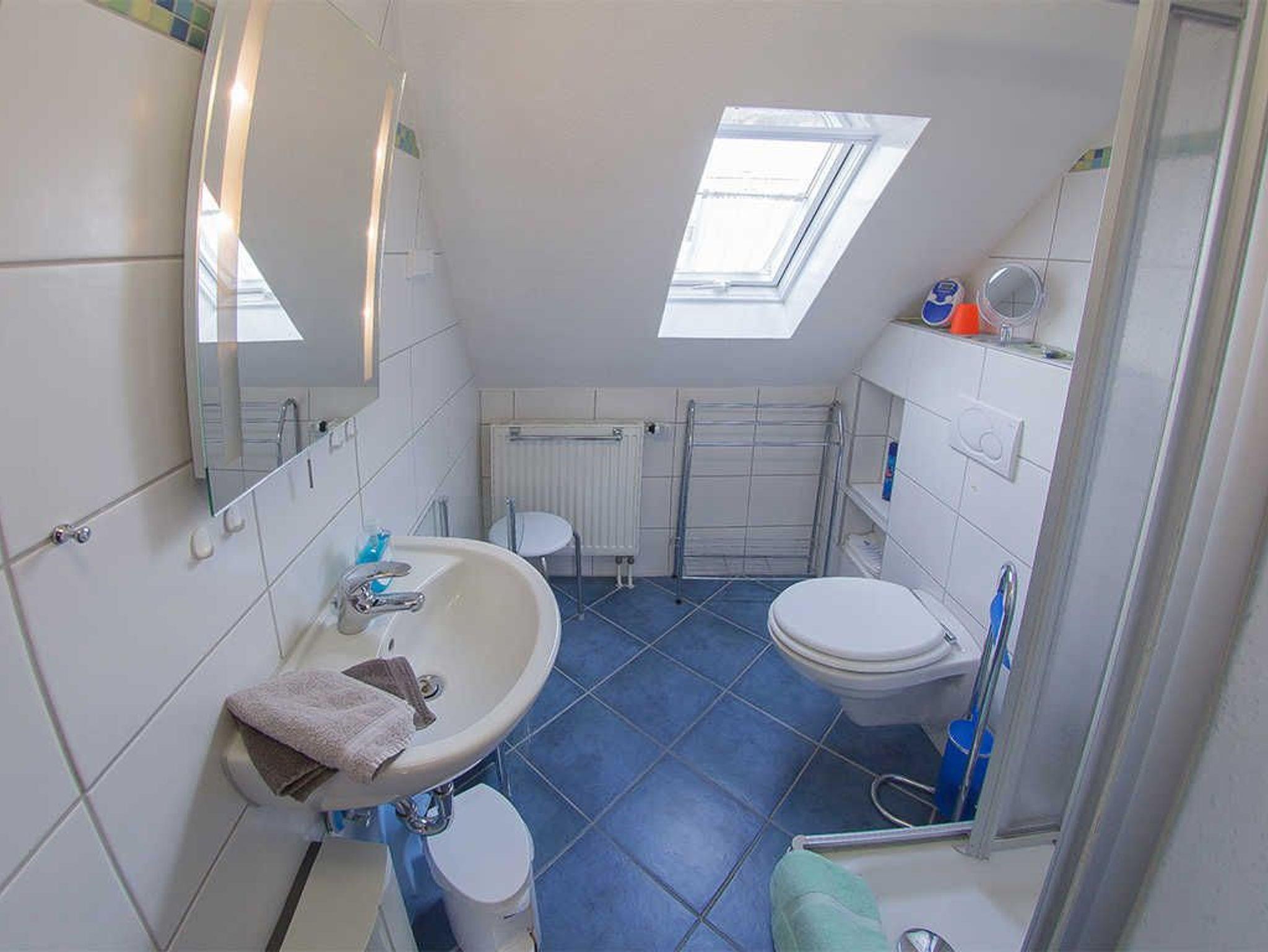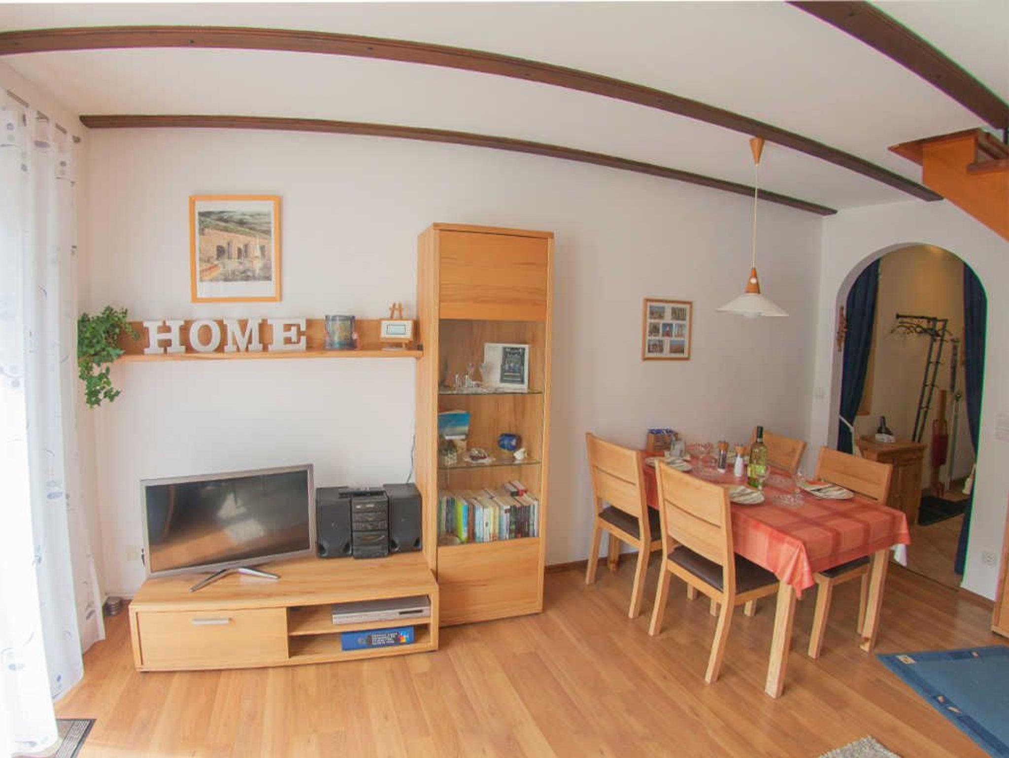 Dieses gemütliche Reihen-Ferienhaus liegt ca. 350 m vom Strand entfernt in ruhiger Sackgassenlage. Ab Stellplatz führt eine Zuwegung zum Ferienhaus. Vom Flur mit Garderobe geht es links in die separate, helle Küche. Diese ist komplett ausgestattet und lädt zum entspannten Kochen ein. Im geräumigen Hauswirtschaftsraum gibt es eine Waschmaschine. Der helle freundliche Wohnbereich hat einen Essplatz, TV, DVD-Player und eine Spielesammlung. Im ersten Obergeschoss befinden sich die beiden Schlafzimmer, eines mit einem Doppelbett plus Kindergitterbett und eines mit zwei Einzelbetten. Ein Tageslicht-Duschbad komplettiert das freundliche Ferienhaus. Auf der geschützten Terrasse genießen Sie das milde Reizklima.
