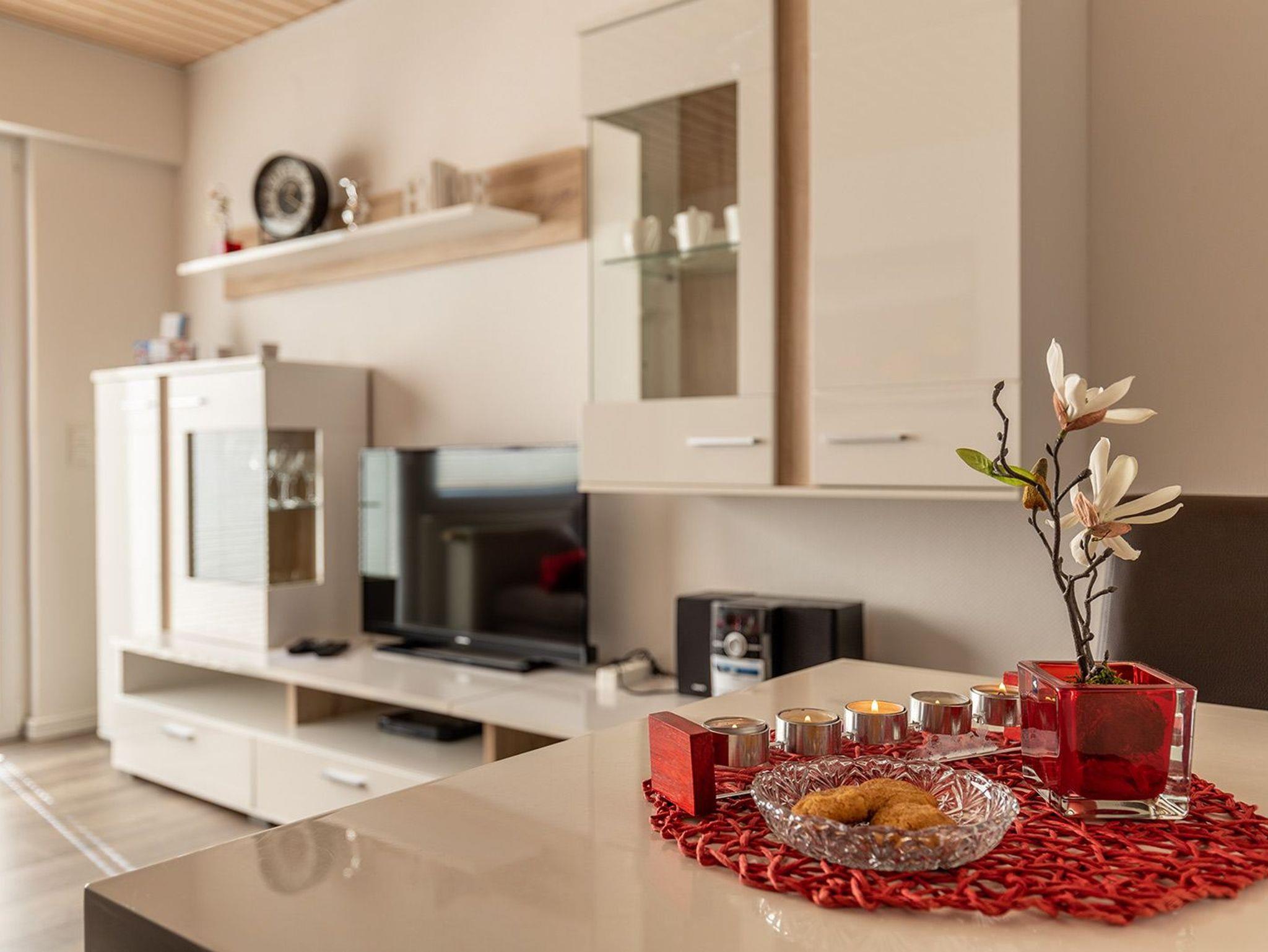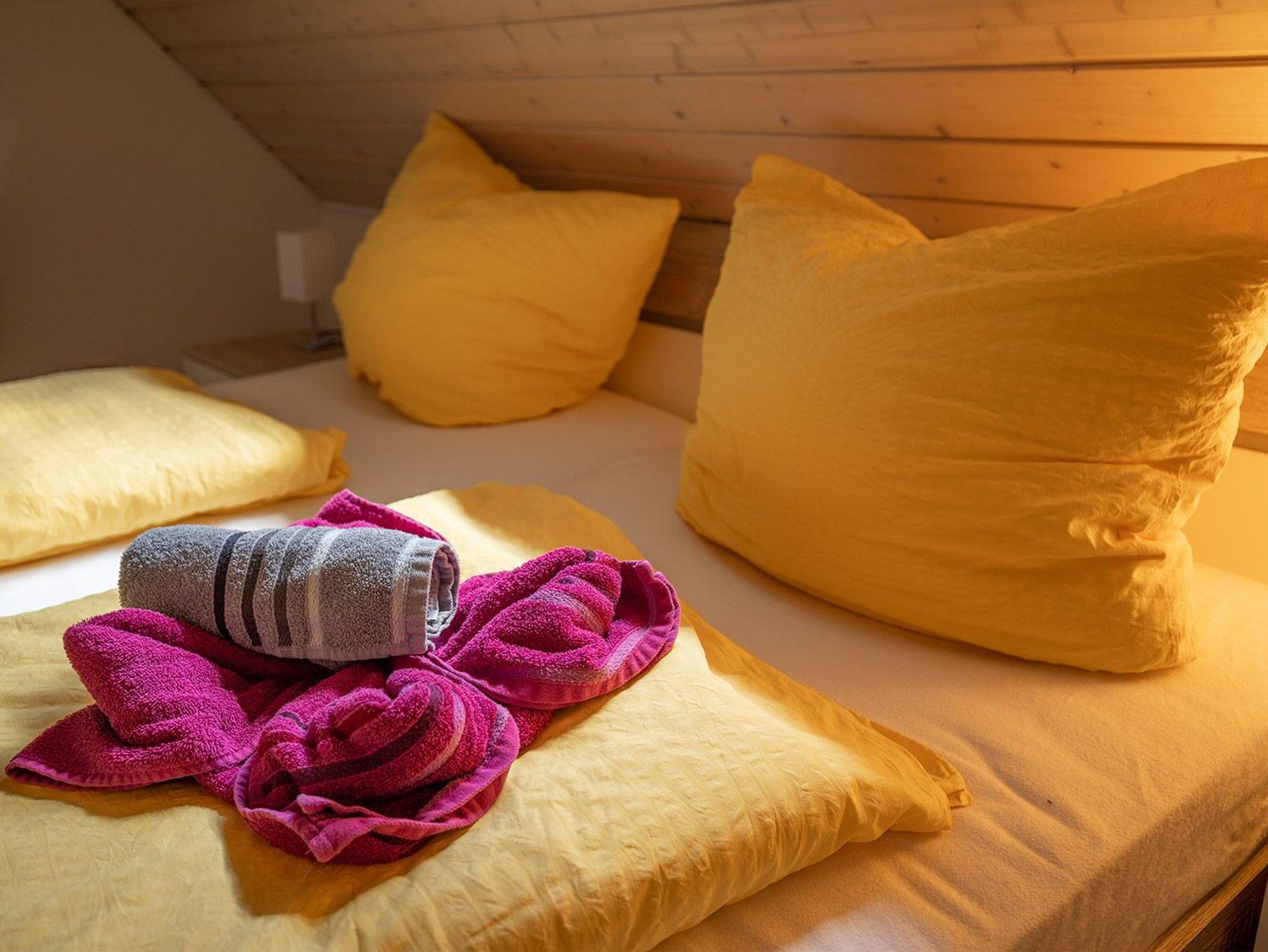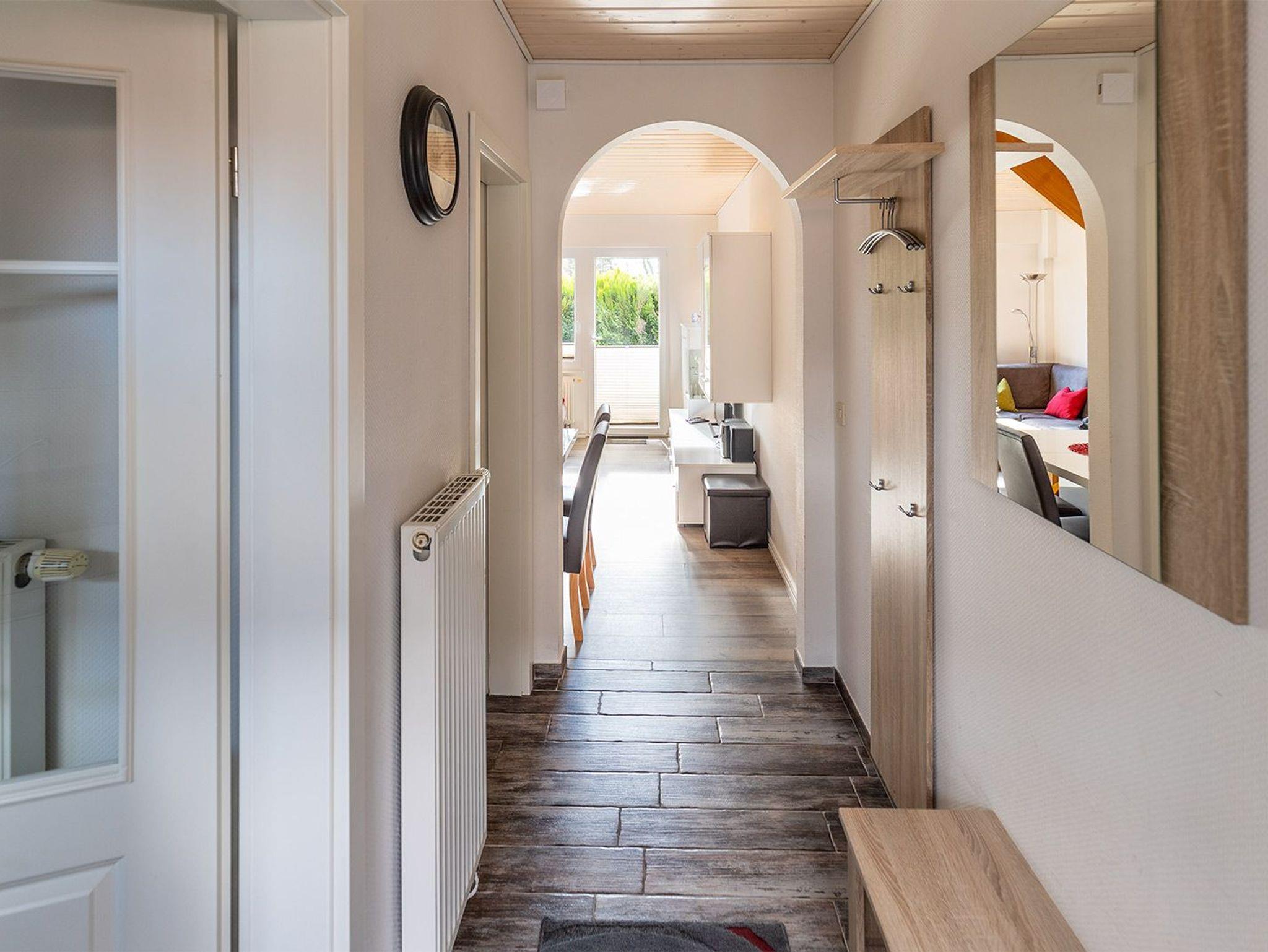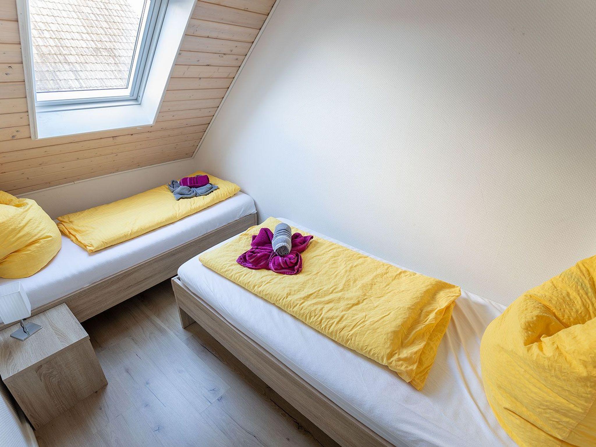 Im freundlichen Flurbereich befindet sich der Eingang zur separaten Küche mit kompletter Ausstattung für ein entspanntes Kochen. Nebenan der Hauswirtschaftsraum mit Trockner und Waschmaschine. Weiter geht es zum hellen Wohn-/Essbereich mit Ausgang zur begrünten Terrasse mit Mobiliar und Sonnenschirm. Im Wohnbereich mit Flachbild-SAT-TV können Sie auf der bequemen Ledereckcouch herrlich entspannen. Im ersten OG befinden sich die beiden Schlafräume mit einem Doppelbett und zwei Einzelbetten sowie das moderne Duschbad. Im Doppelschlafraum bieten wir einen weiteren Fernseher.