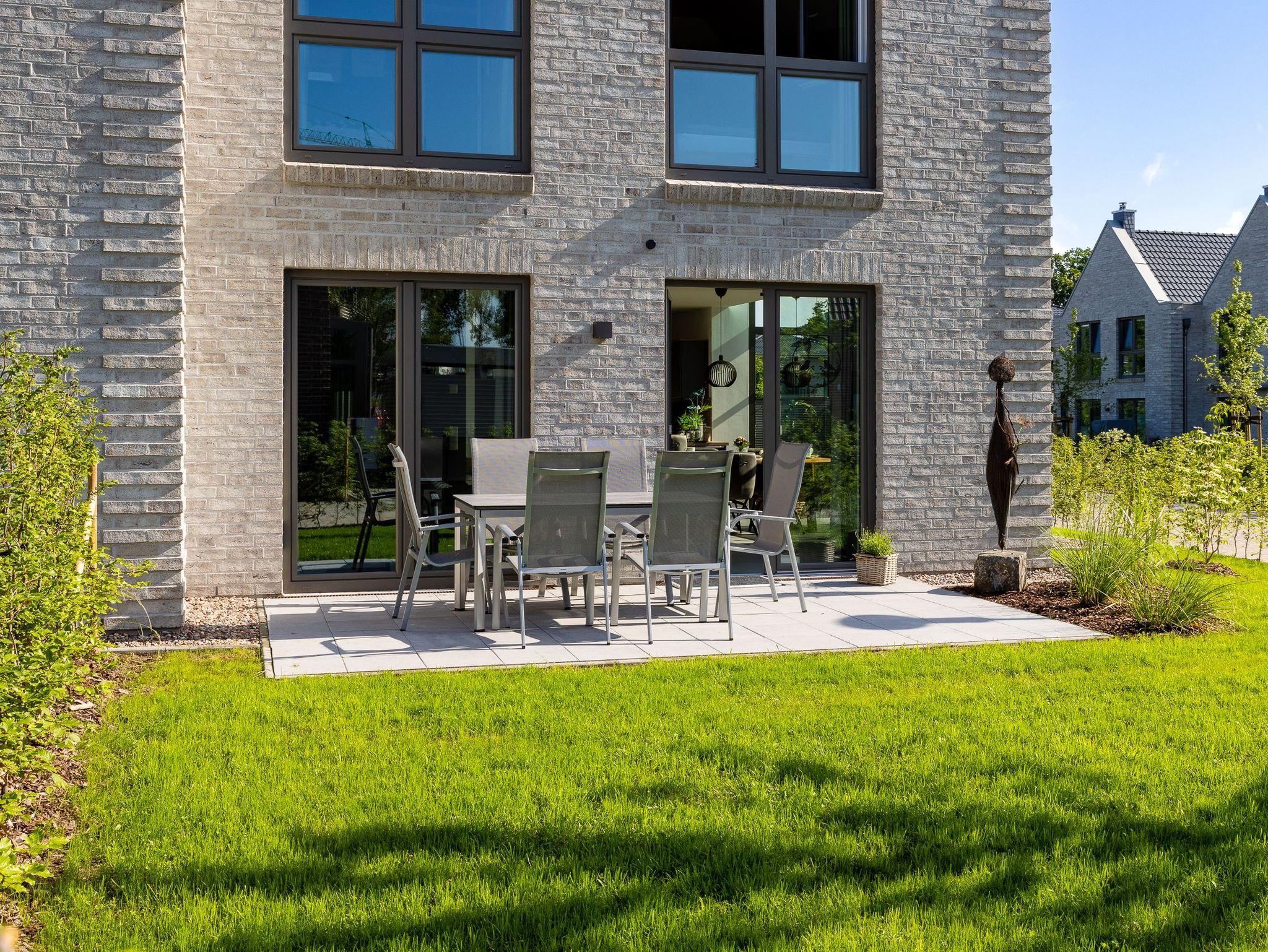 (Süd) Terrasse mit Tisch und Stühlen für 6 Personen, 2 Relaxsessel, Gartenbank, Holzkohlegrill, Fahrradabstellraum mit Elektroanschluss (Lademöglichkeit E-Bike), Tischtennisplatte, Fahrrad