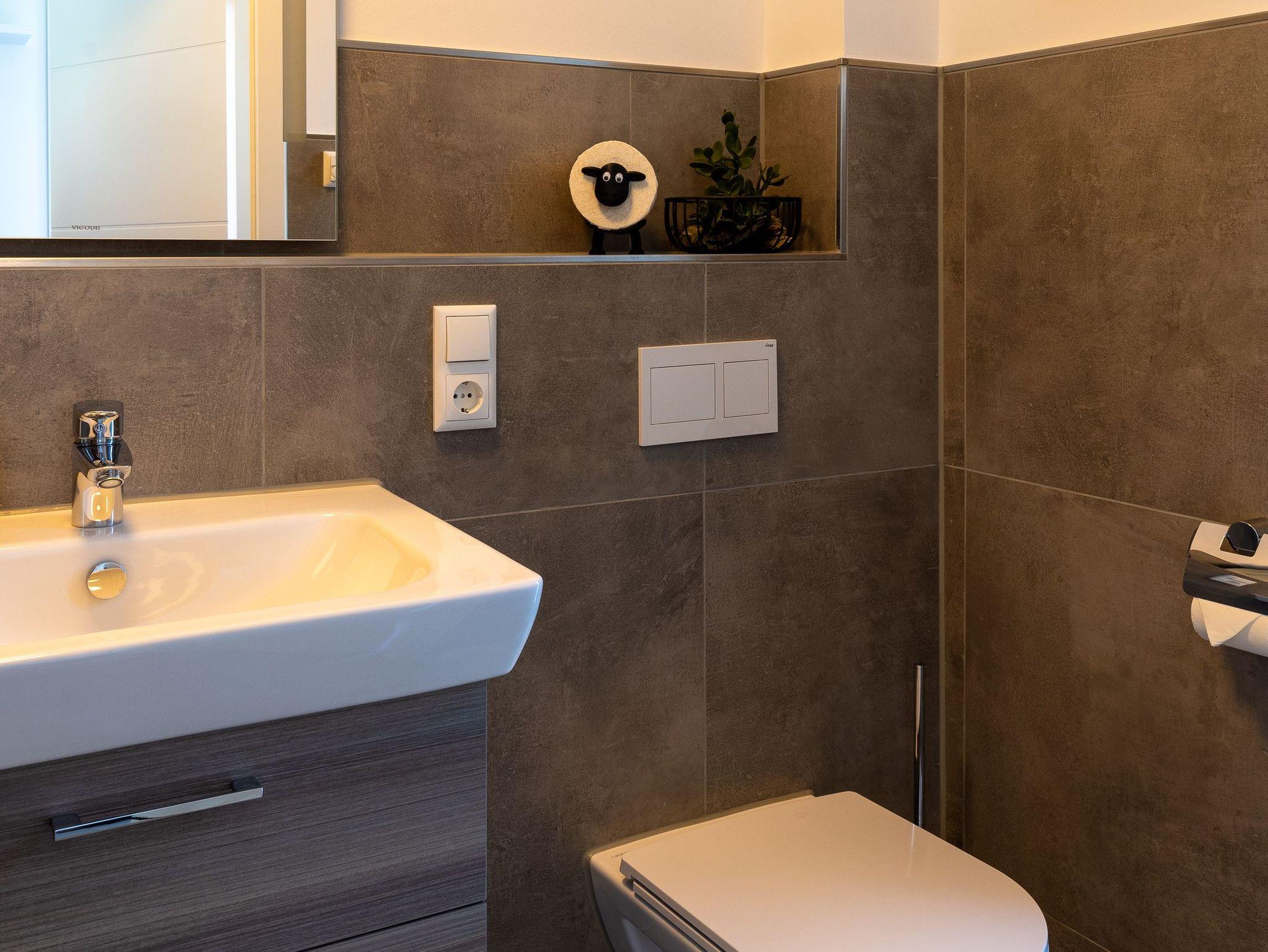 Im Ferienhaus stehen Ihnen zwei großzügig gestaltete Badezimmer zur Verfügung, die mit jeweils einer barrierefreien Dusche ausgestattet sind. Weiterhin verfügt die Wohnung über eine Waschmaschine und einen Trockner.