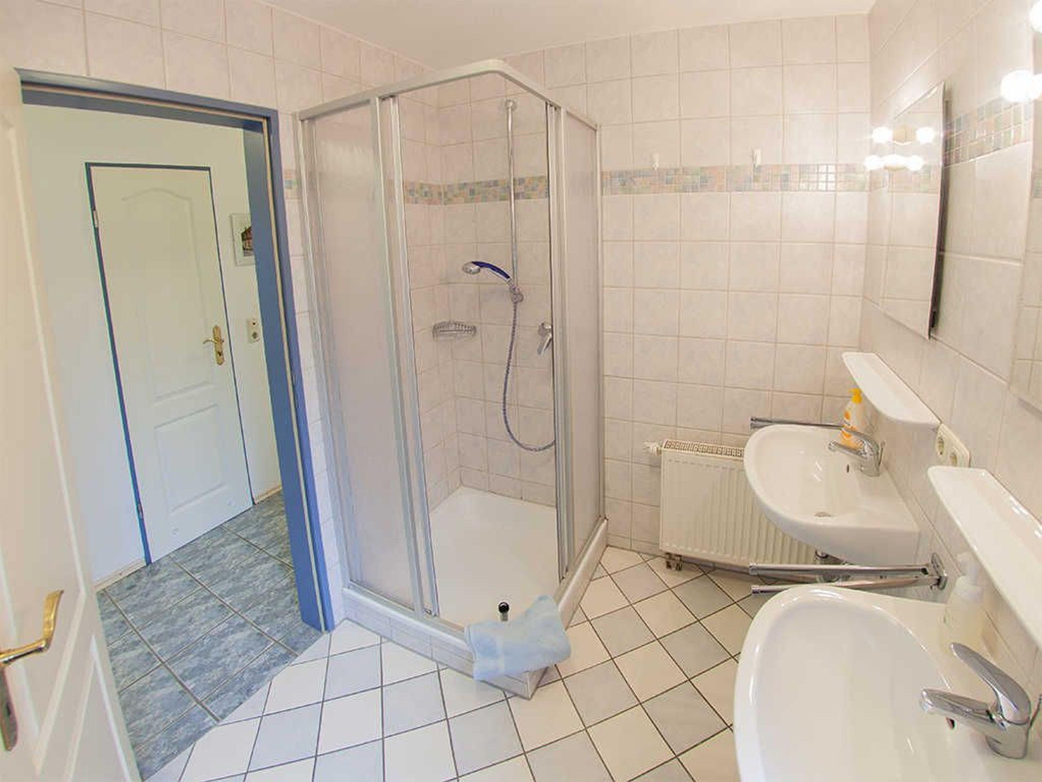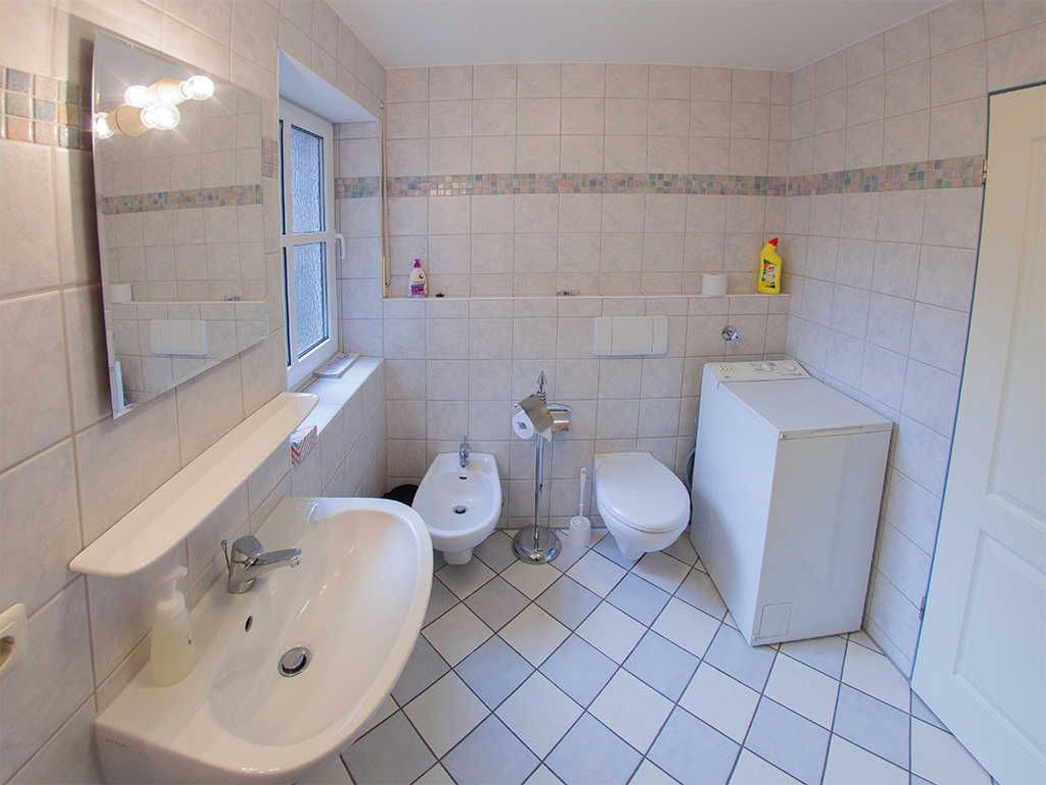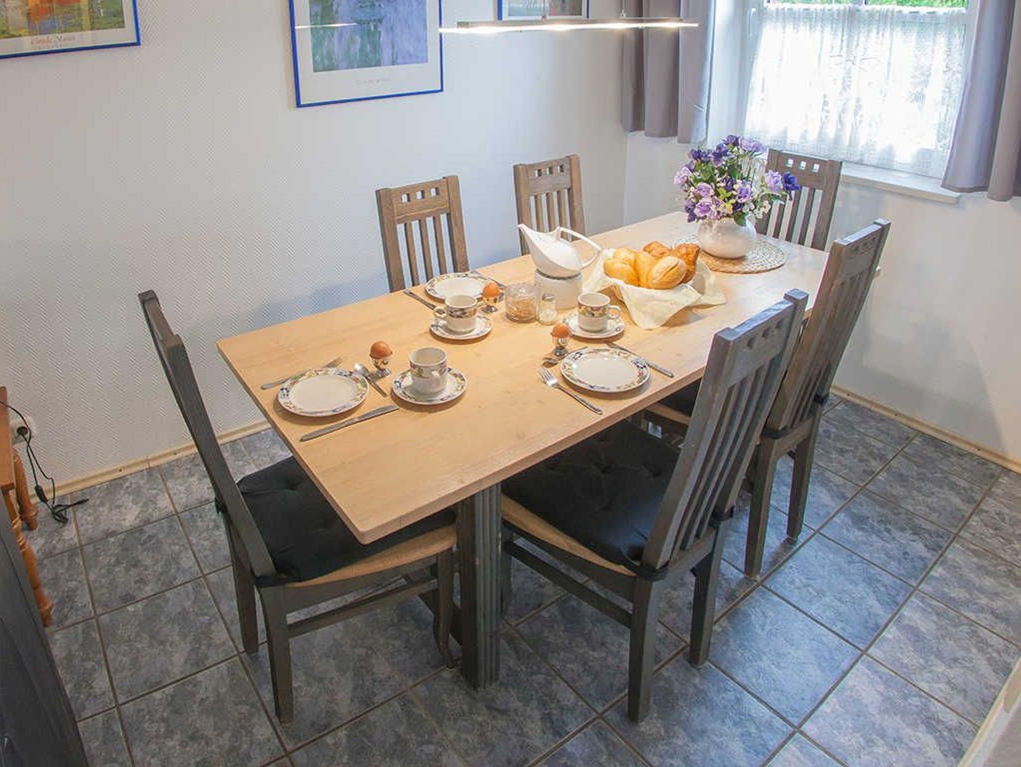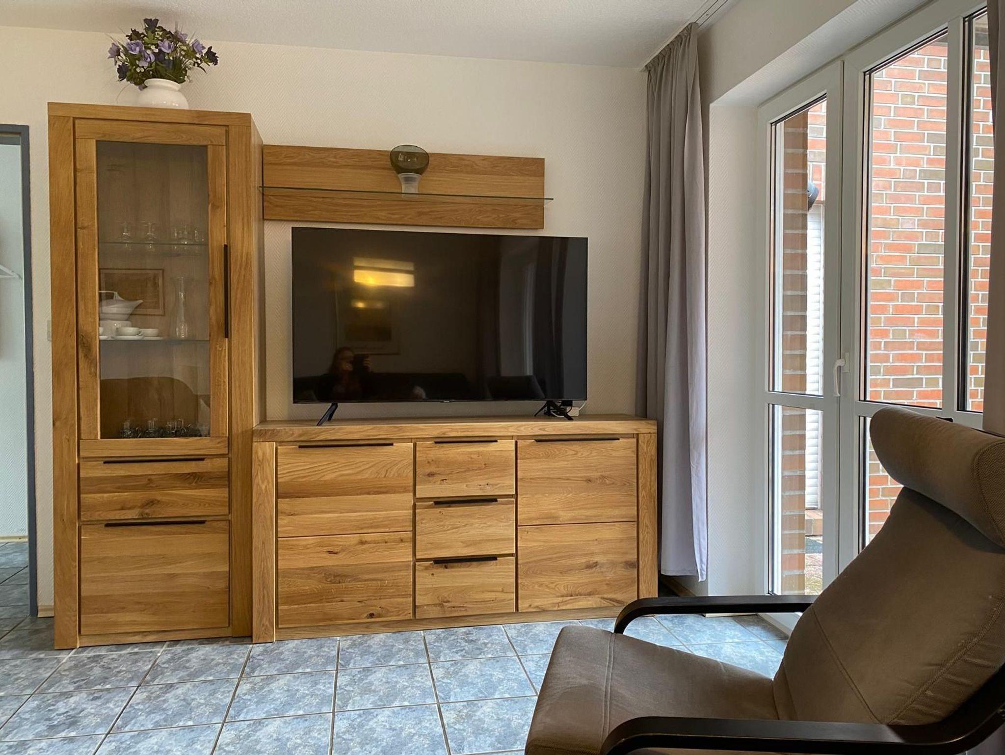 Herzstück der Wohnung ist der geräumige Wohn-/Essbereich mit Zugang zur separaten Küche und Terrassenausgang. Der Essplatz bietet eine Durchreiche zur Küche. Insgesamt stehen drei Schlafzimmer zur Verfügung; eines mit Doppelbett, das weitere mit einem Etagenbett und noch eines mit einem französischen Bett in der Größe 140x200. Das geräumige Fenster-Duschbad bietet Bidet, zwei Waschbecken, eine große Dusche sowie eine Top-Lader-Waschmaschine. Auf der großen Terrasse genießen Sie die frische friesische Luft.