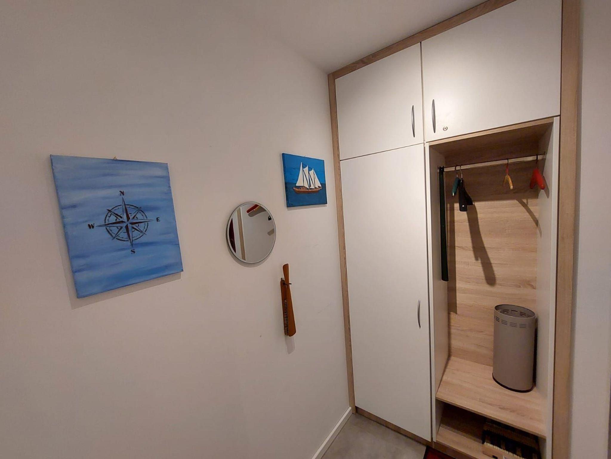 Der Einbauschrank sowie die großen Nachtschränke bieten reichlich Platz zur Unterbringung der mitgebrachten Kleidung.