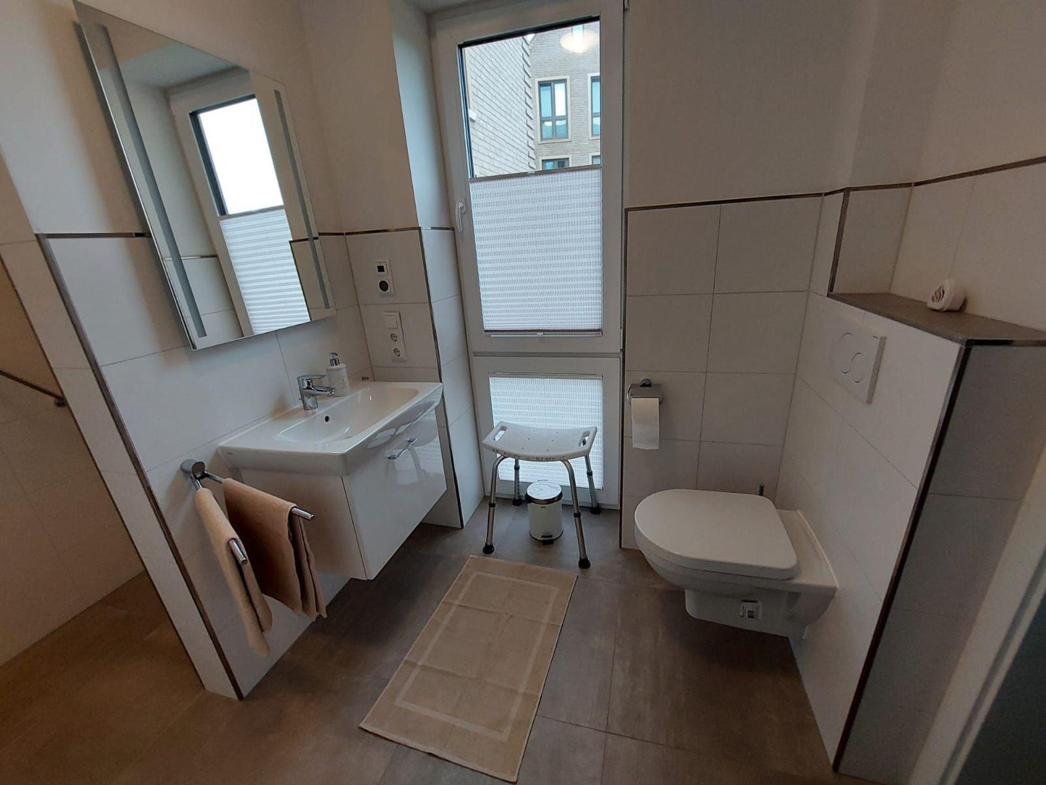 Mit der vorhandenen Handtuchheizung können jederzeit Hand-/Duschtücher oder auch Kleidung getrocknet werden.