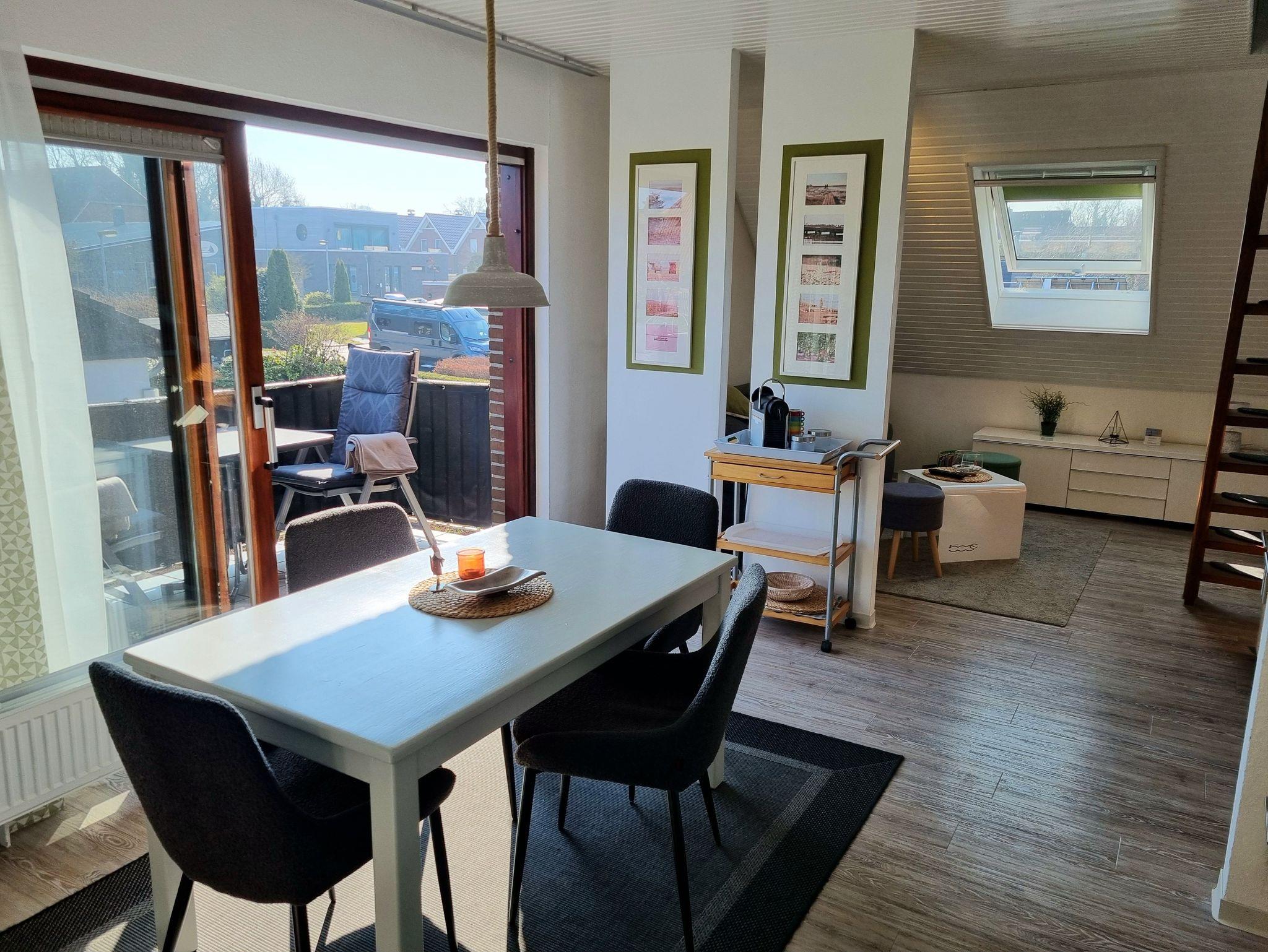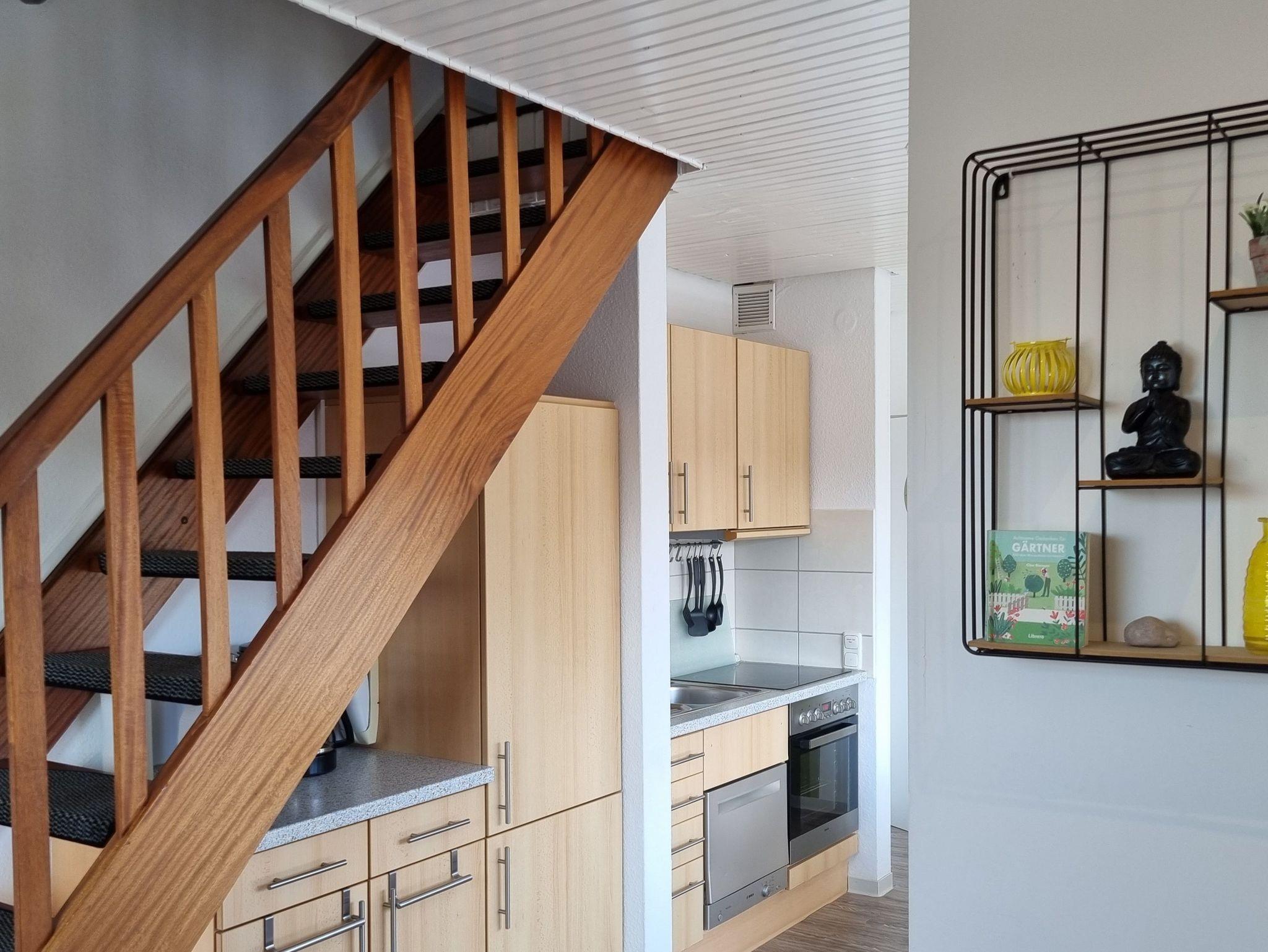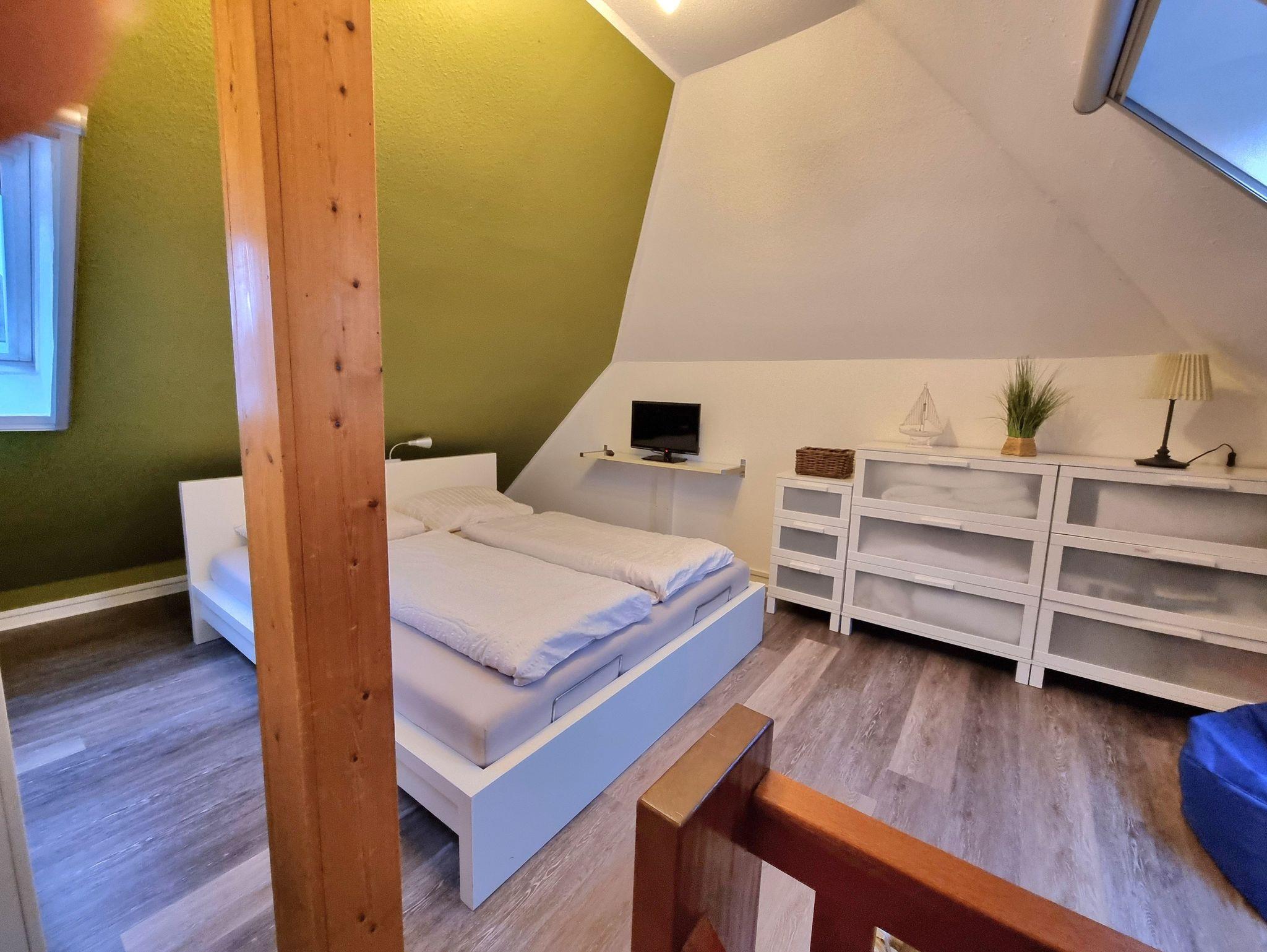 Im Haus Sonnengruß erwartet Sie Licht, Sonne, sehr ansprechende Räume - also eine Ferienwohnung zum Verlieben. Sie verfügen über ein separates Schlafzimmer im Dachstudio und LCD-Fernseher, einen kombinierten Wohn-Essraum mit moderner Küchenzeile. Das neue, kuschelige Sofa( Auch als Longchair ausziehbar) lädt ein zum Lesen, Fernsehen ... Vom Südbalkon schauen Sie in's Grüne und können die Seele baumeln lassen.