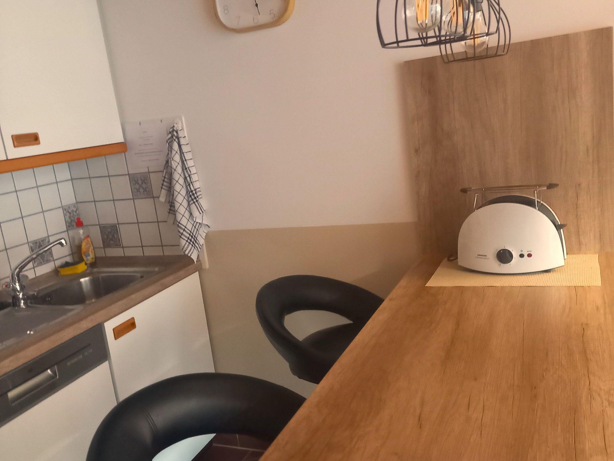 Sie verfügt über ein separates Schlafzimmer mit einem Doppelbett und einem Babybett, eine große Schlafcouch im Wohn- Essbereich, eine Küche mit allem, was man für einen Urlaub braucht und ein geräumiges Badezimmer mit Badewanne.